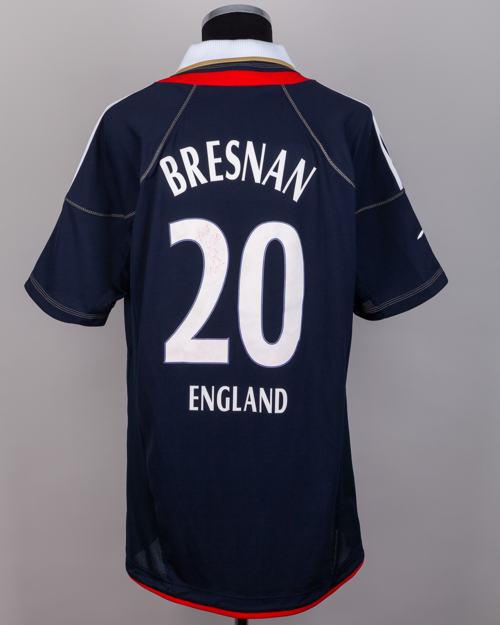 Tim Bresnan blue No.20 England ODI autographed short-sleeved cricket shirt, 2010