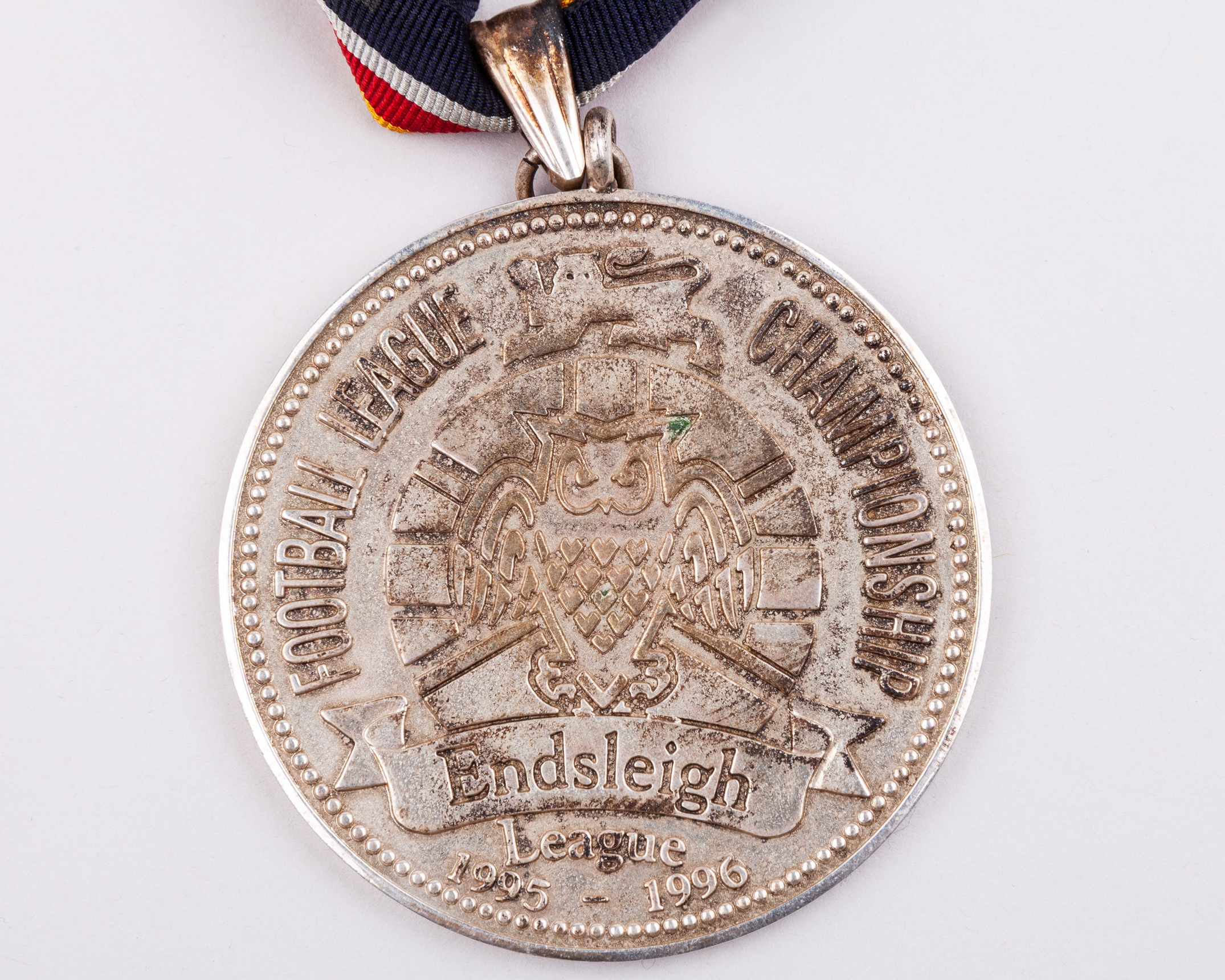 A white-metal Endsleigh Division Two runners-up medal, 1995-96, the obverse inscribed Endsleigh League Championship, Division two Runners up, the reverse inscribed FOOTBALL LEAGUE CHAMPIONSHIP, Endsleigh League 1995-96, with original ribbon