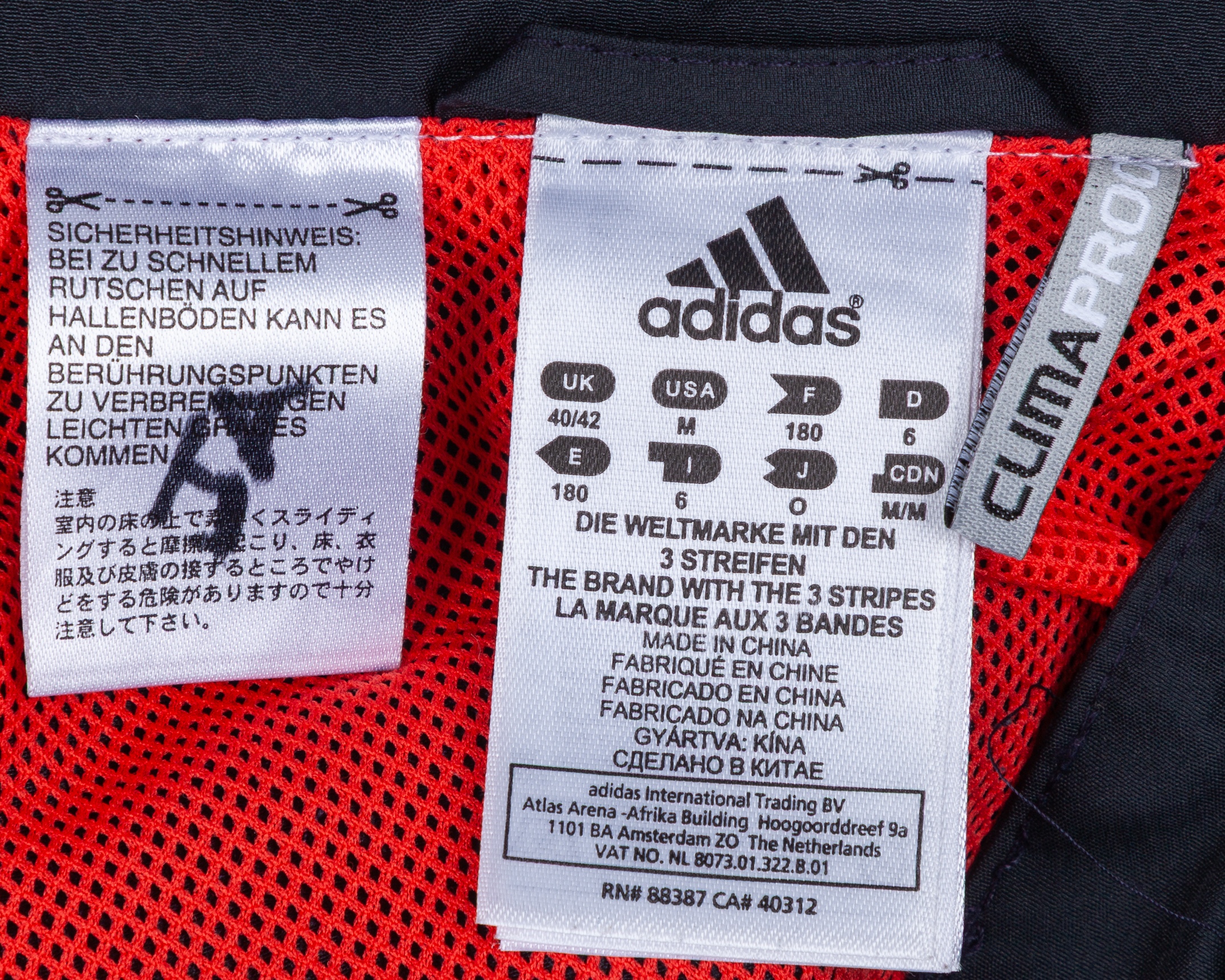 James Anderson blue and red England cricket tracksuit jacket, Adidas, 40/42, with zip-up front and printed badge, with JA written in black marker on the label