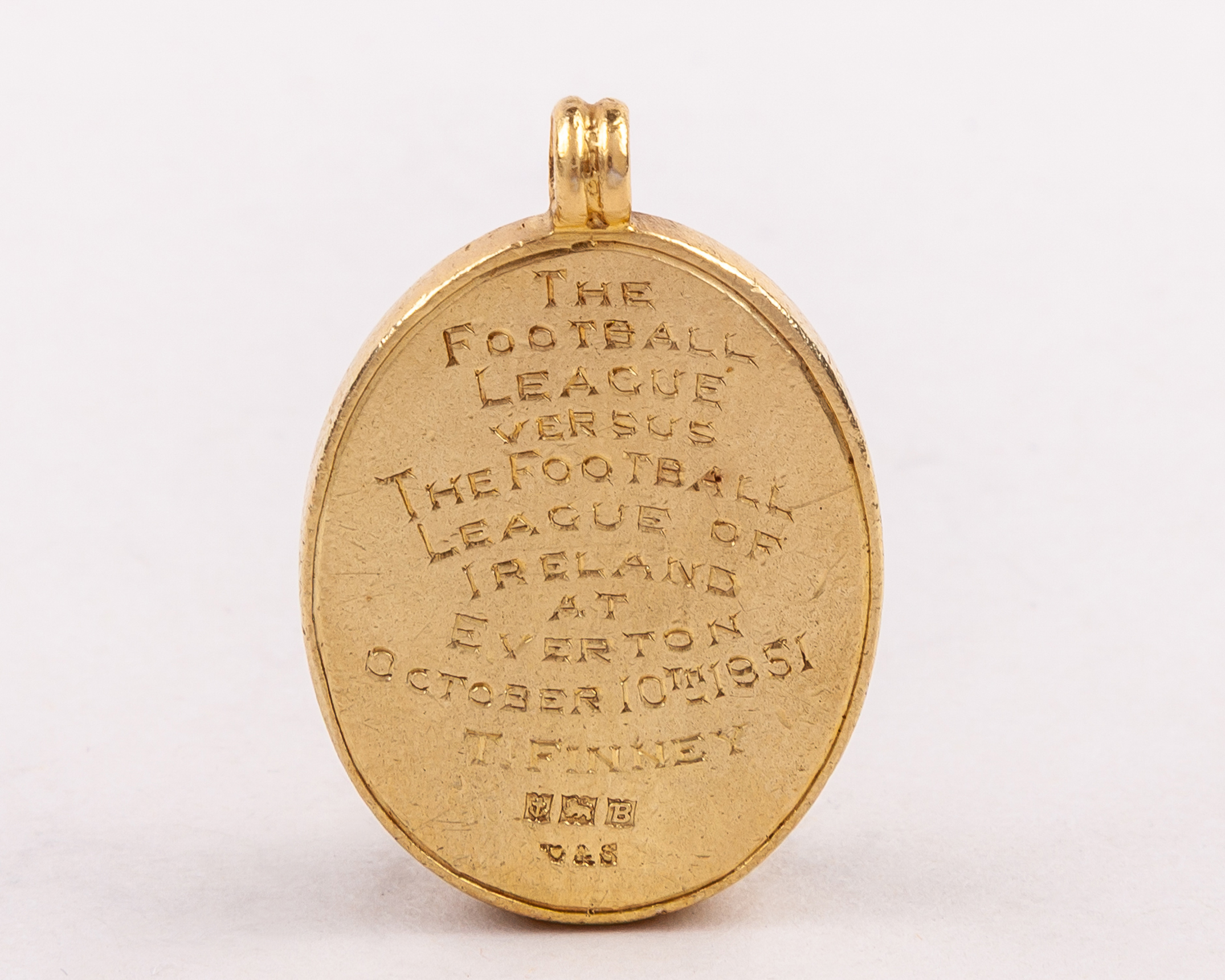 Tom Finney a silver-gilt Football Inter League medal, 1951, the obverse inscribed THE FOOTBALL LEAGUE REPRESENTATIVE MATCH, the reverse inscribed The Football League Versus The Football League of Ireland at Everton October 10th 1951 T. FINNEY