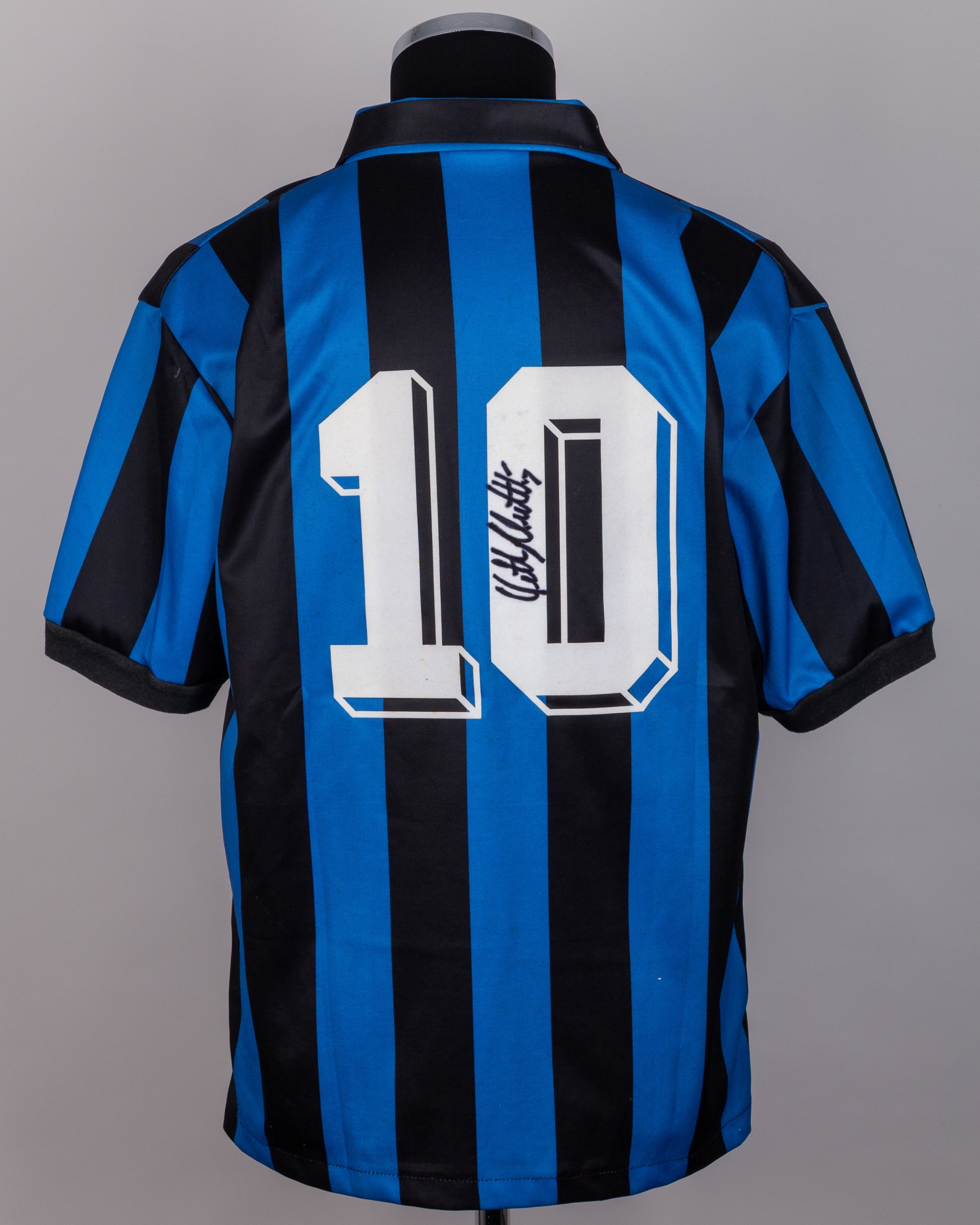 Lothar Matthaus autographed blue and black No.10 Inter Milan short-sleeved shirt, 1990-91
