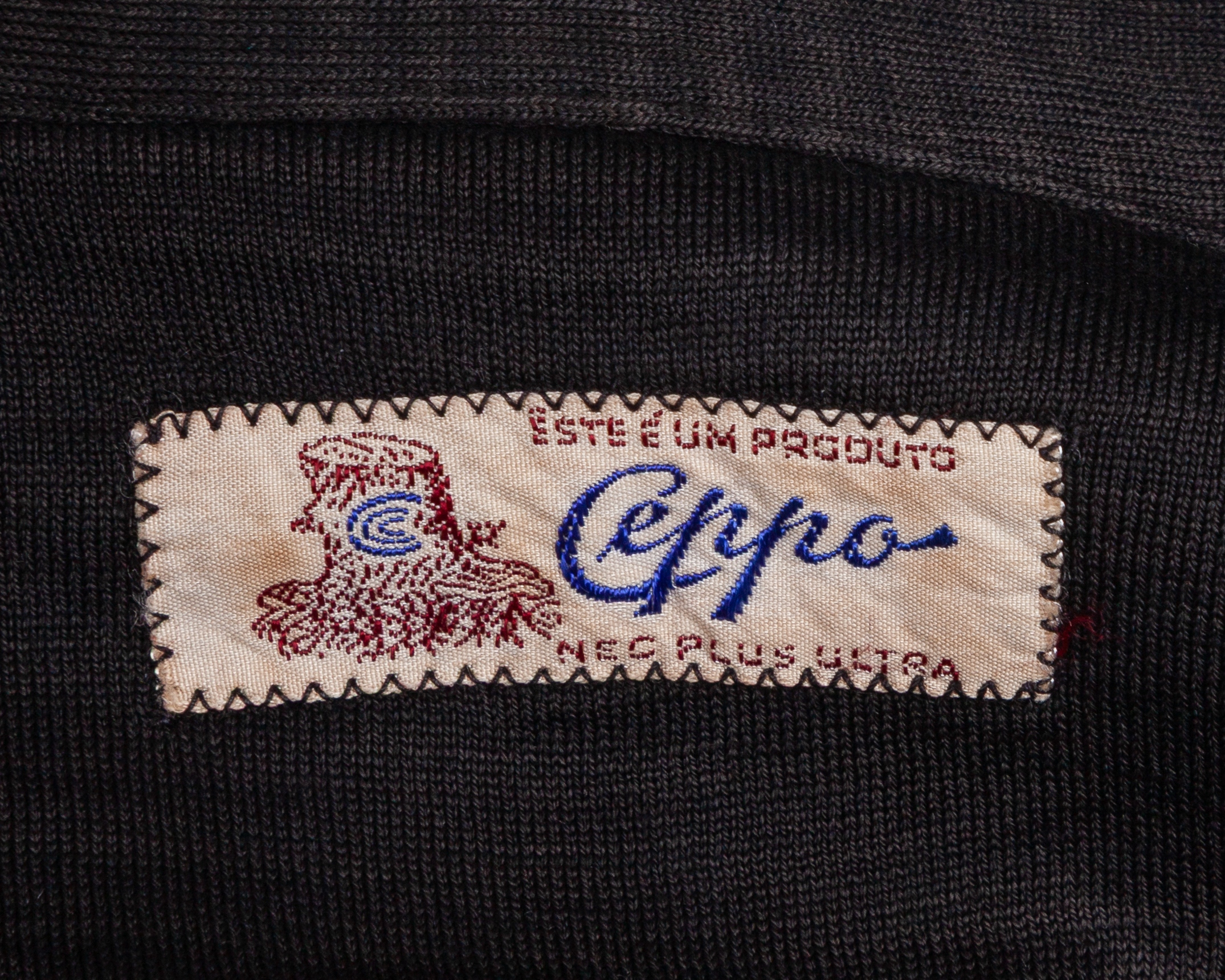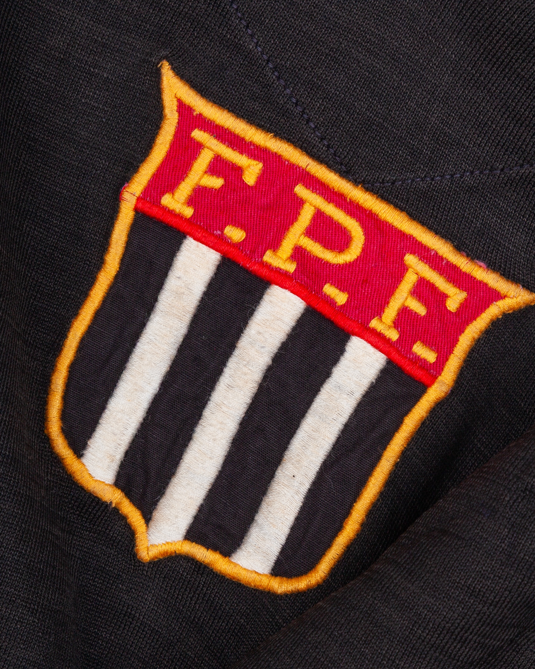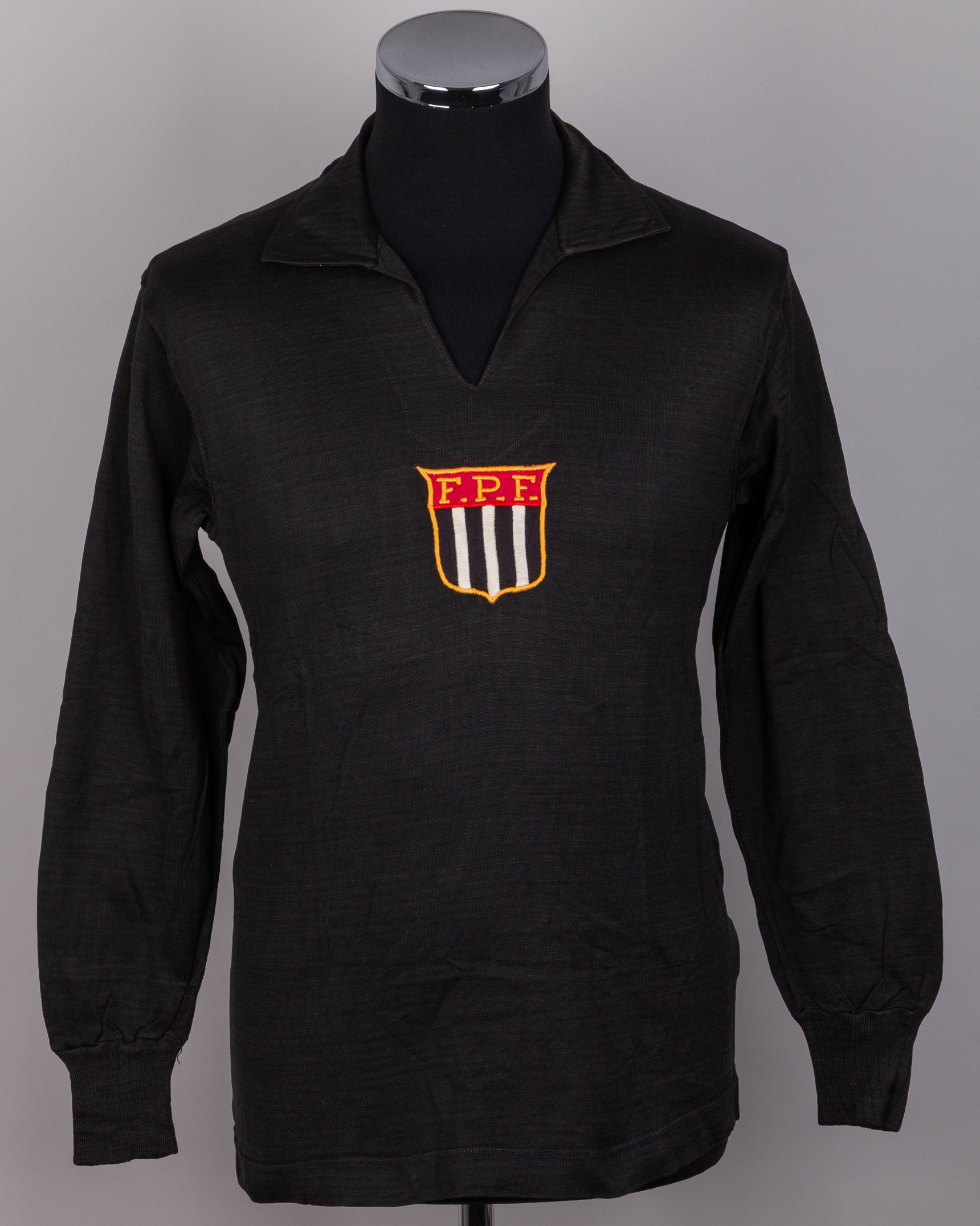 Black No.1 Sao Paulo Select State Team goalkeeper shirt, c.1950, Ceppo, with v-neck collar and embroidered badge inscribed F. P. F., with some discolouration