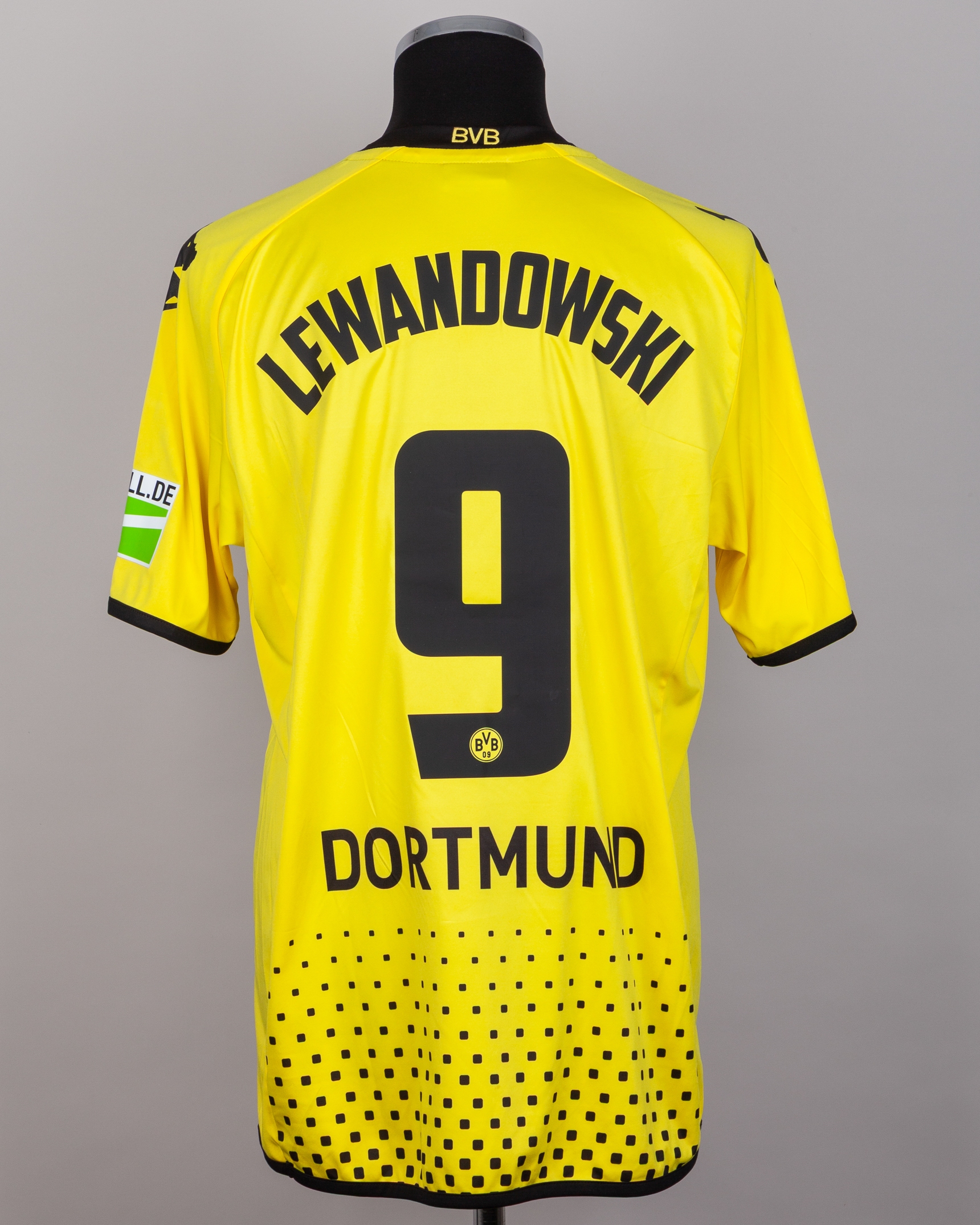 Robert Lewandowski yellow and black No.9 Borussia Dortmund match issued shirt, 2011-12