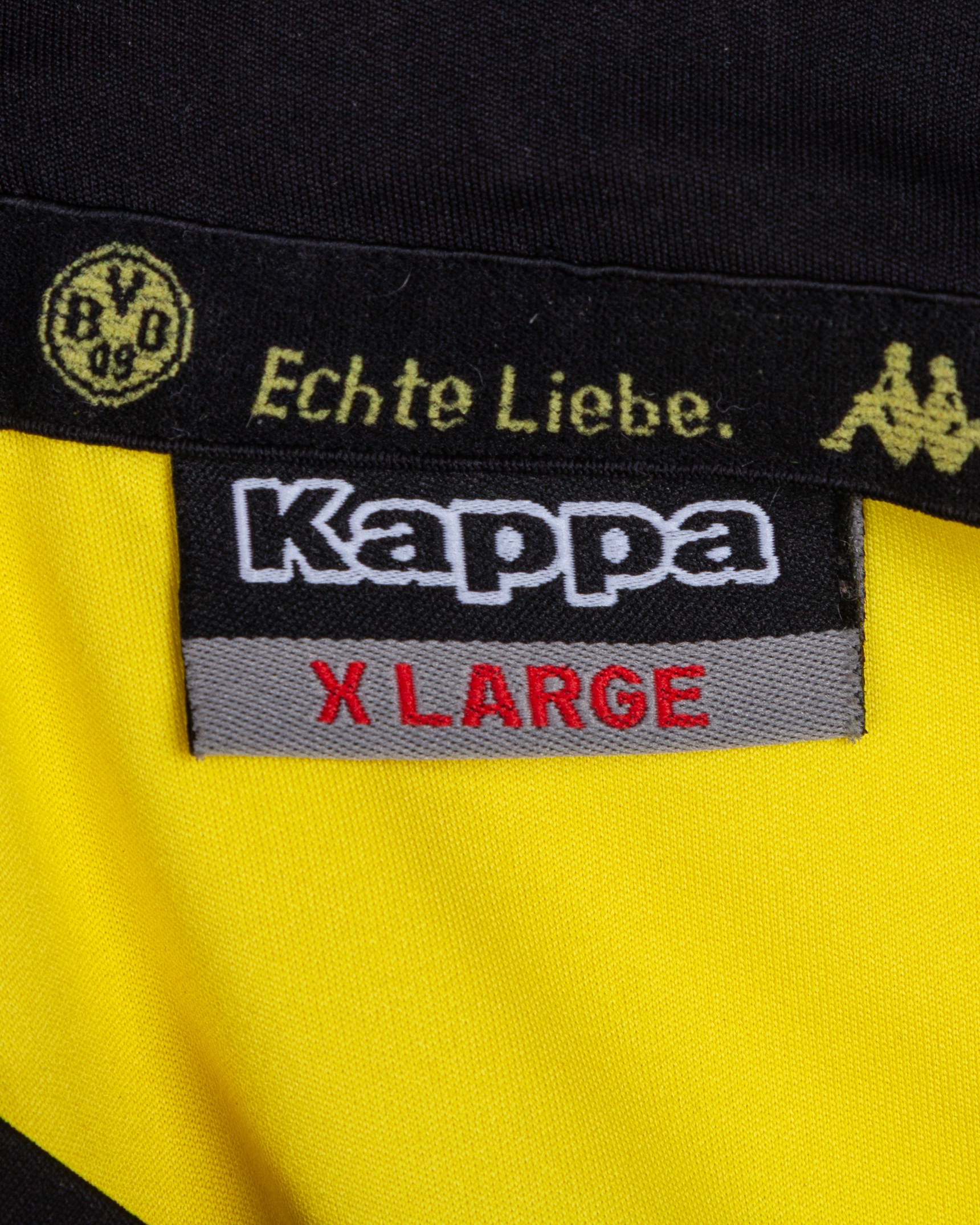 Robert Lewandowski yellow and black No.9 Borussia Dortmund match issued short-sleeved shirt, 2011-12, Kappa, XL, with crew-neck collar and embroidered cloth badge inscribed BVB, the reverse lettered LEWANDOWSKI, the right sleeve with DFB Pokal Cup flash, the other with Fussball De flash