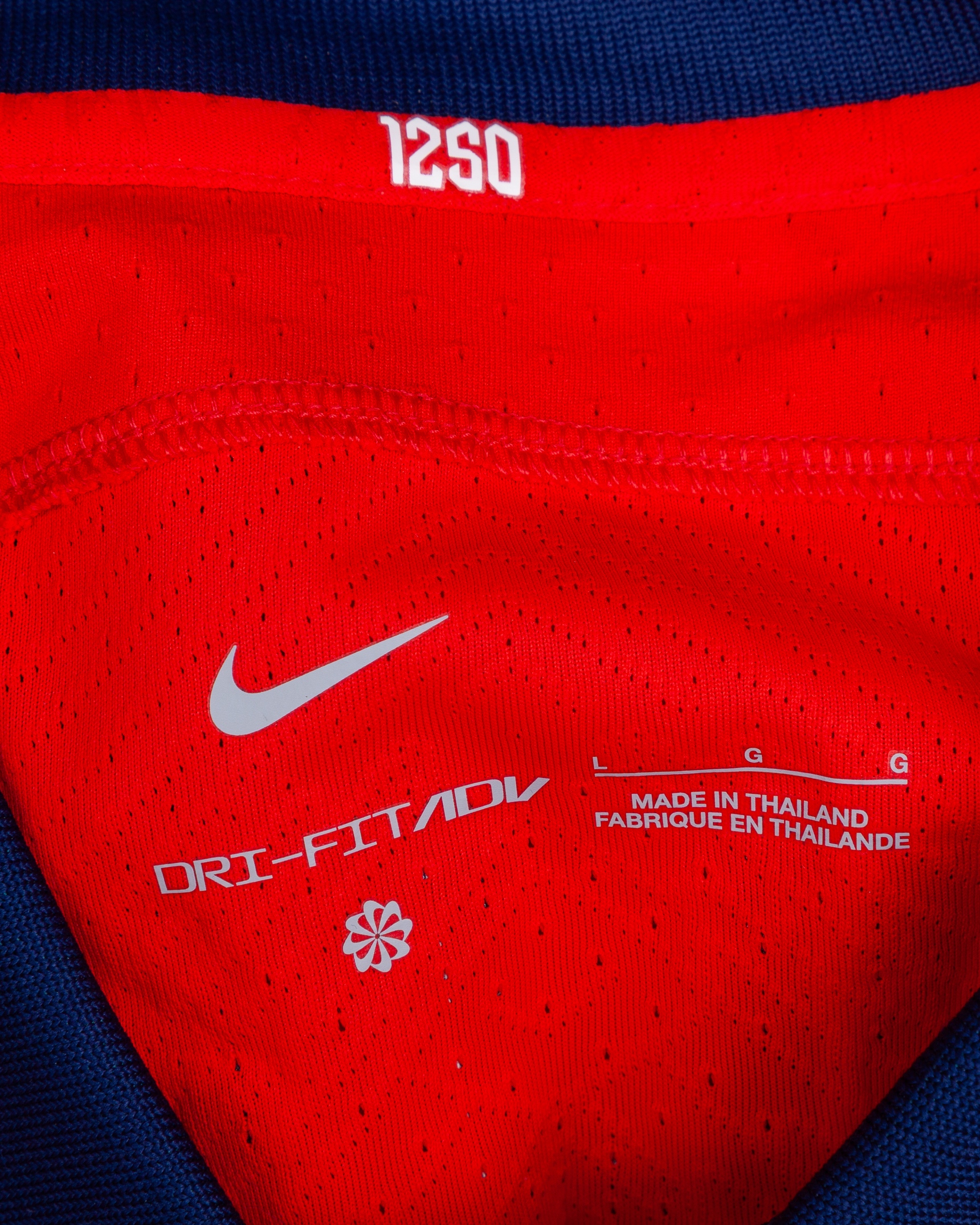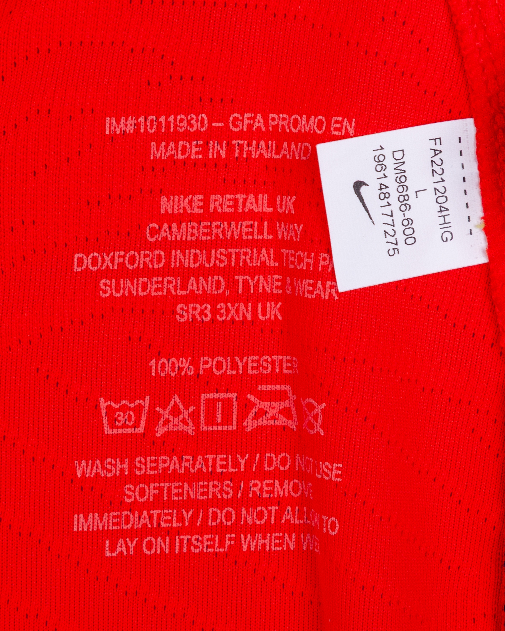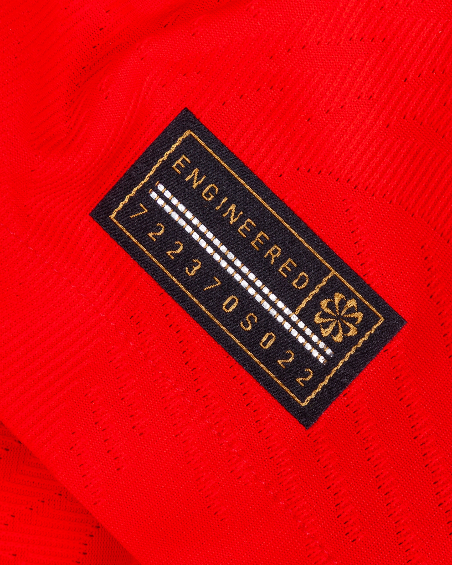 Kalvin Phillips red and blue No.14 England match issued short-sleeved shirt, Nike, L, with v-neck collar and printed badge, the reverse lettered PHILLIPS, the right sleeve with FIFA World Cup Qatar 2022 flash, the other with Football United flash