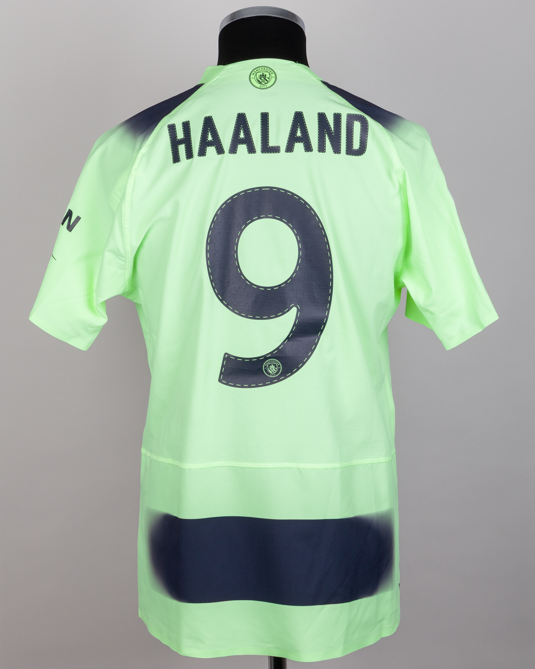 Erling Haaland yellow and black No.9 Manchester City v. Bayern Munich shirt, 2023