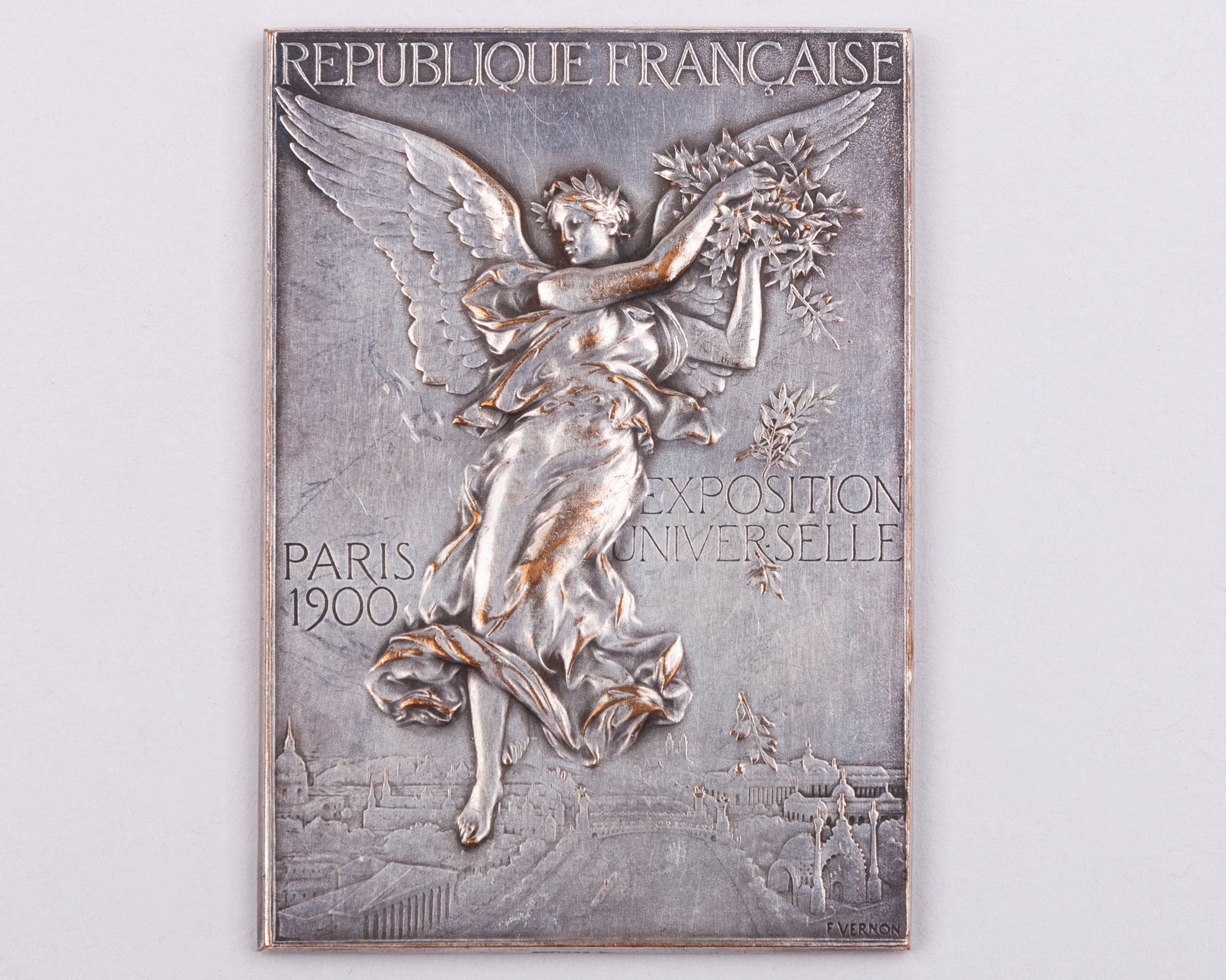 Paris 1900 Olympic Games presentation plaque, designed by F. Vernon