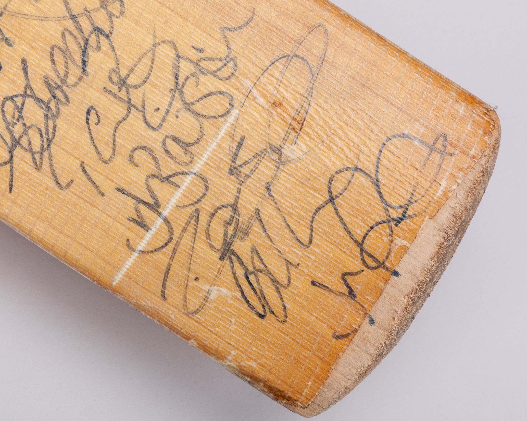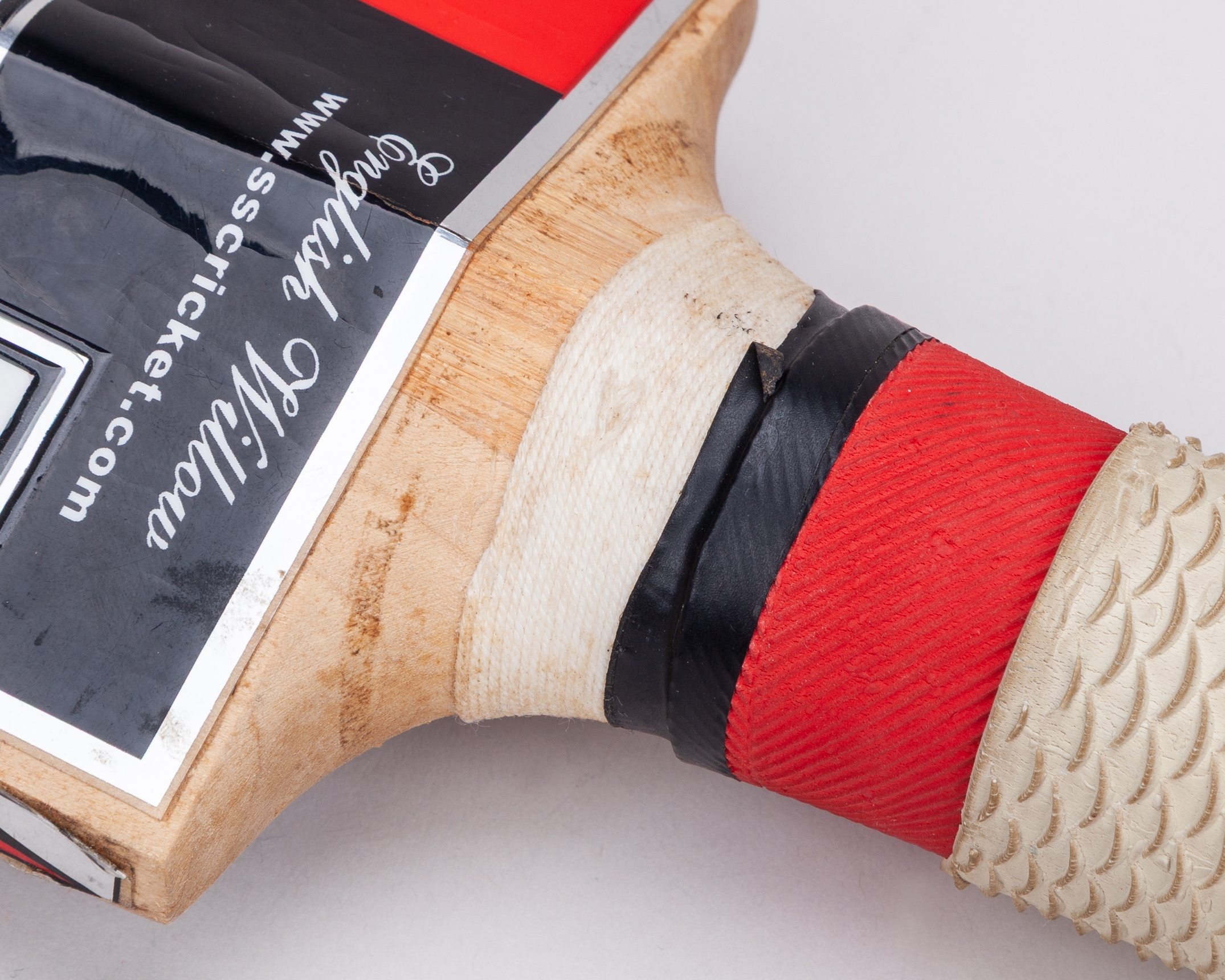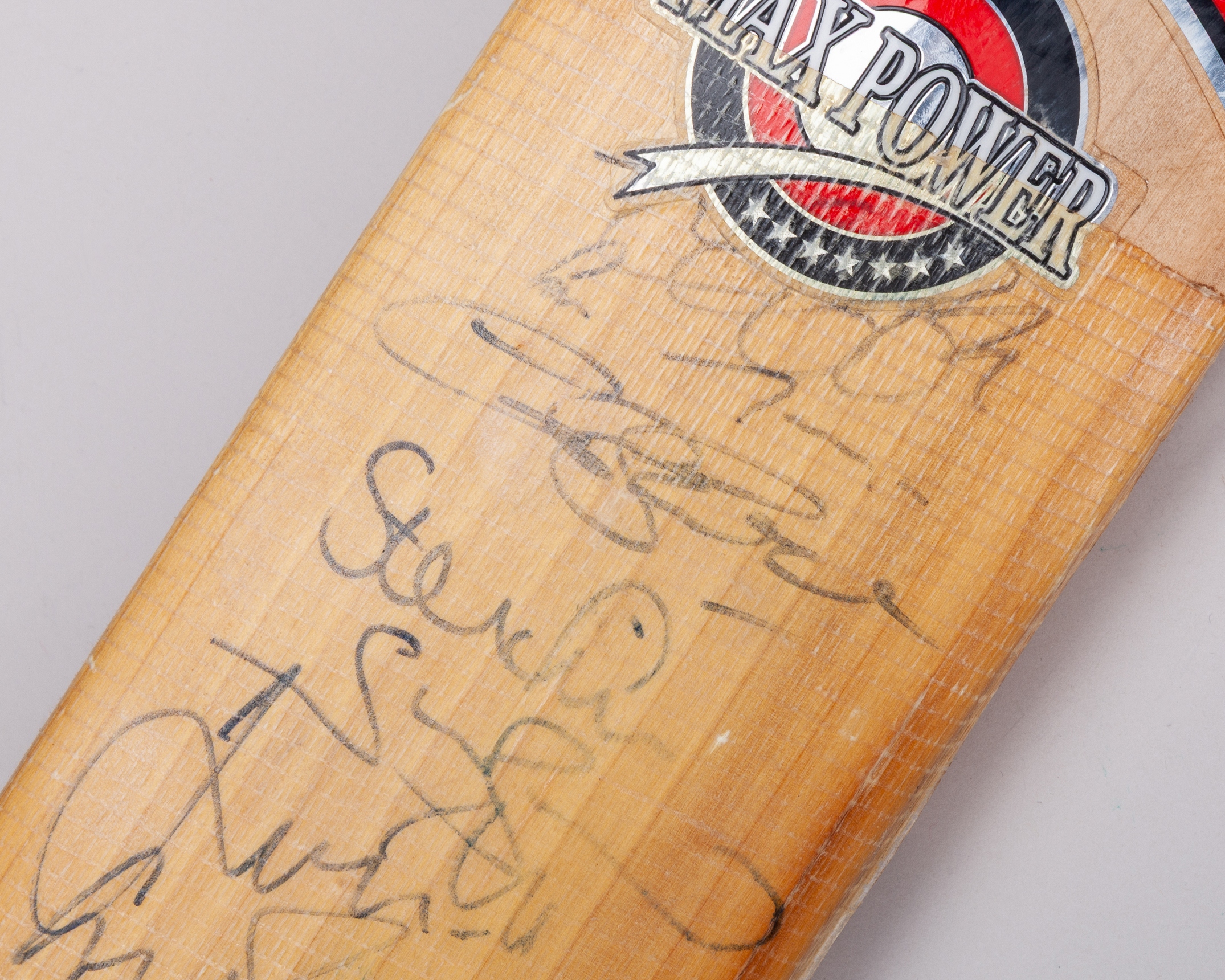 Ravi Bopara Sareen Sports max Power Ton used autographed Champions Trophy cricket bat, 2013, with fourteen autographs including Jonny Bairstow, Joe Root, Ravi Bopara and Stuart Broad etc., with signs of wear and Ravi Bopara written in black ink on the toe, with some fading and added grip