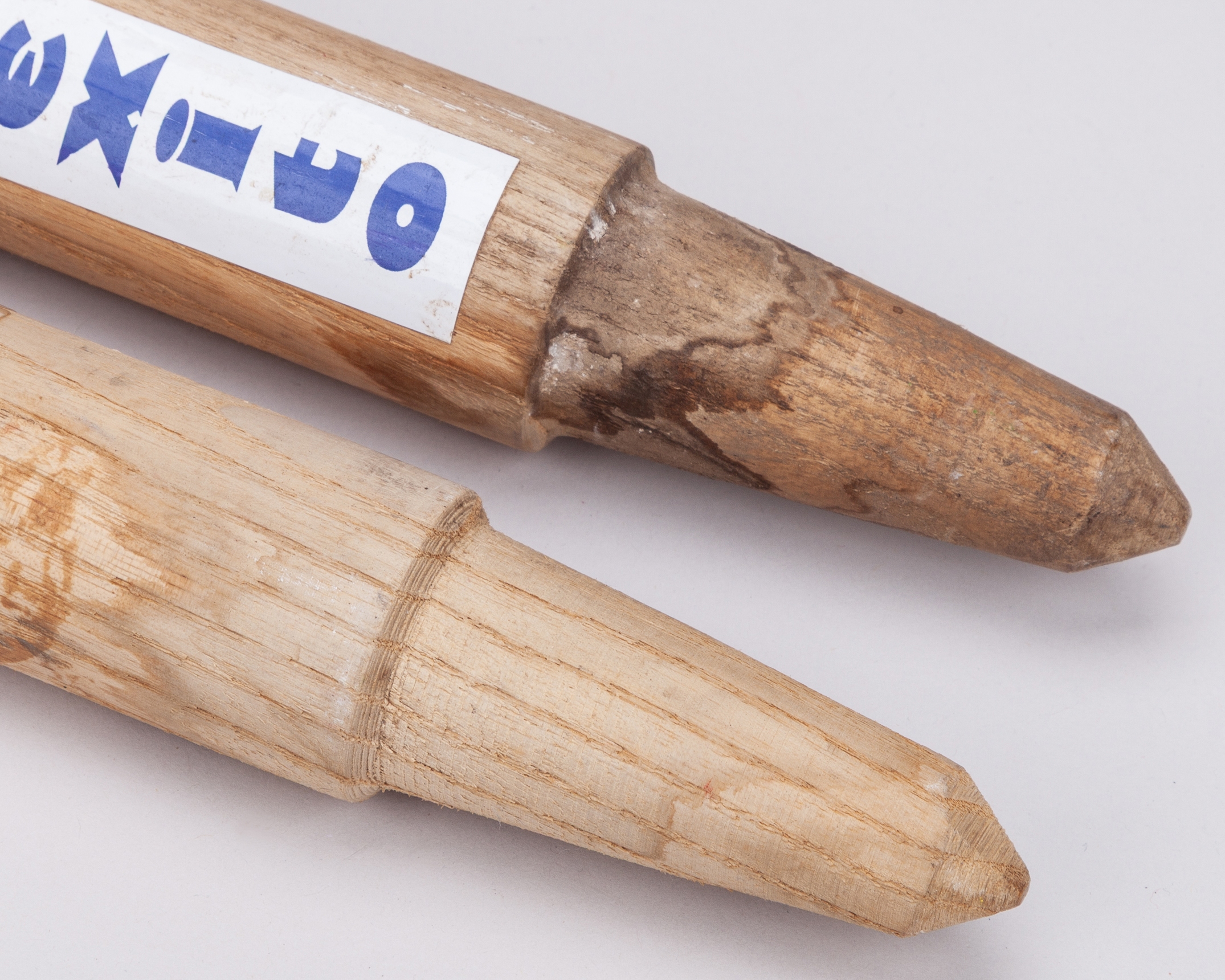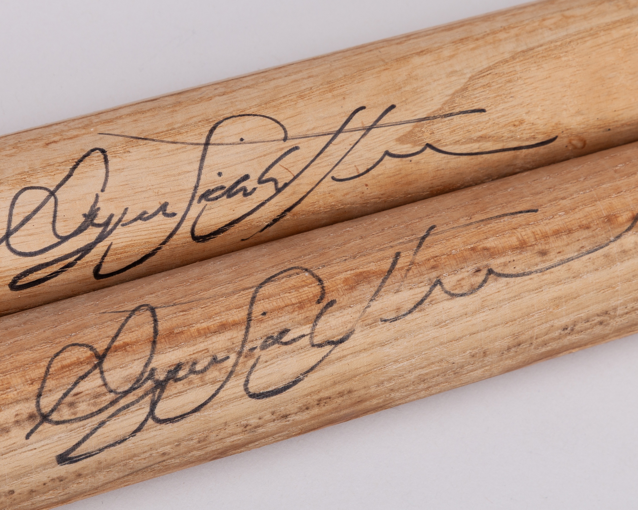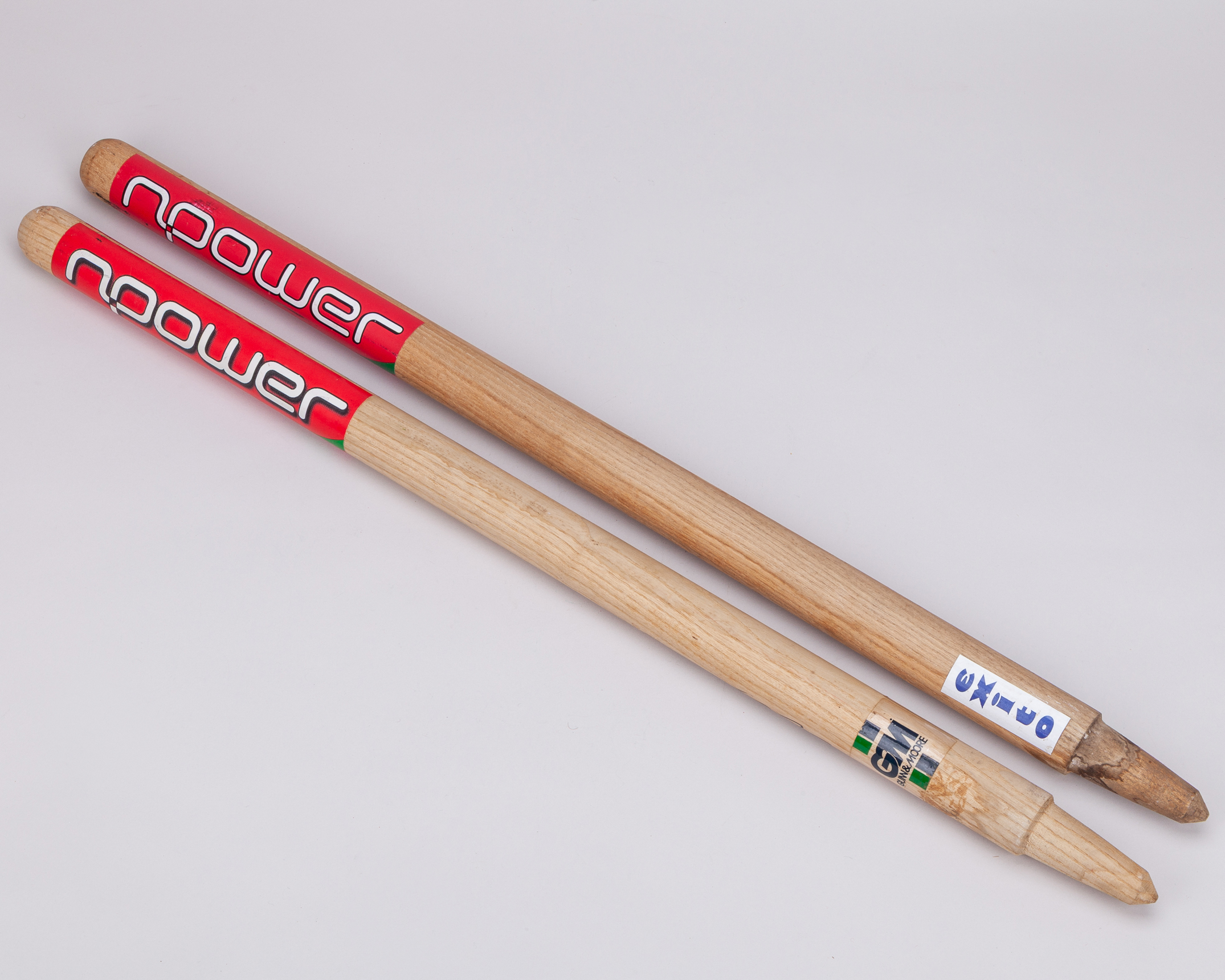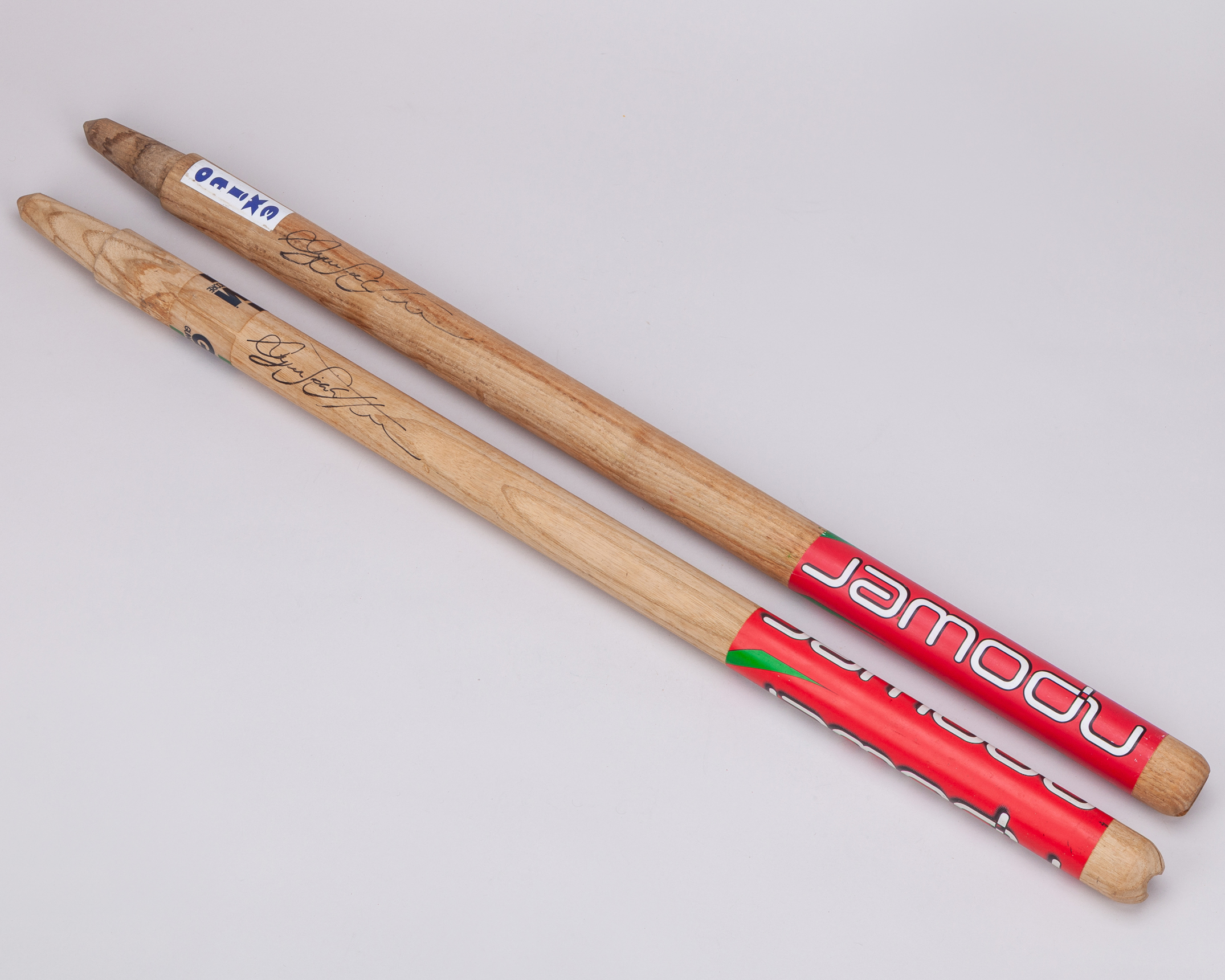 Two Ryan Sidebottom autographed Test cricket stumps, with signs of use