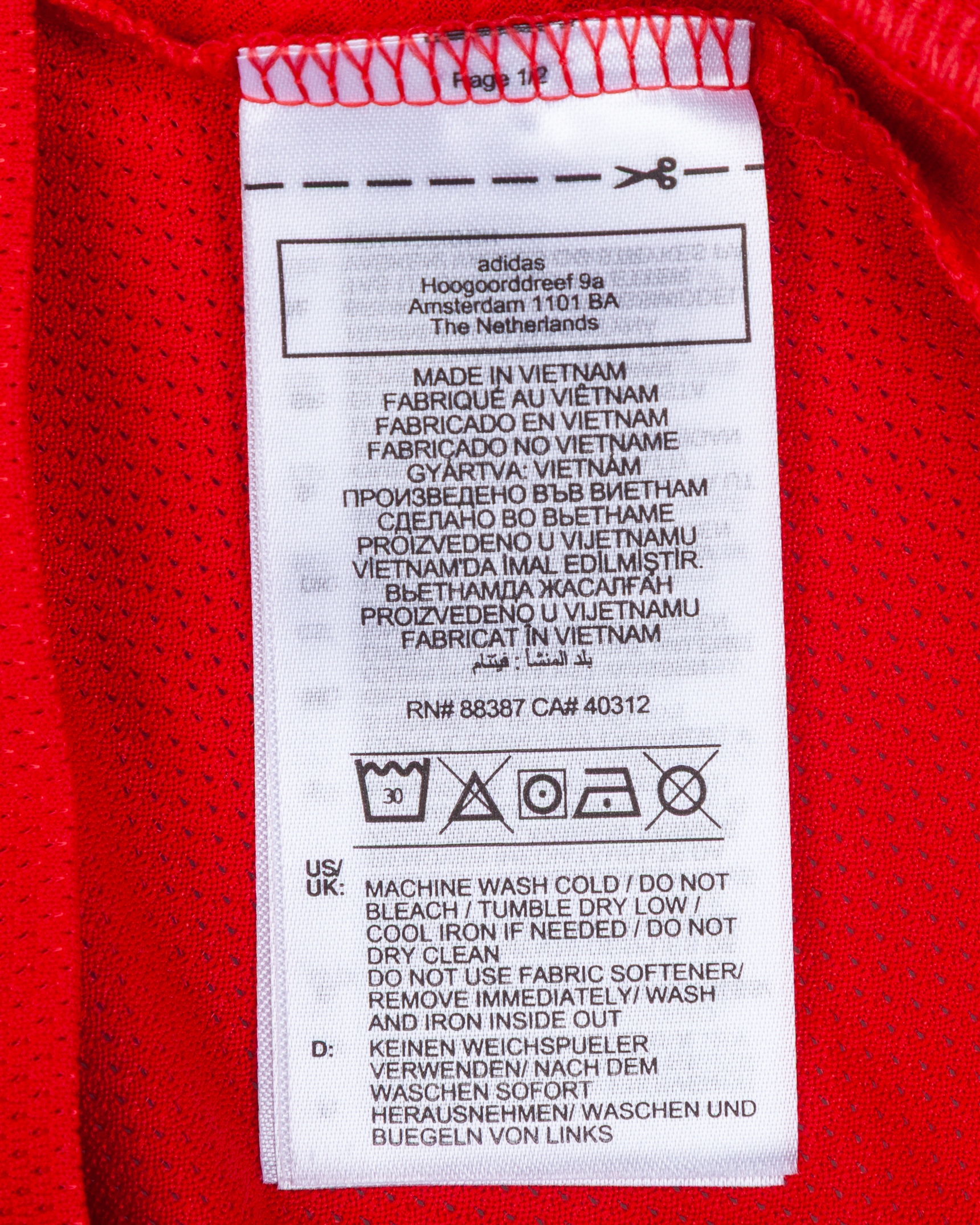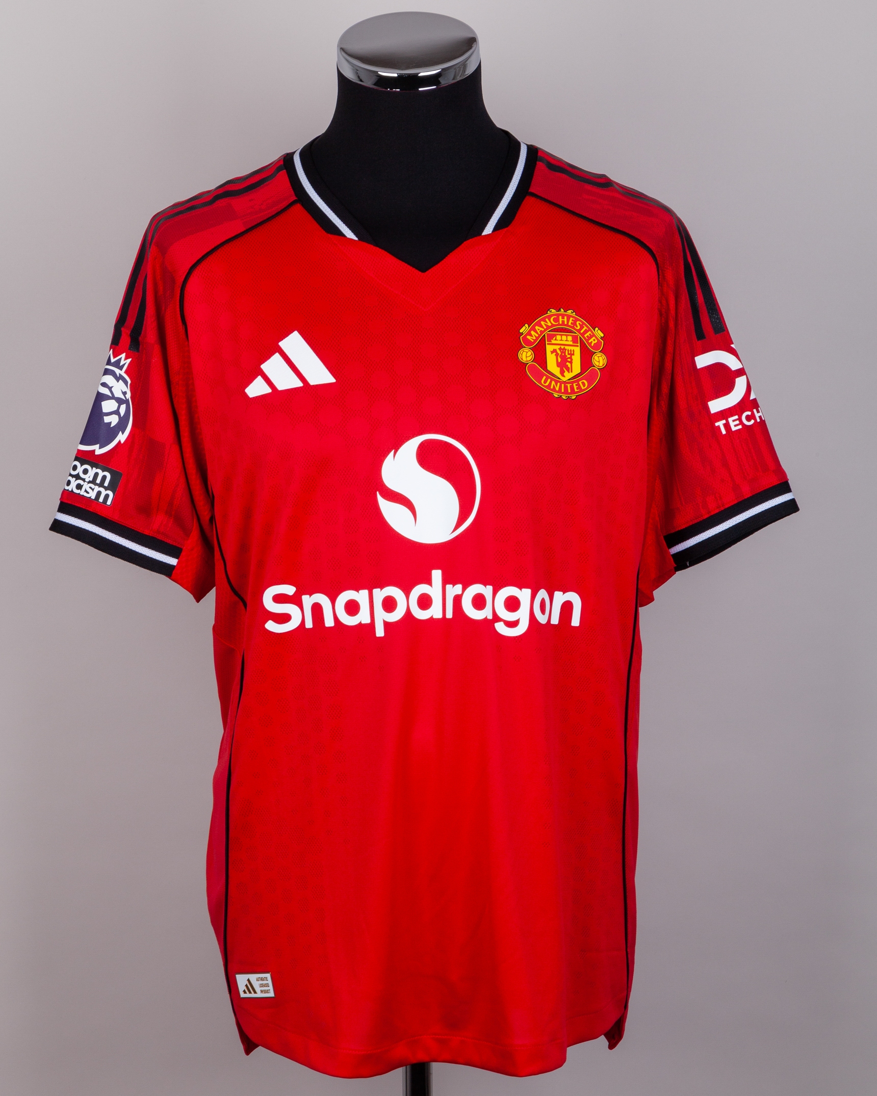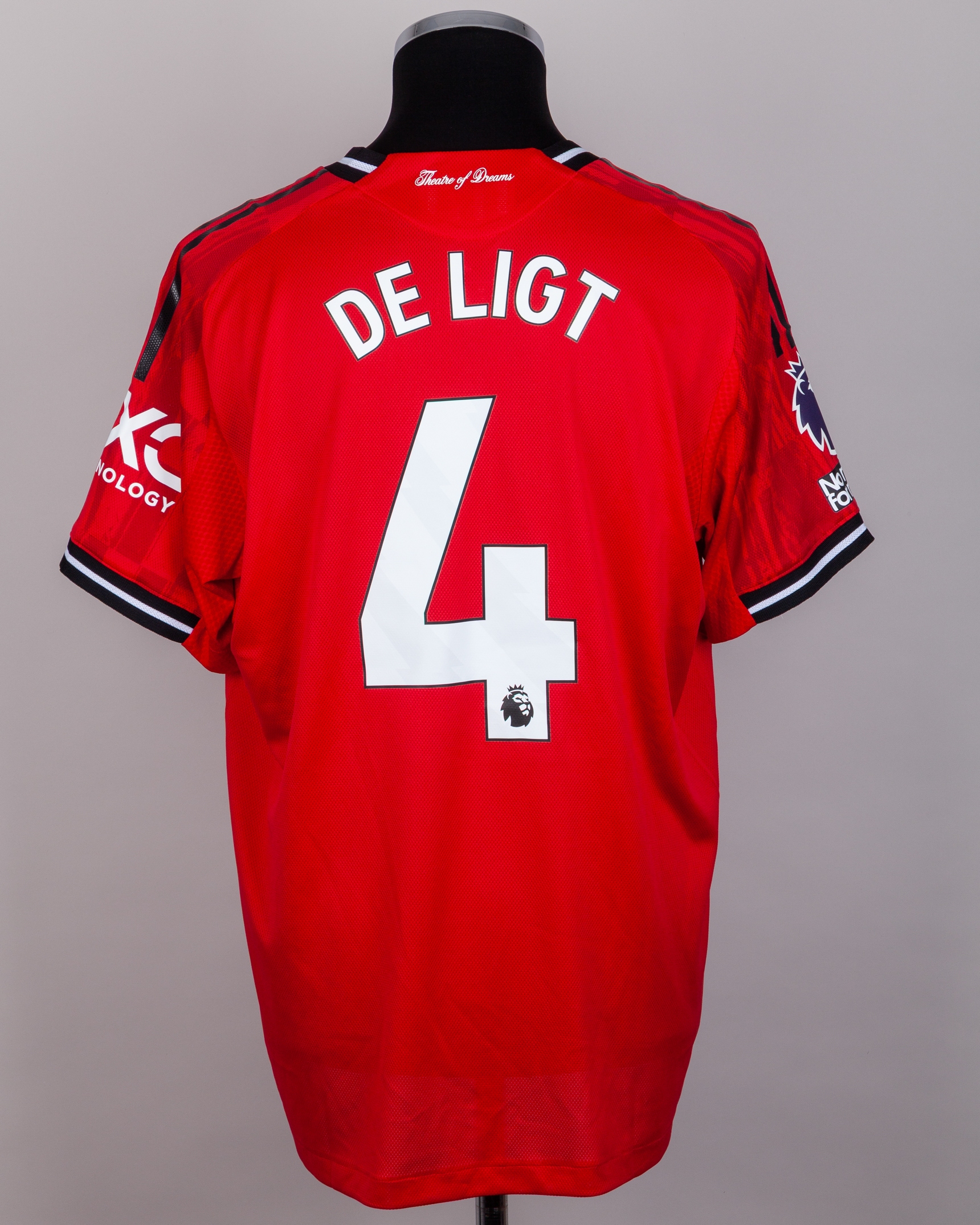 Matthijs de Ligt red No.4 Manchester United short-sleeved shirt, Adidas, XL, with v-neck collar and printed badge, the reverse lettered DE LIGT, the right sleeve with Premier League flash