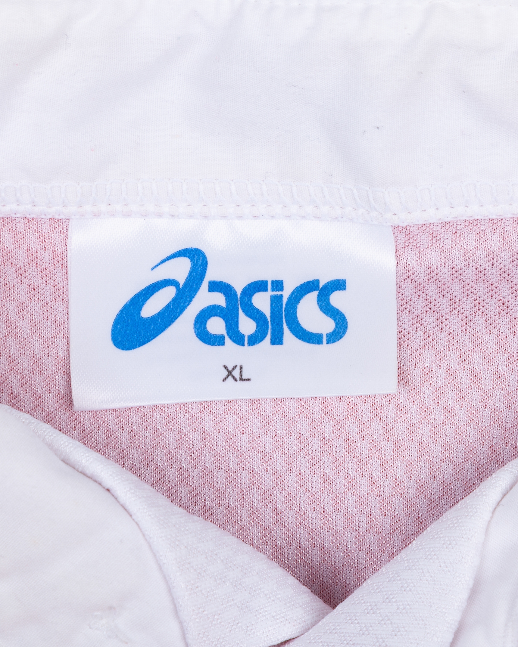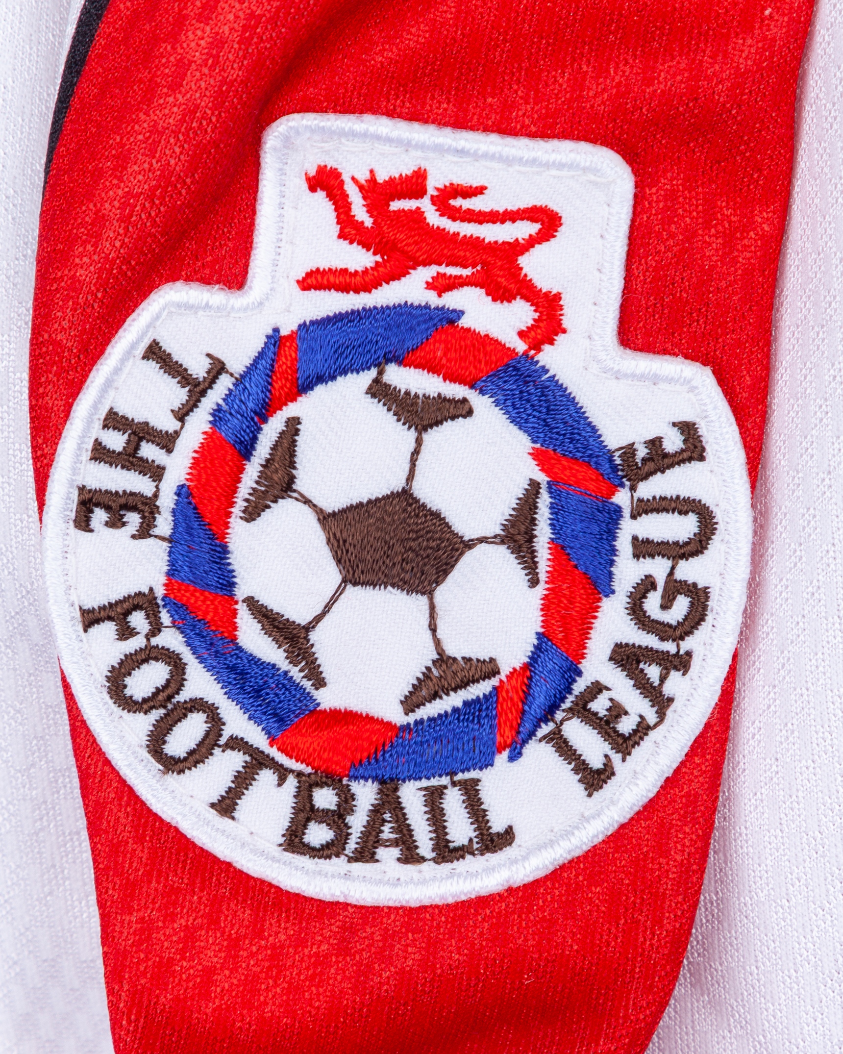 Ian Clarkson red and white No.2 Stoke City match worn long-sleeved shirt, 1995-96, Asics, XL, with button-up collar and embroidered cloth badge inscribed STOKE CITY F.C., the sleeves with The Football League flashes