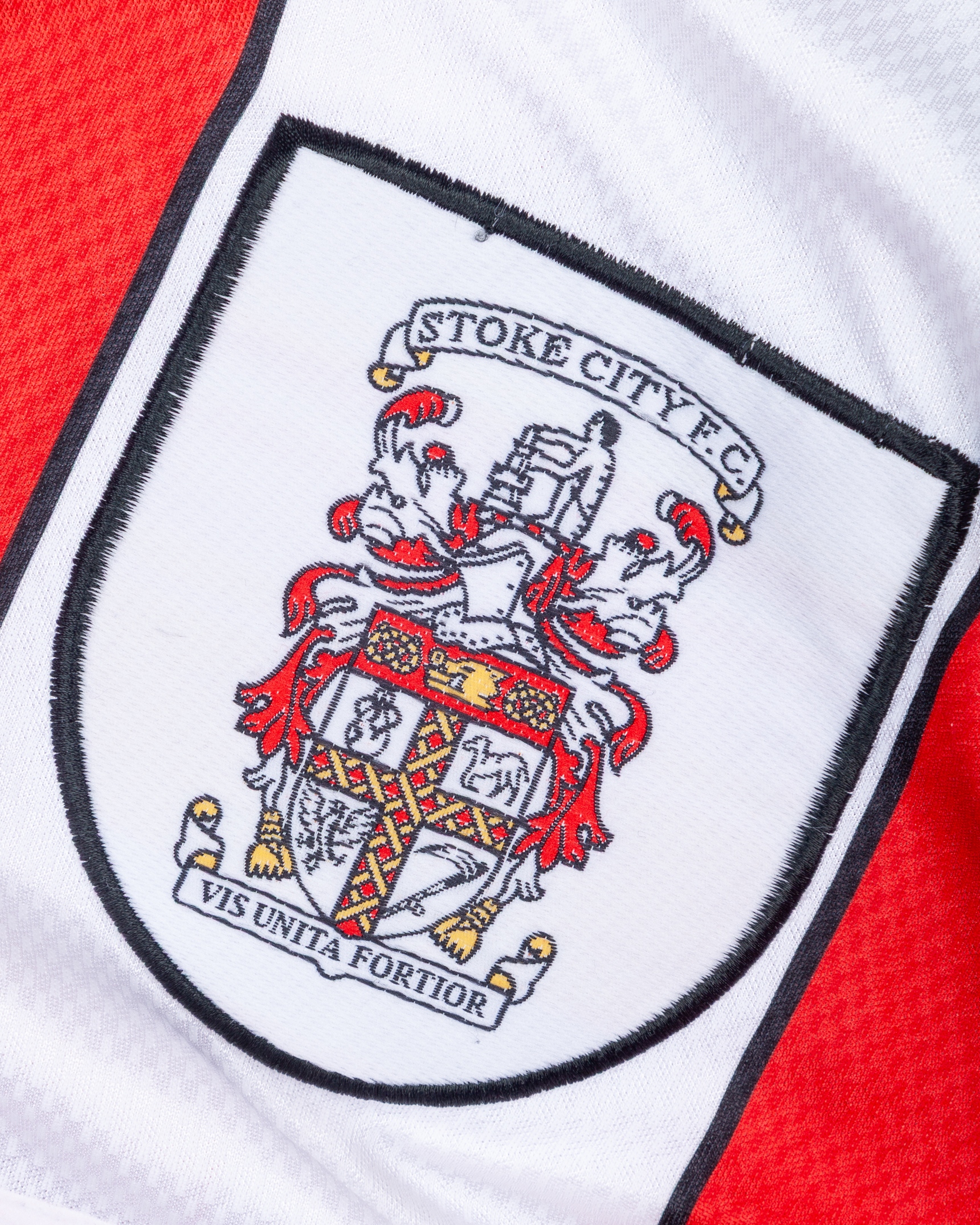 Ian Clarkson red and white No.2 Stoke City match worn long-sleeved shirt, 1995-96