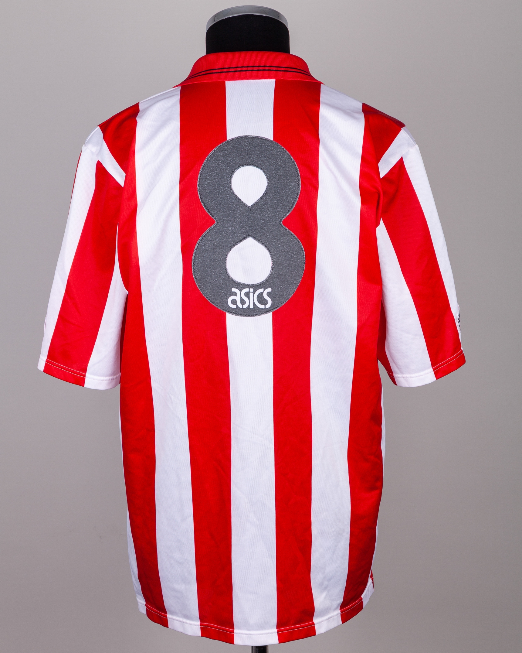 Ian Clarkson red and white No.8 Stoke City match worn short-sleeved shirt, 1993-94