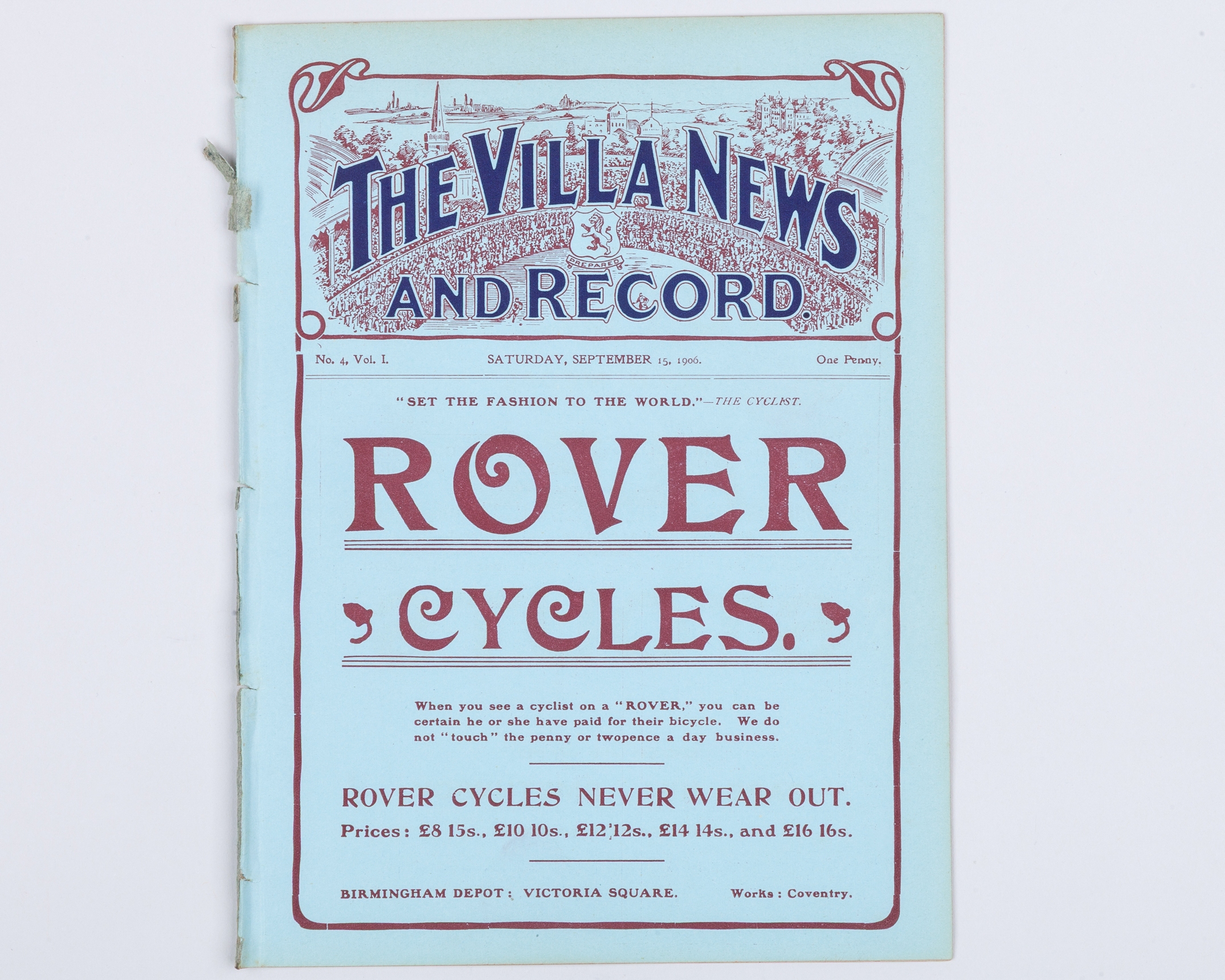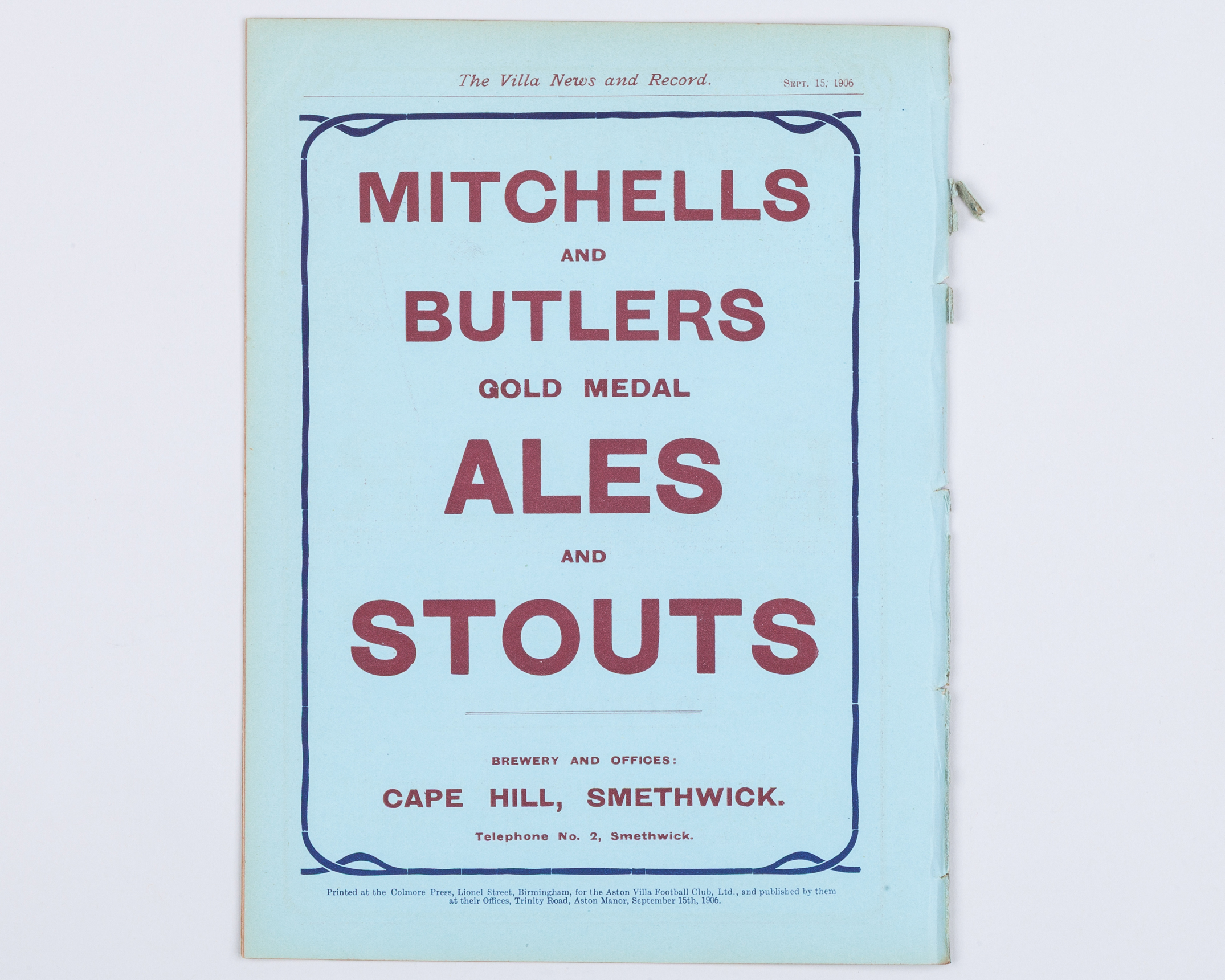 Aston Villa v. Birmingham match programme, 15th September 1906