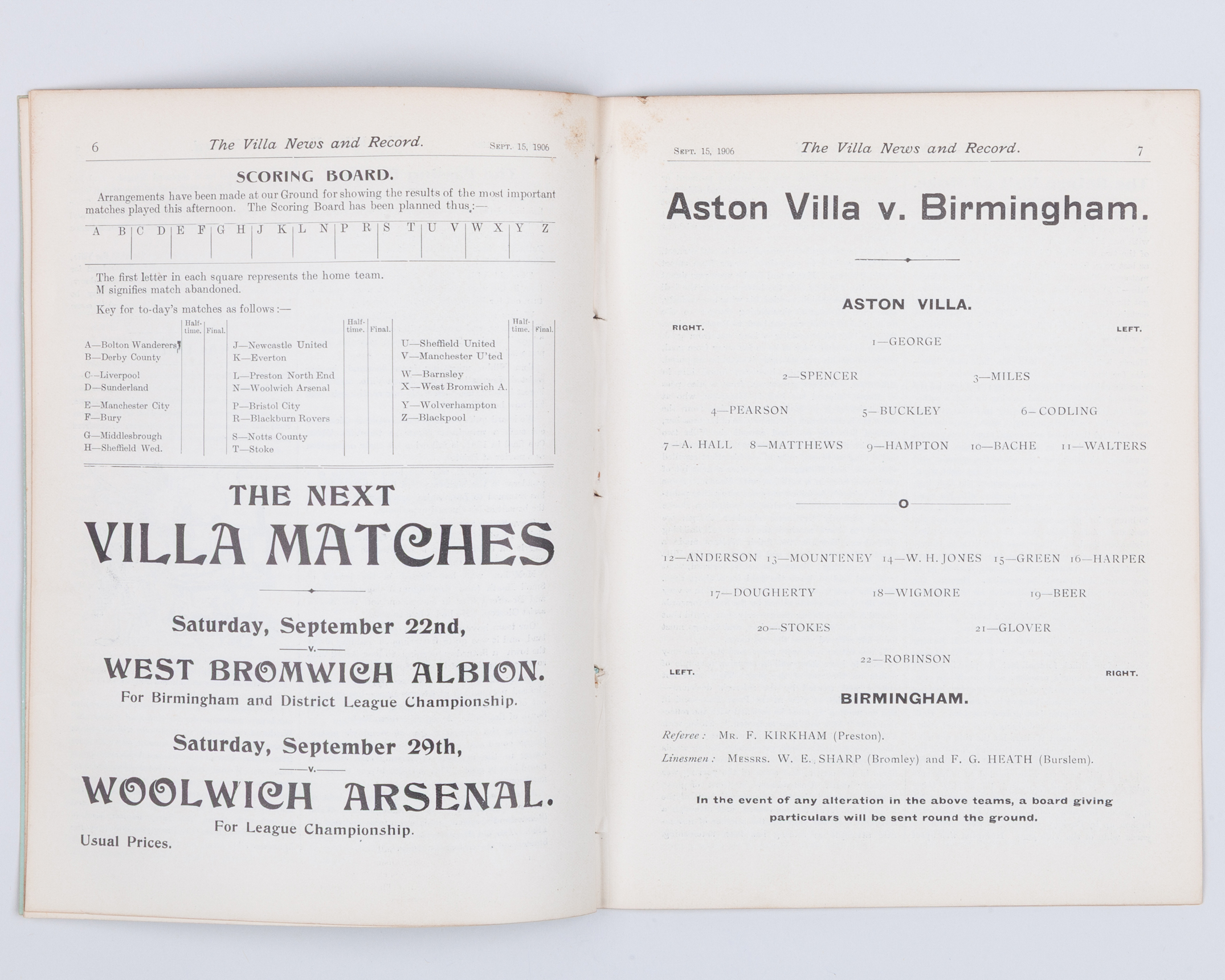Aston Villa v. Birmingham match programme, 15th September 1906, ex bound volume