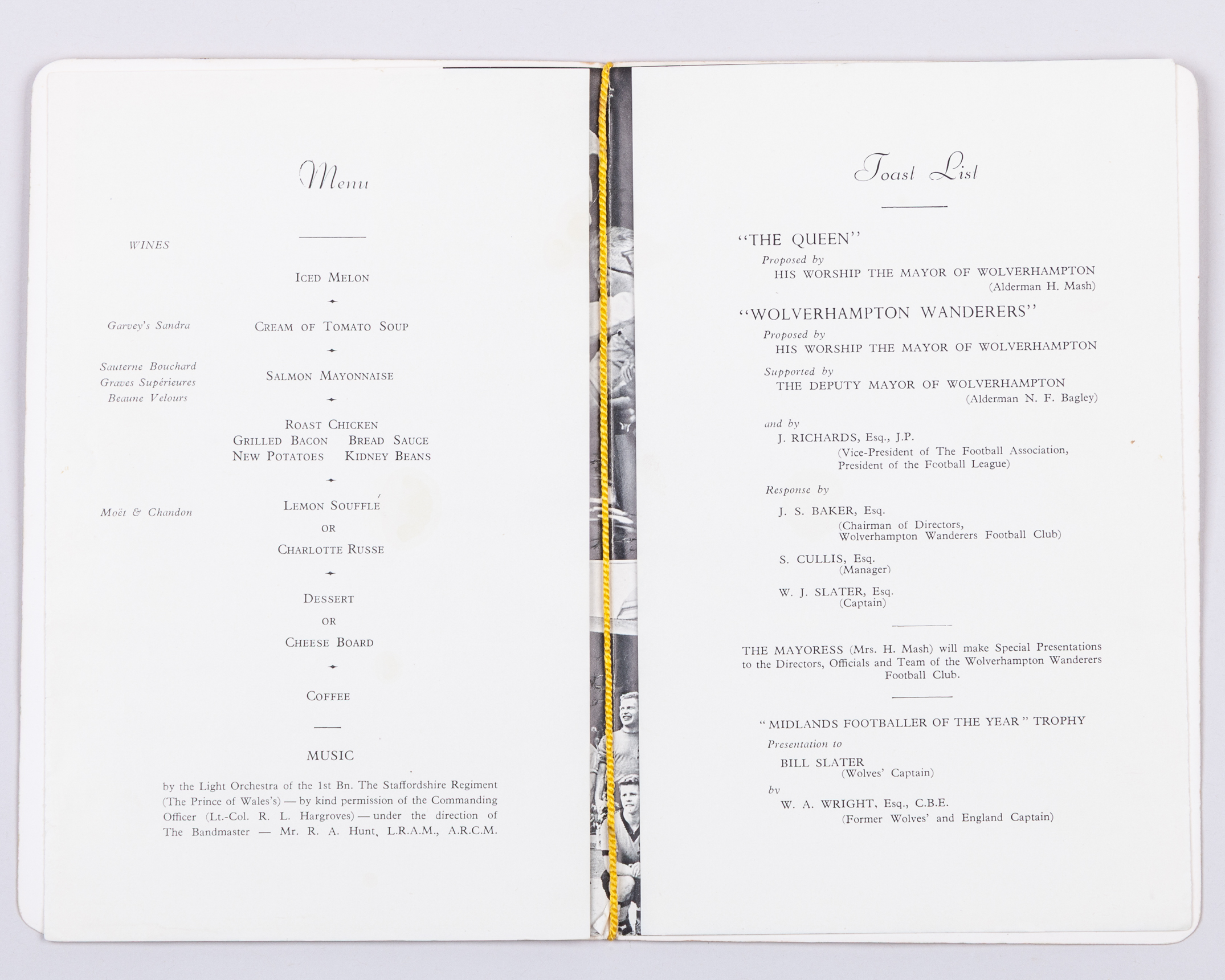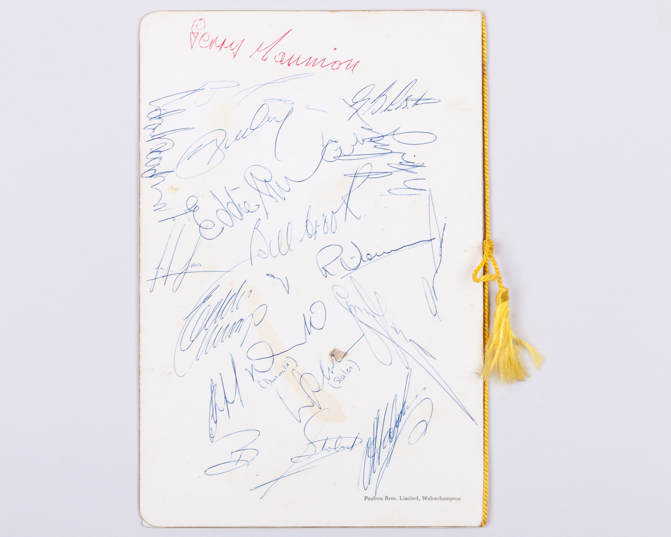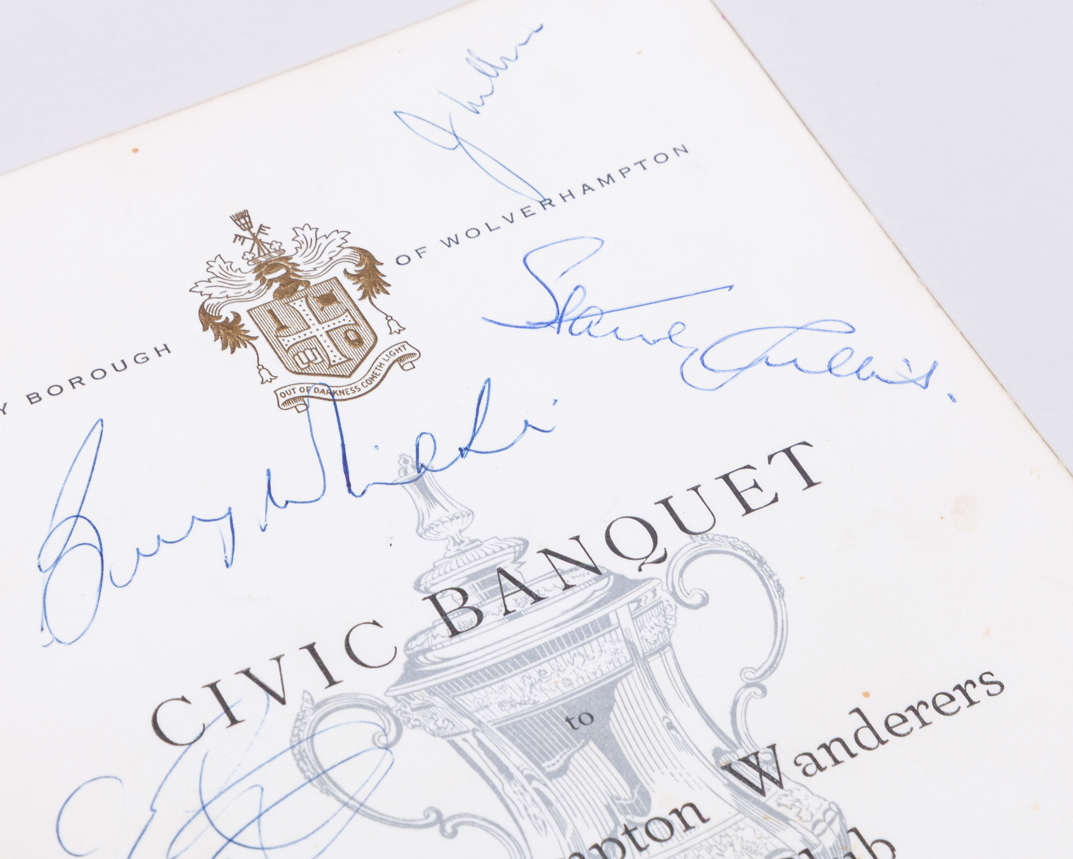 A Wolverhampton Wanderers Winners of the Football Association Banquet autographed menu card