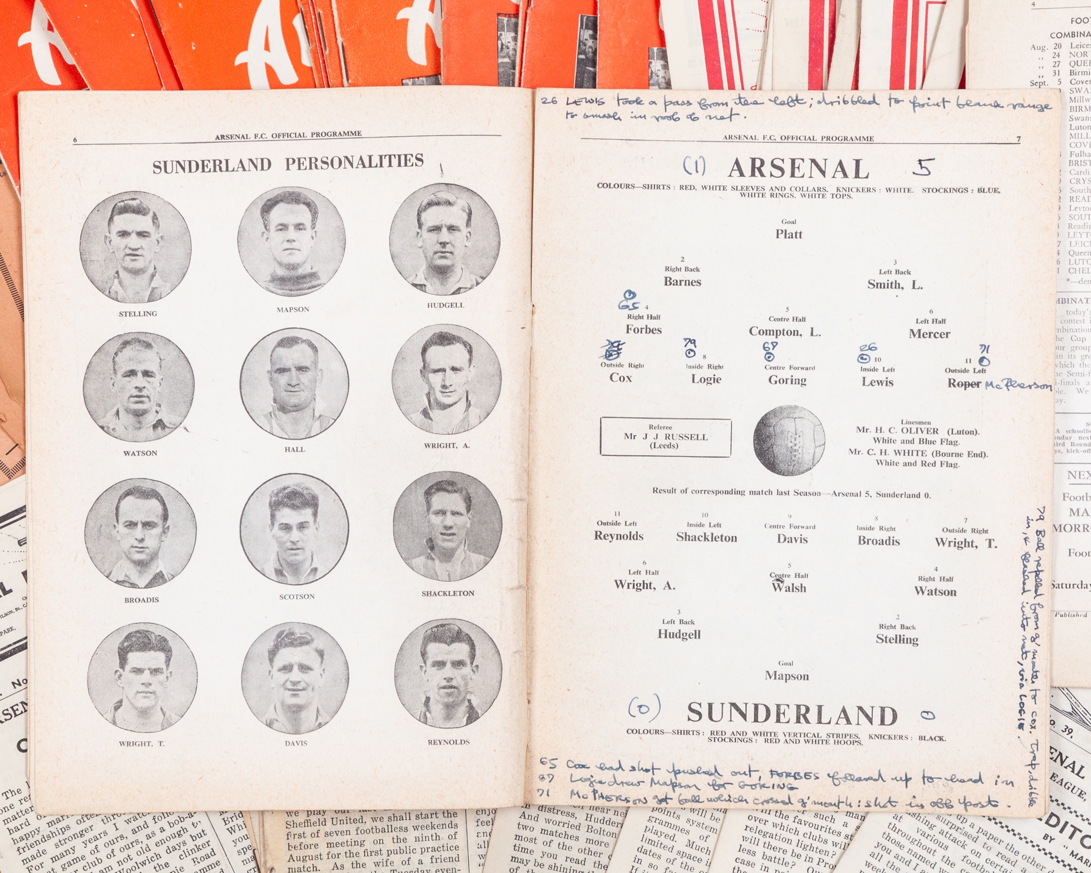 A collection of Arsenal home match programmes from 1942 to 1950
