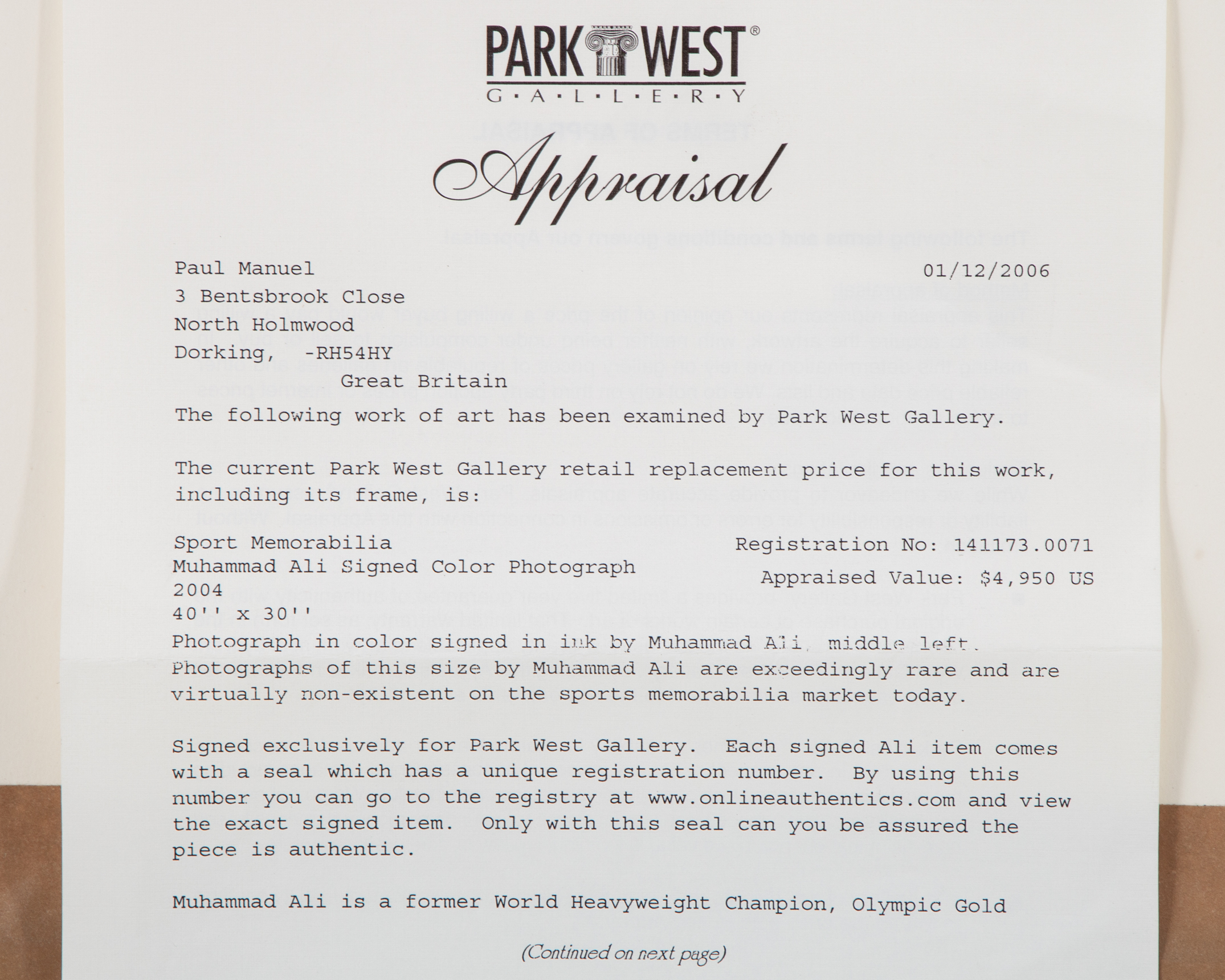 A large colour signed photograph of Muhammad Ali