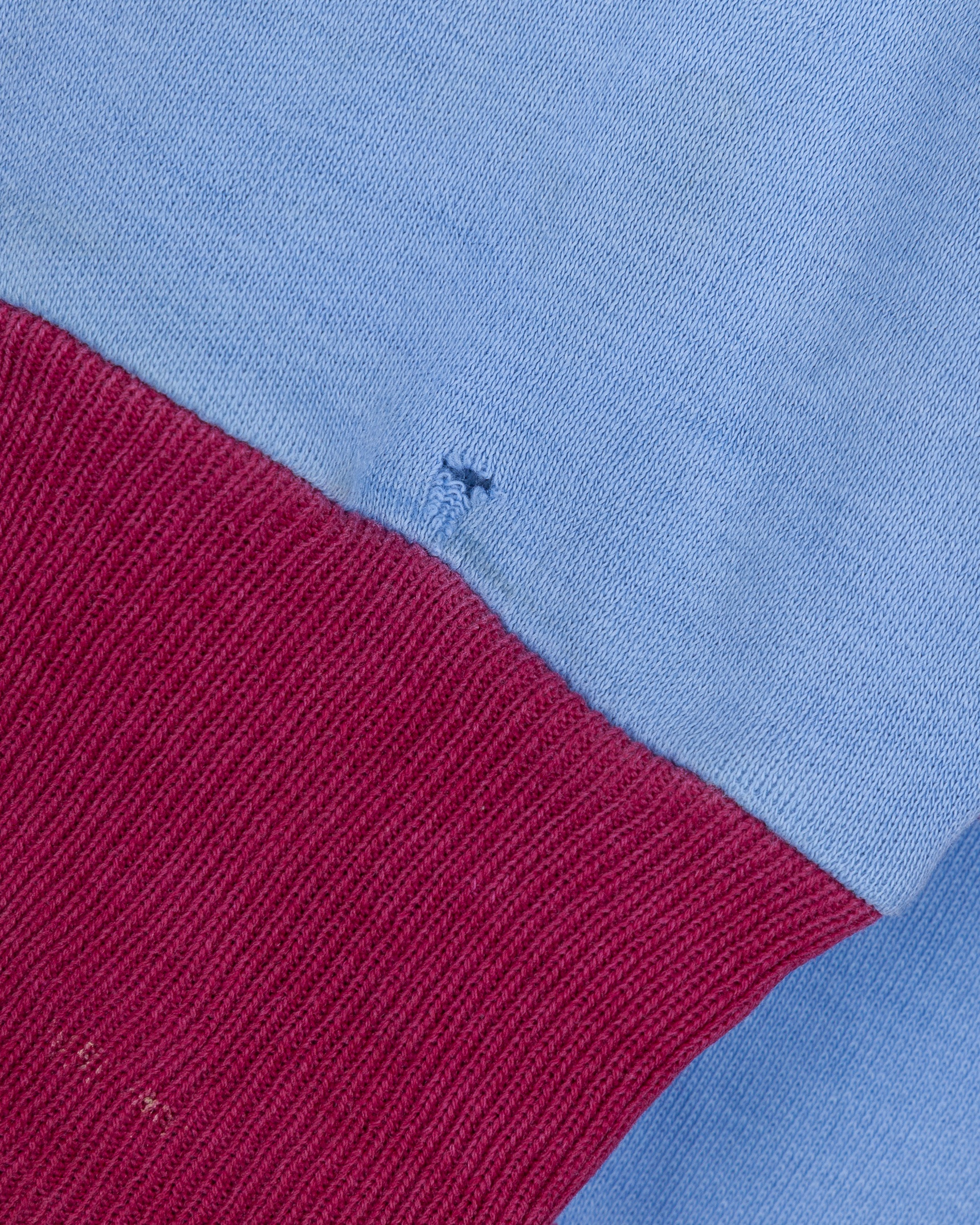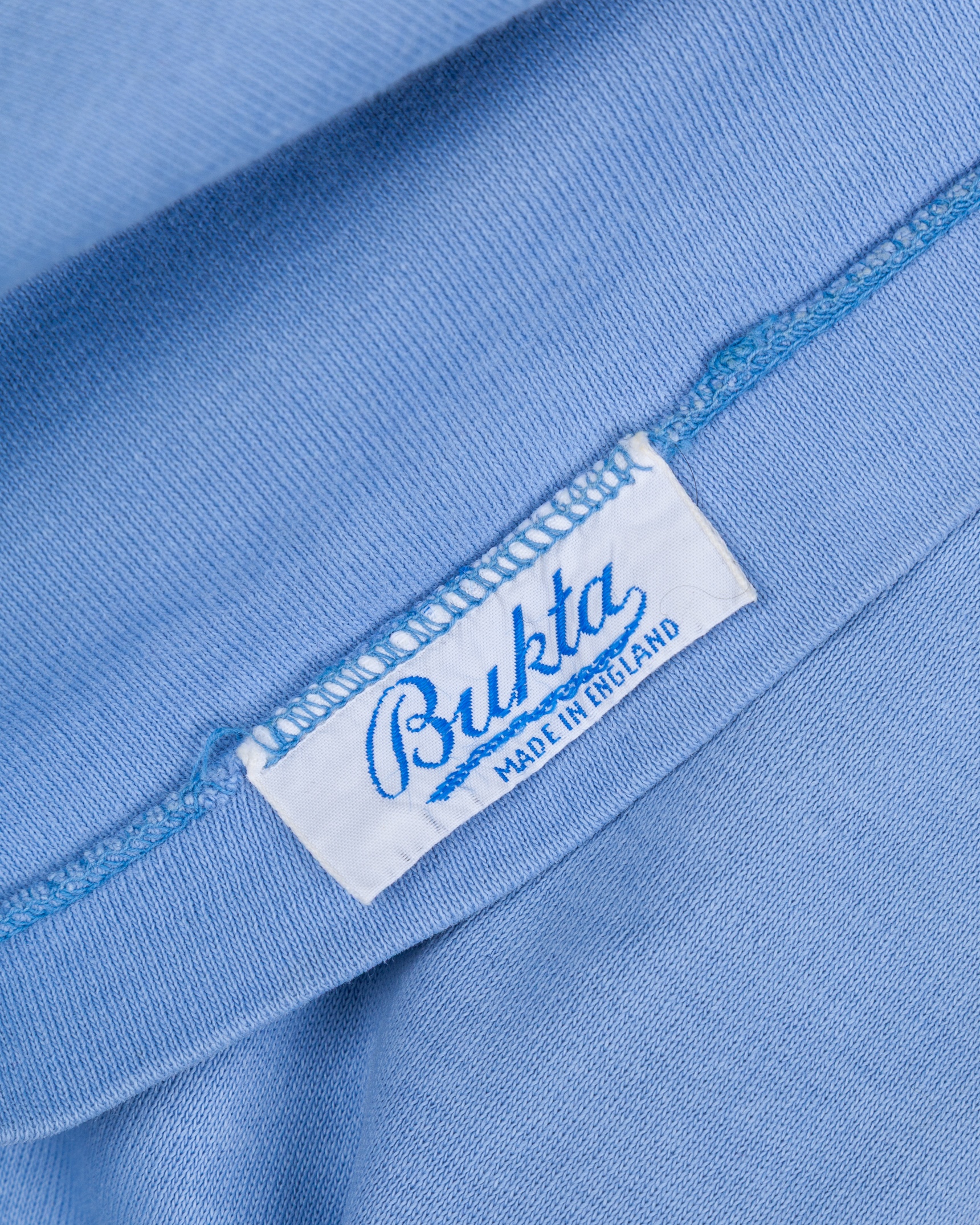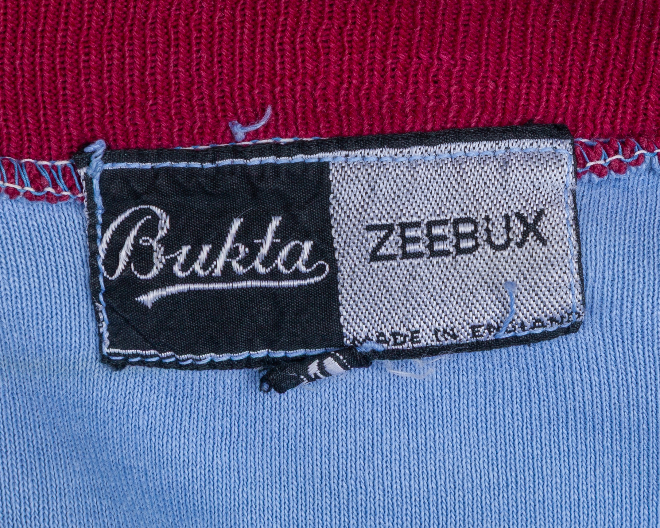 Bill Bonds a blue and claret No. West Ham United match worn long-sleeved shirt, 1970s, Bukta, 40, with crew-neck collar, colour loss and slight staining front and back