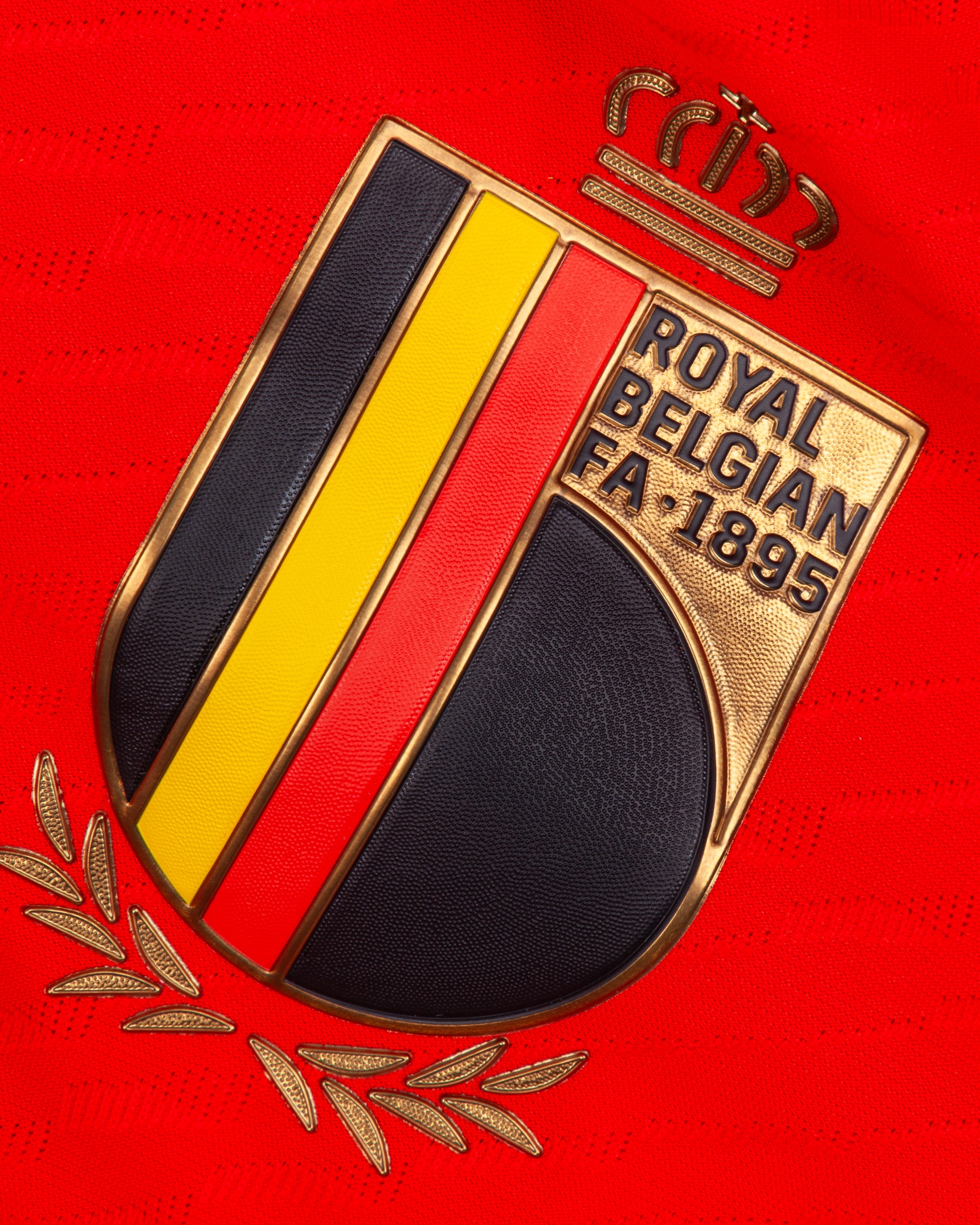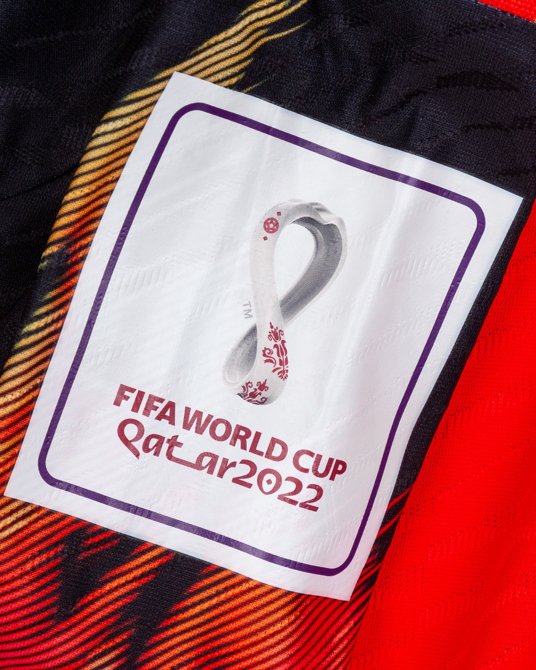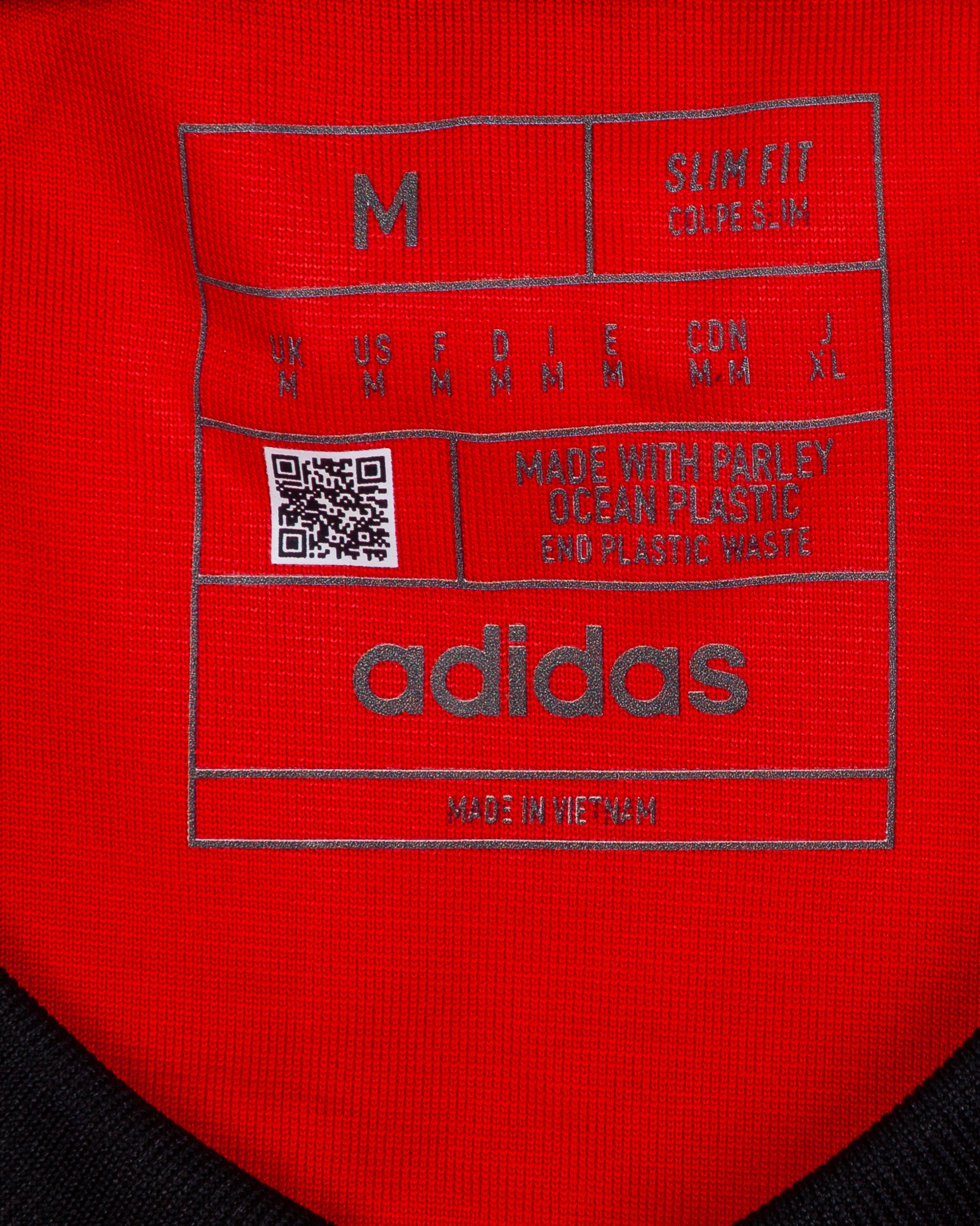 Kevin De Bruyne red and black No.7 Belgium v. Canada match issued short-sleeved shirt, 2022, Adidas, M, with crew-neck collar and printed badge, with CANADA 23 NOVEMBER 2022 AHMAD BIN ALI STADIUM decal, the reverse lettered DE BRUYNE, the right sleeve with FIFA World Cup Qatar 2022 flash and the left with Football Unites flash