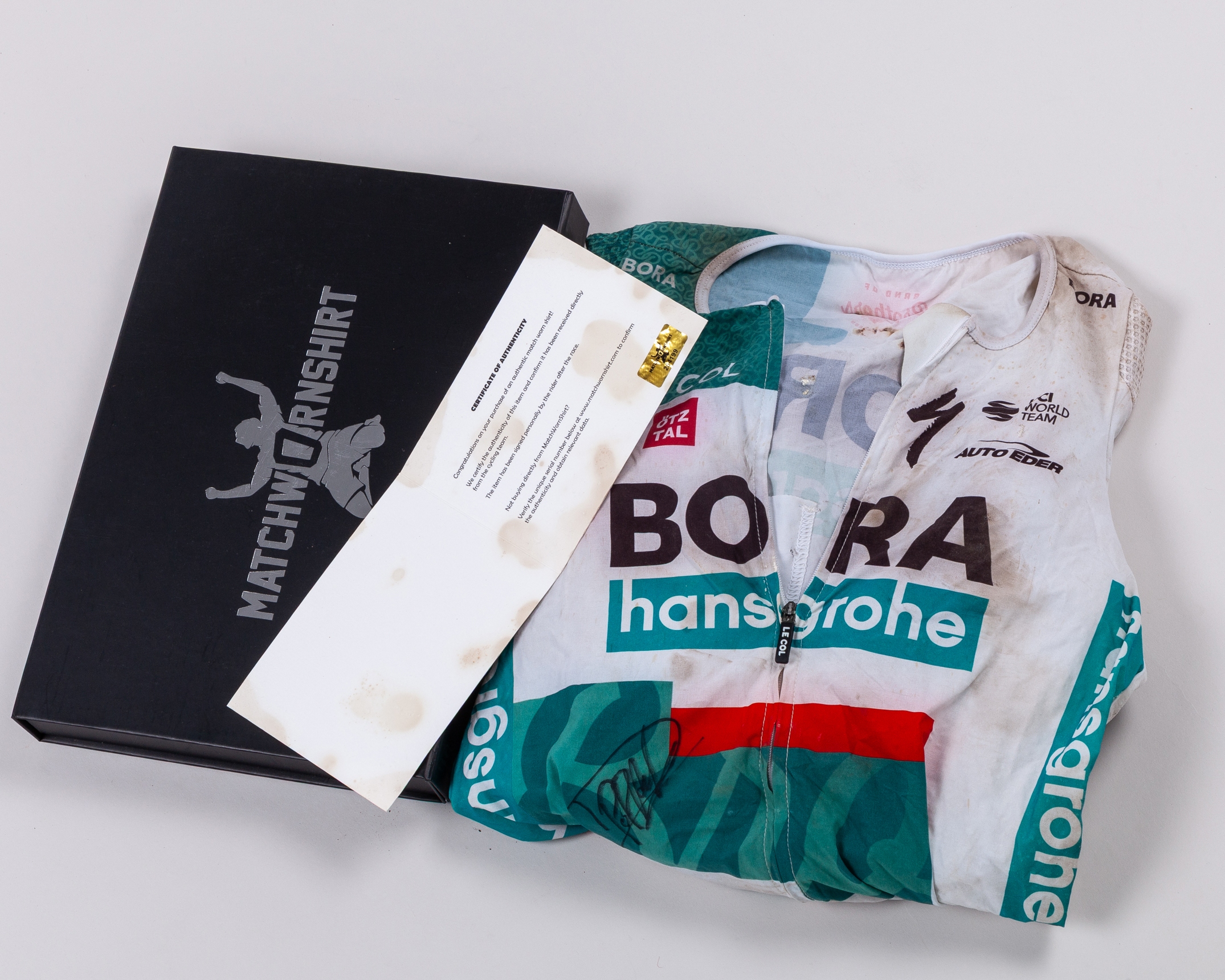Danny Van Poppel white and green Team Bora race worn Tour De France stage 5 jersey, 2022