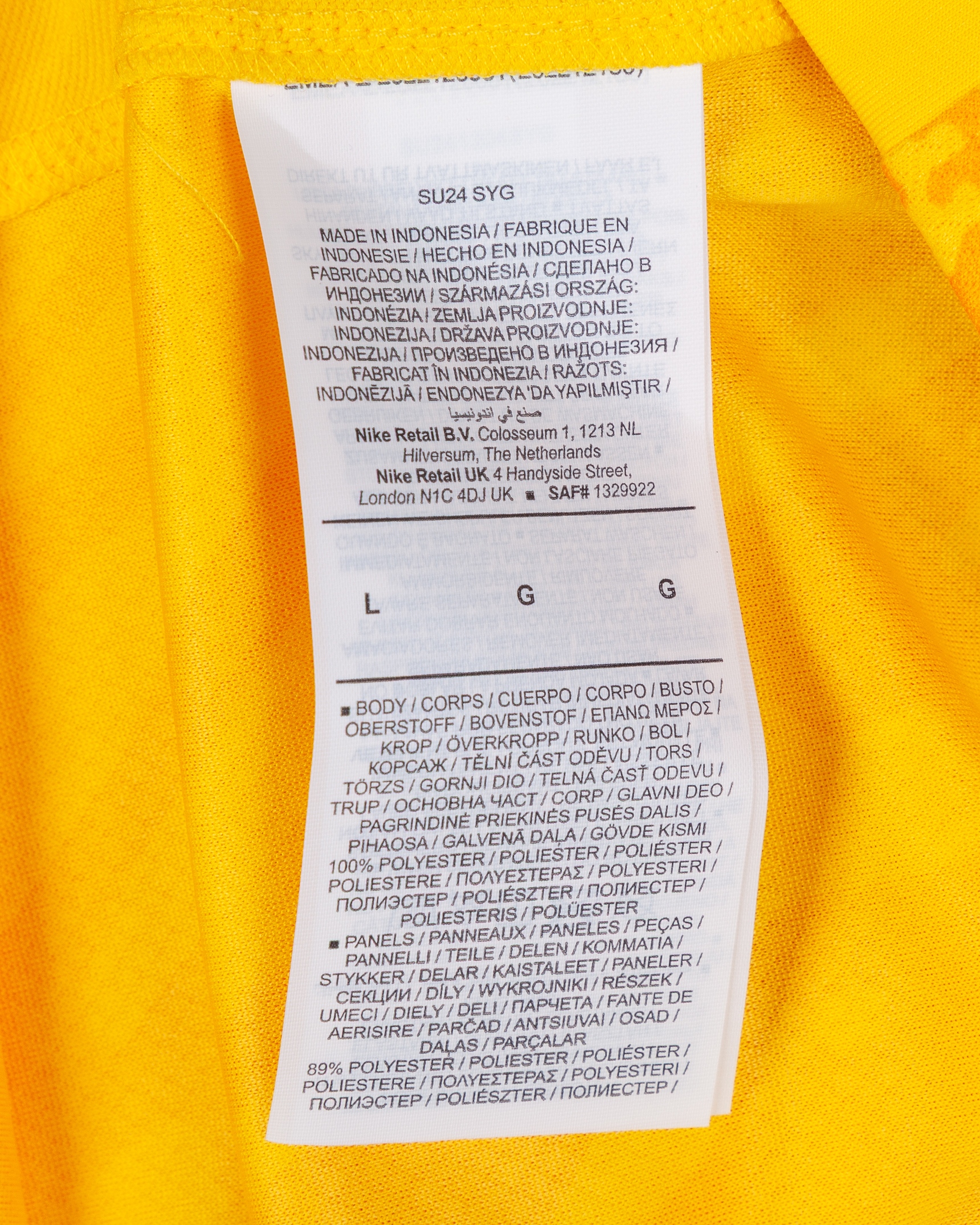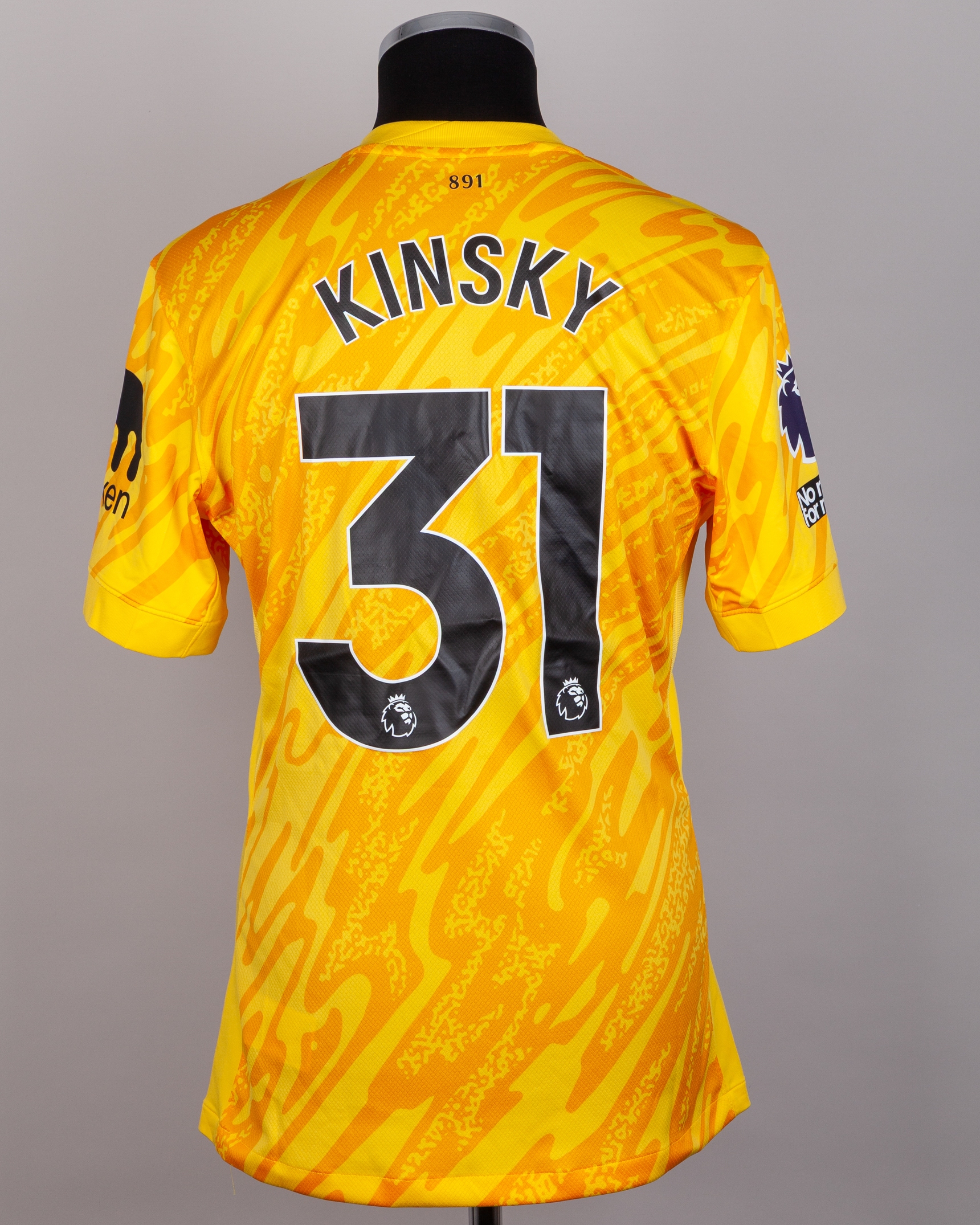 Antonin Kinsky yellow and orange No.31 Tottenham Hotspur goalkeeper short-sleeve shirt, 2024-25, Nike, size L, crew-neck collar, with club crest and Premier League sleeve flashes, reverse lettered KINSKY