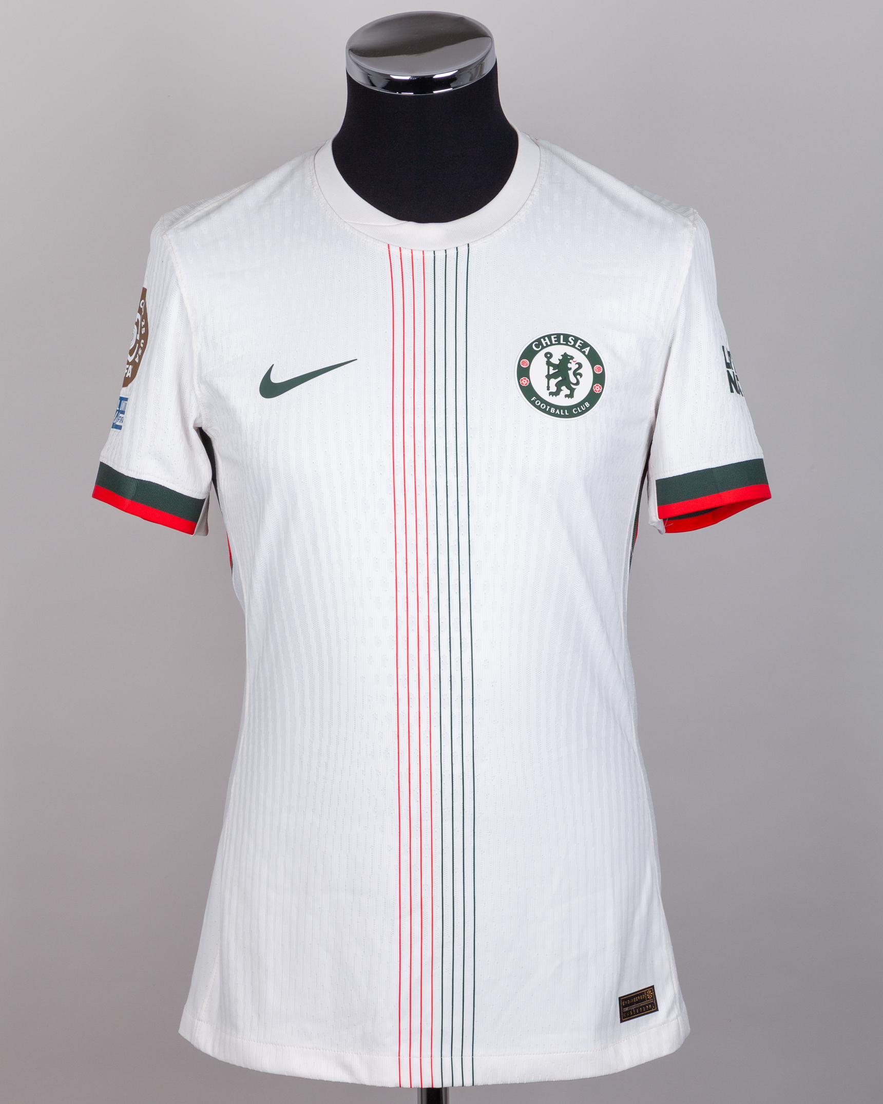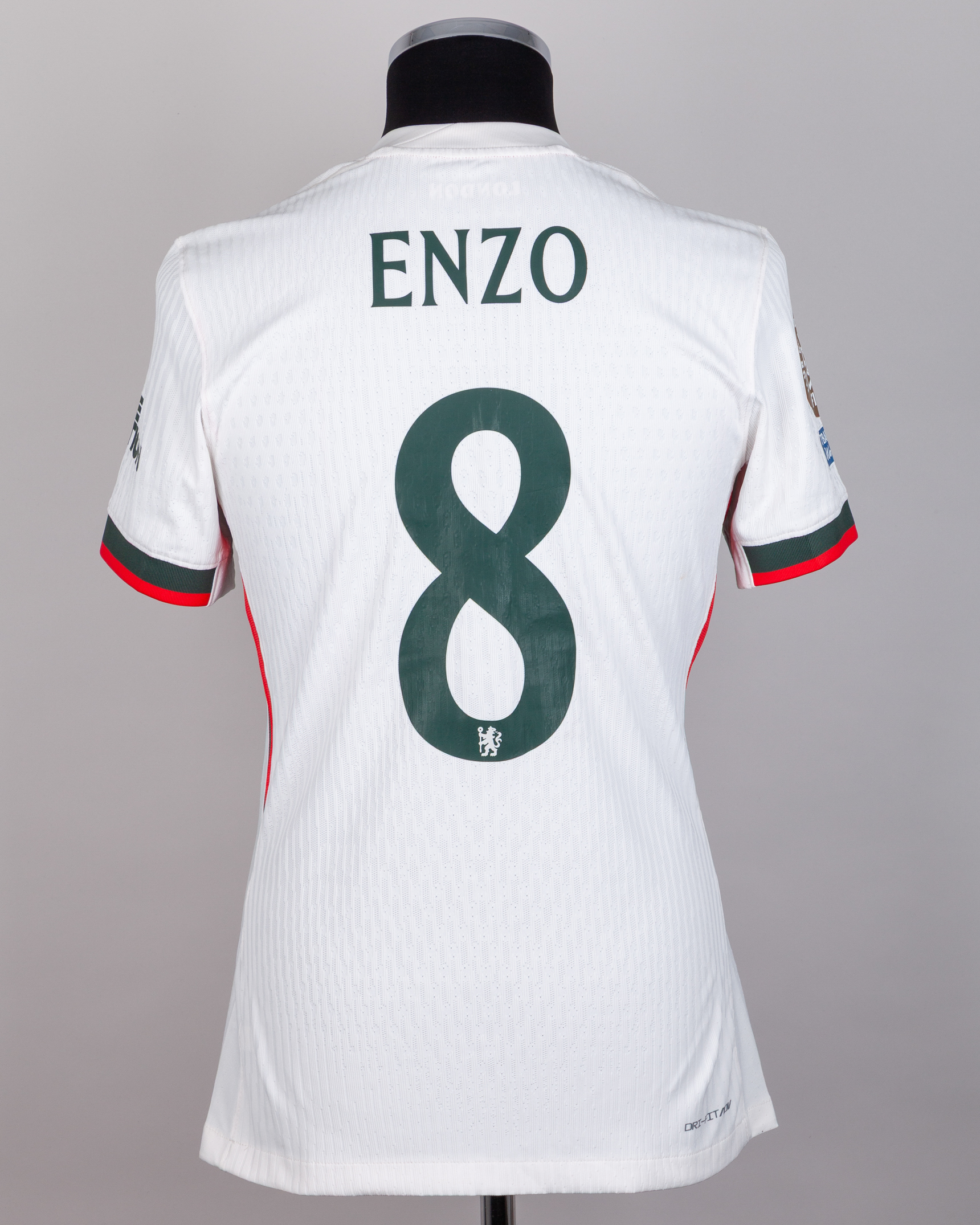 Enzo Fernandez No.8 Chelsea short-sleeved shirt, Nike, M, with crew-neck collar and printed badge, the reverse lettered ENZO, the right sleeve FIFA Club World Cup 25 flash