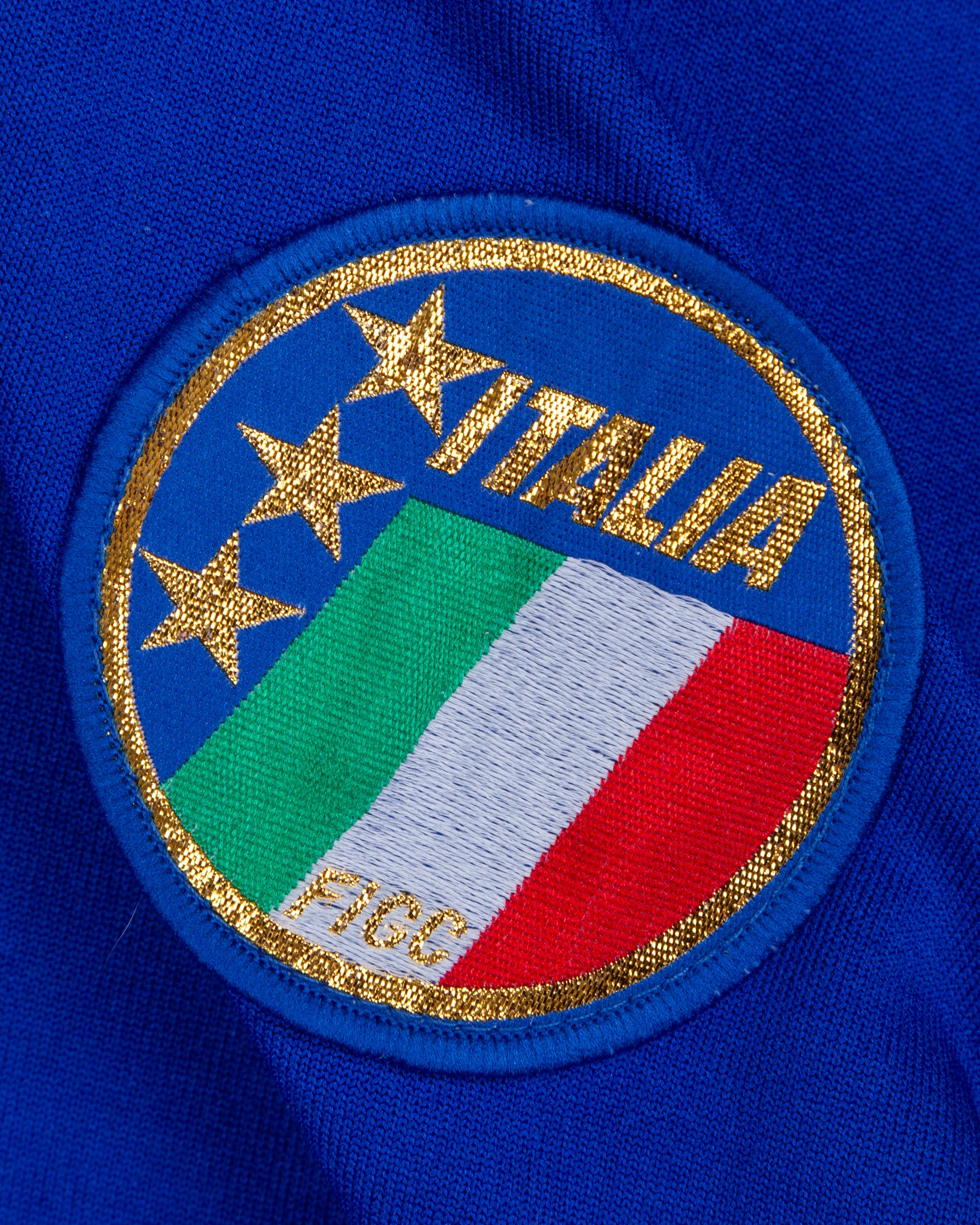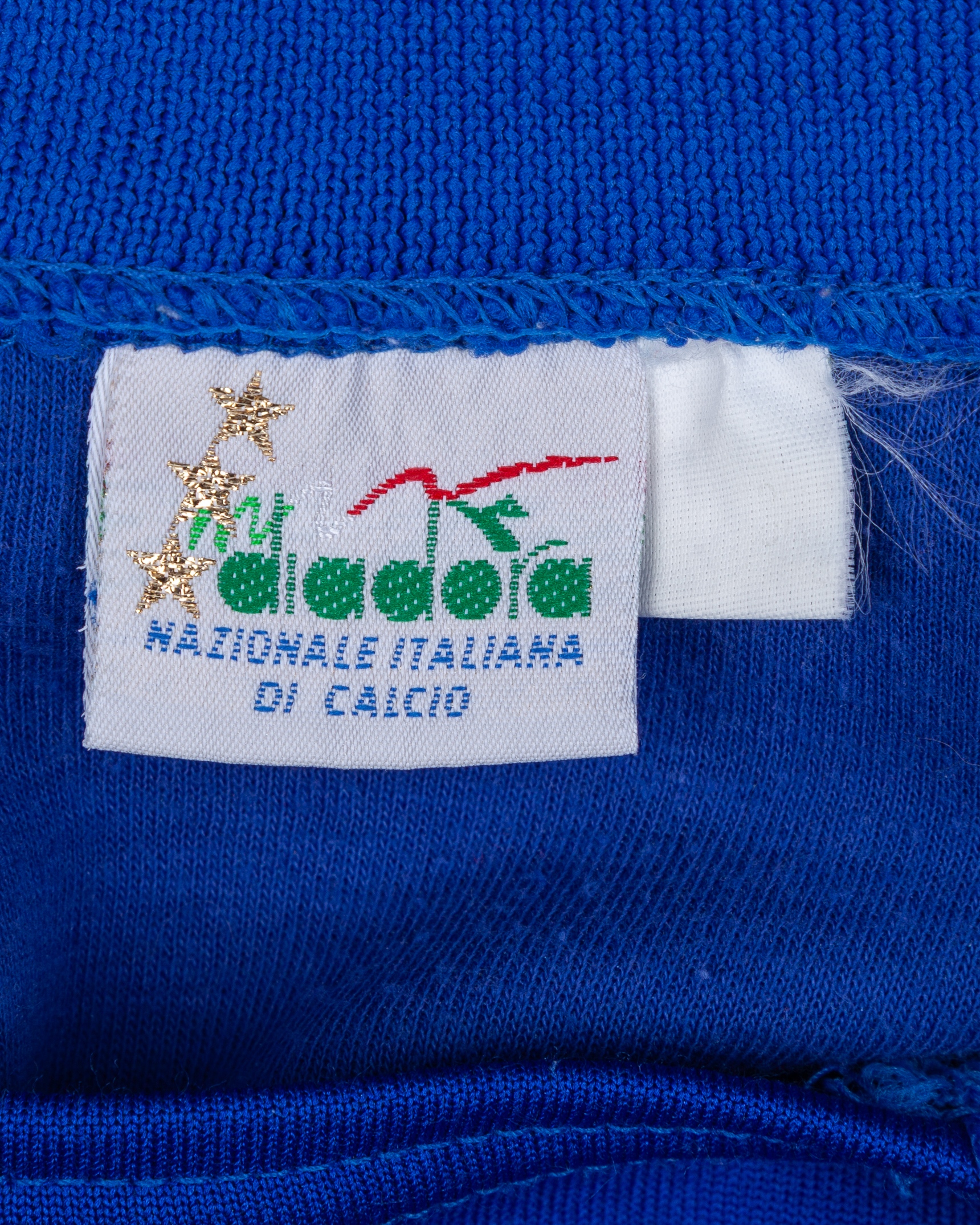 Giuseppe Giannini blue No.10 Italy v. Netherlands match worn long-sleeved shirt, 1988, Diadora, with crew-neck collar and embroidered cloth badge inscribed ITALIA FICC