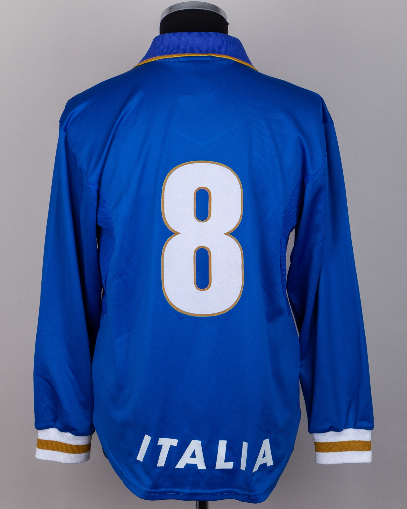 Antonio Conte blue No.8 Italy v. Georgia match worn long-sleeved shirt, 1996