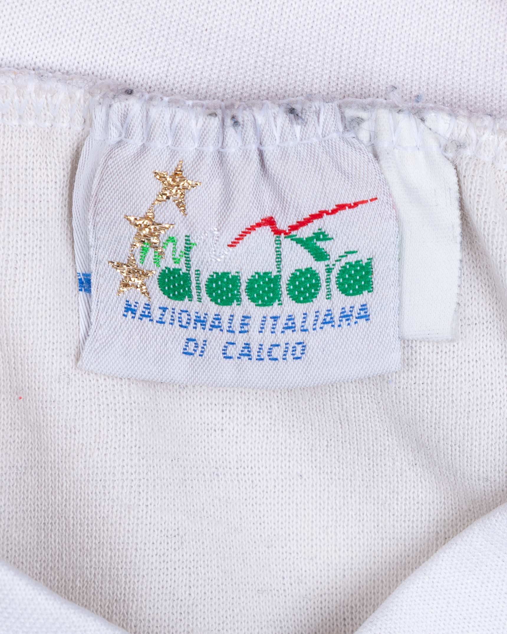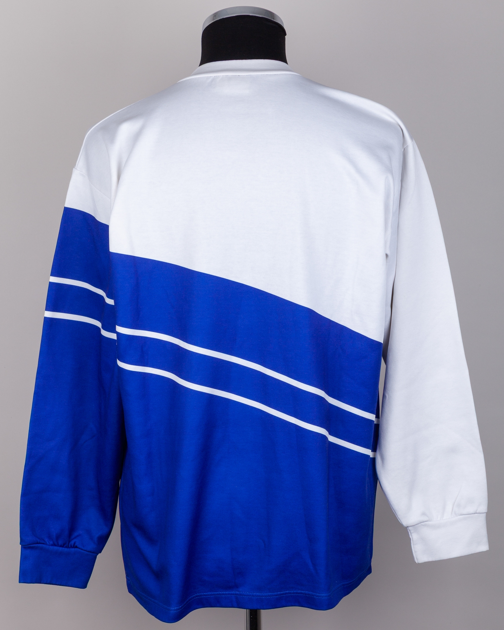 Roberto Baggio blue and white Italy worn long-sleeved training shirt, 1990, Diadora, with v-neck collar, worn during the 1990 FIFA World Cup