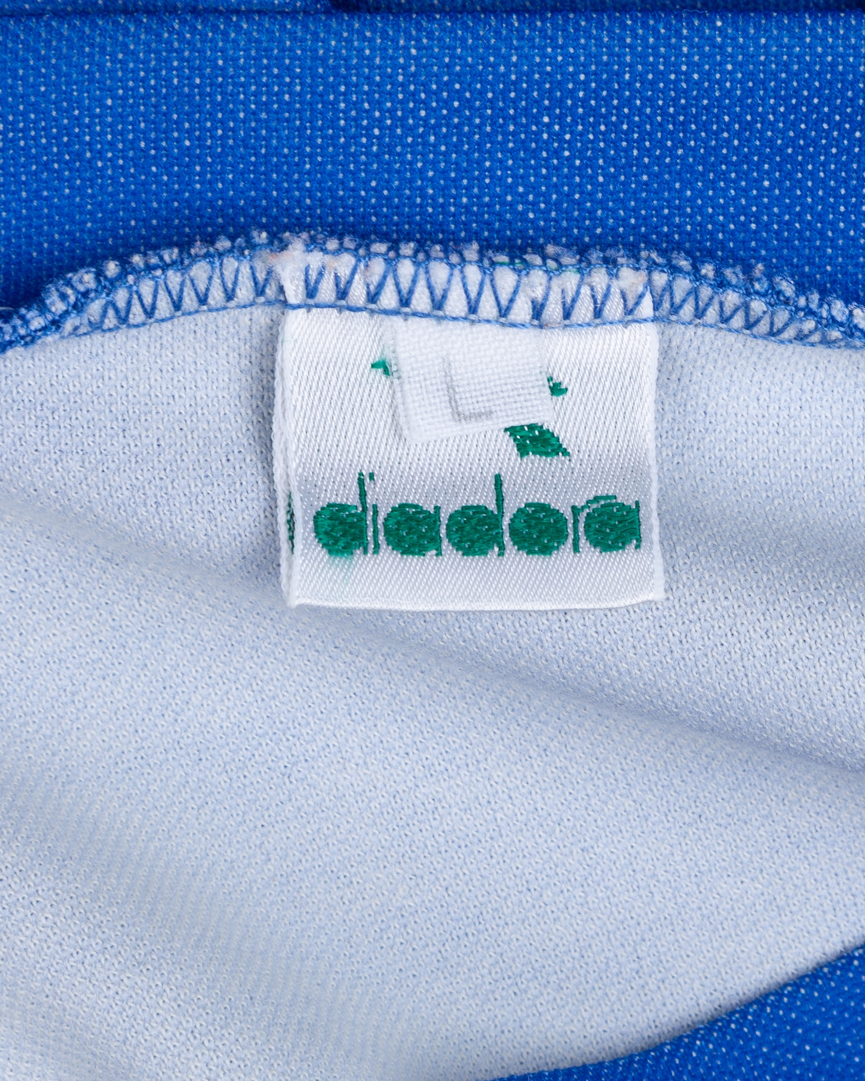 Giuseppe Bergomi blue Italy worn short-sleeved training shirt, 1987, Diadora, L, with v-neck collar