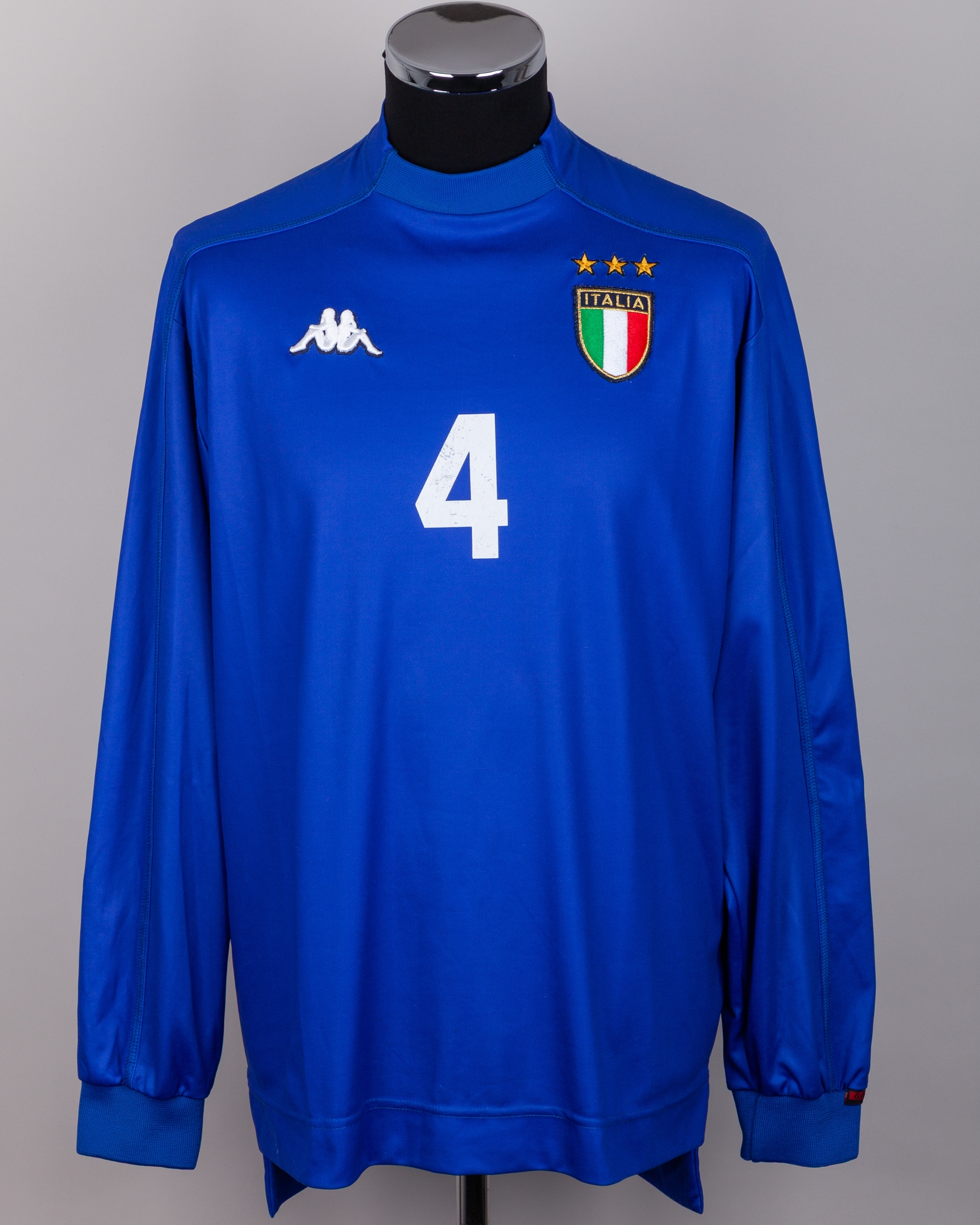 Demetrio Albertini blue No.4 Italy v. Belgium match worn long-sleeved shirt, 1999