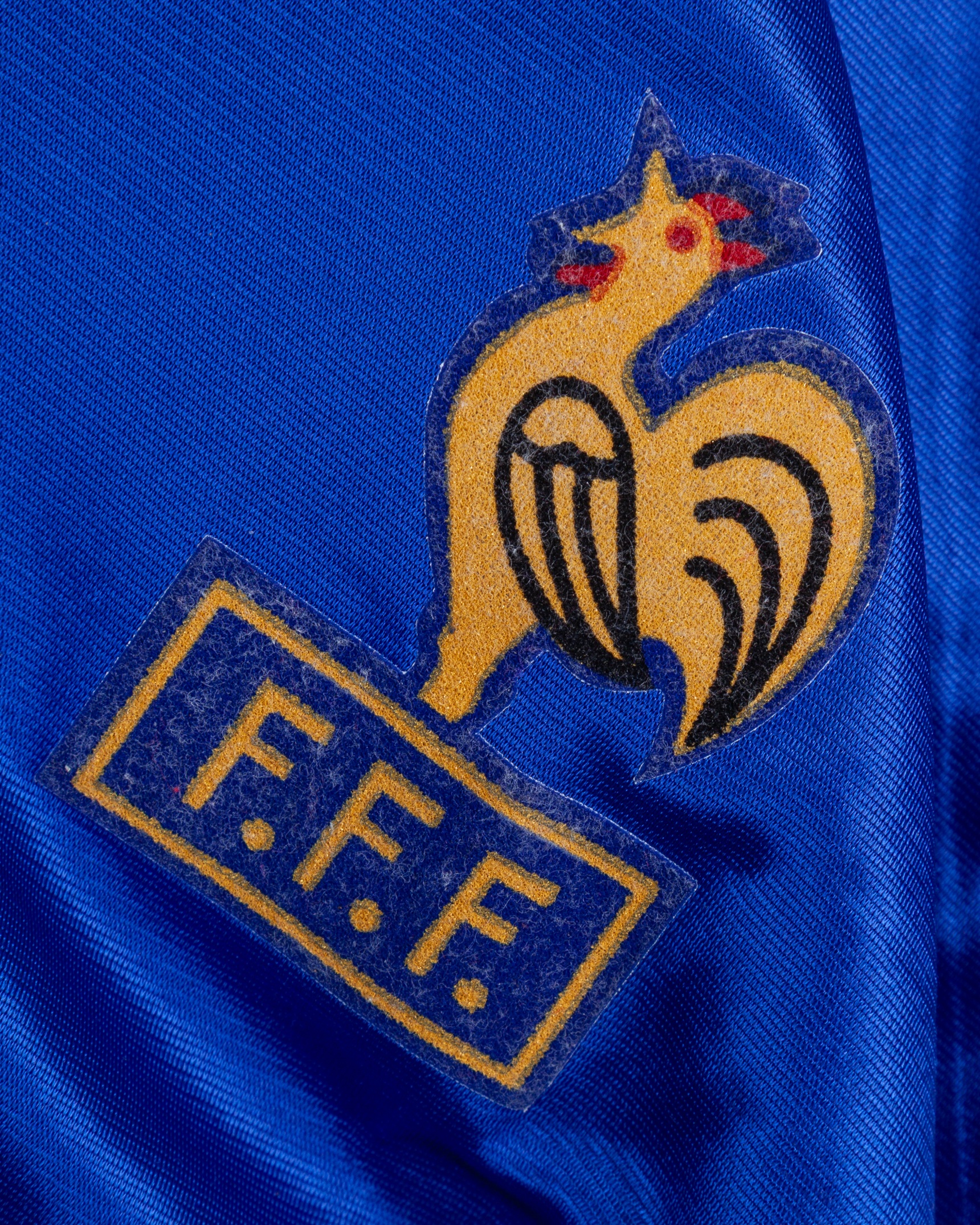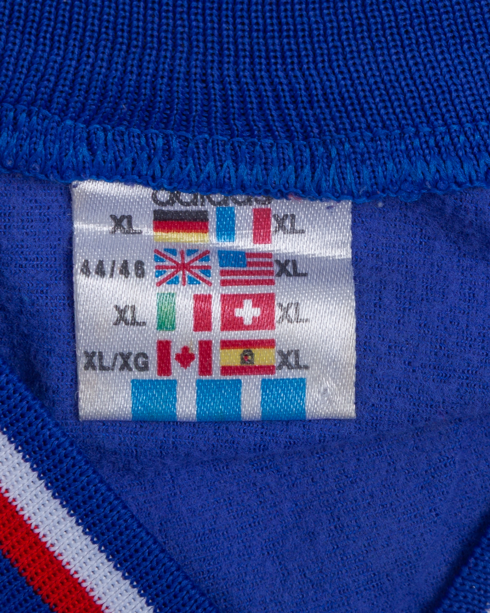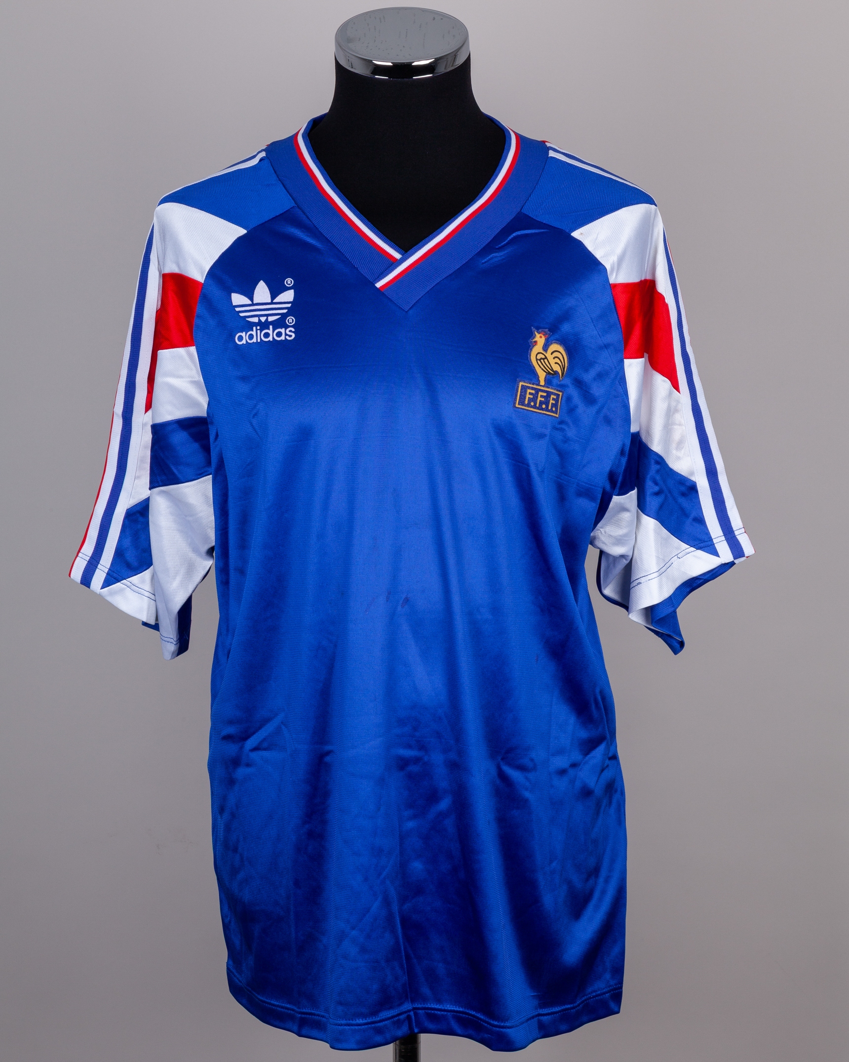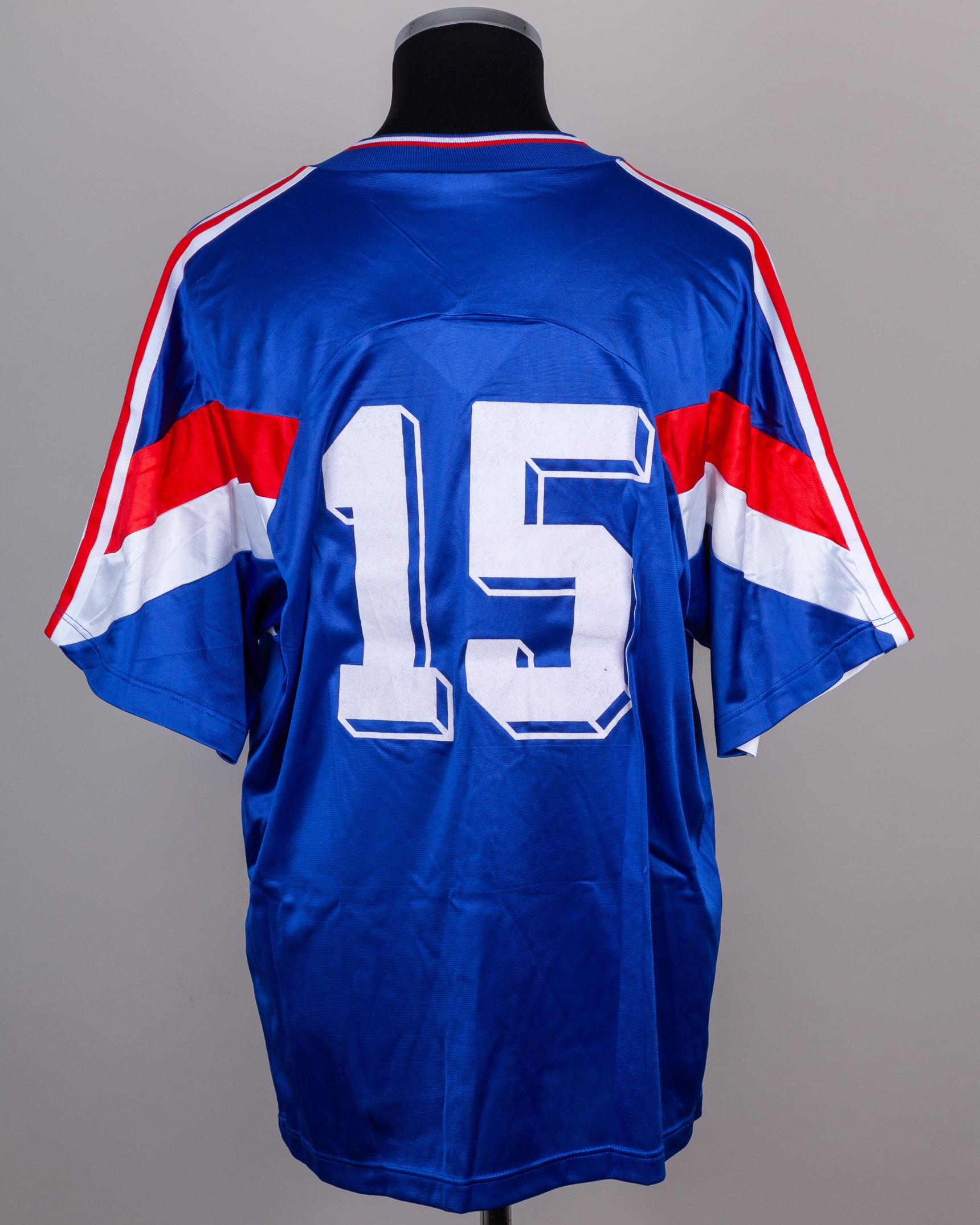 Blue, white and red No.15 France short-sleeved shirt, 1993-94, XL, with v-neck collar and felt badge