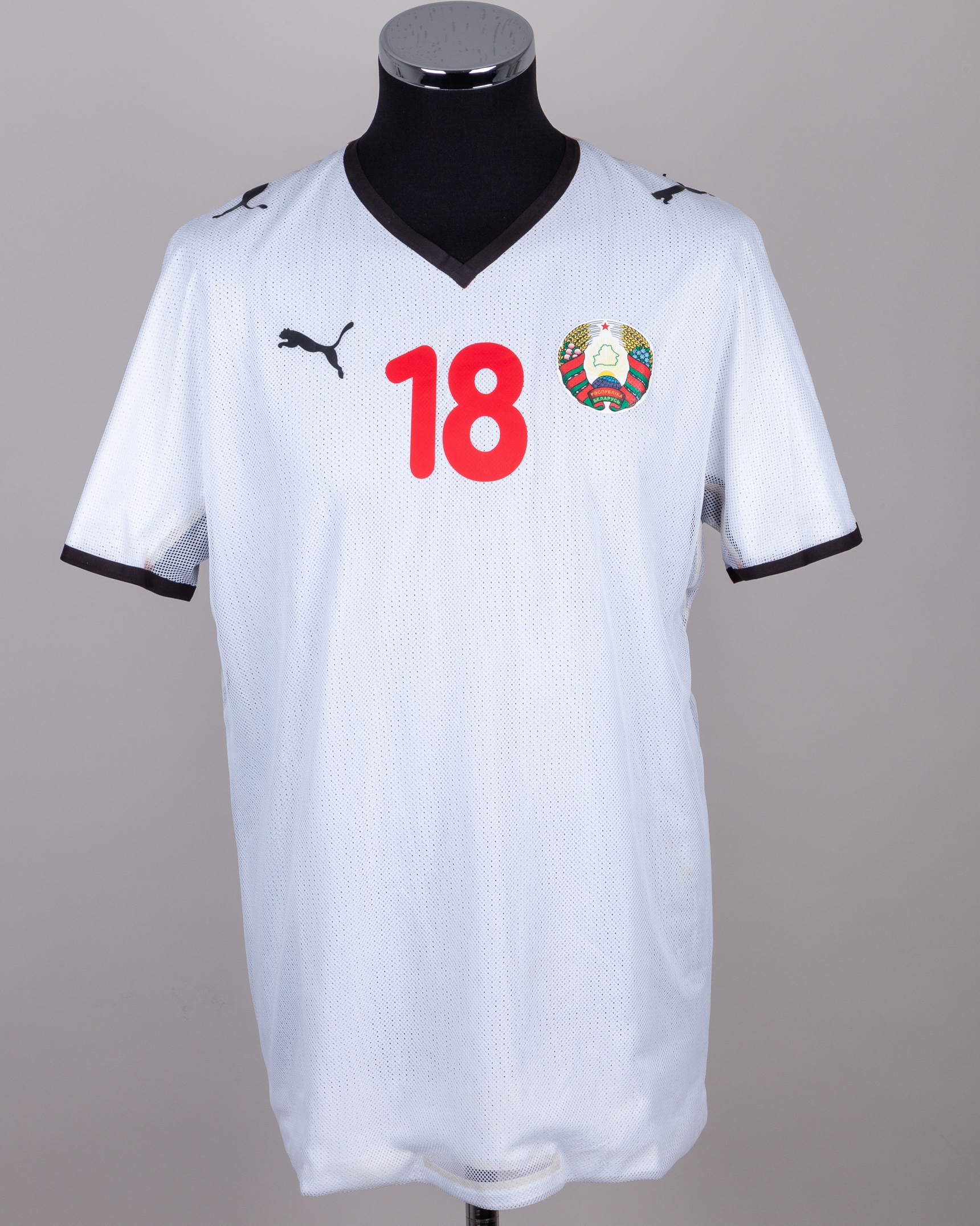 Milan Duric white and black No.18 Bosnia v. Japan short-sleeved shirt, 2016, Puma, XL, with v-neck collar and printed badge