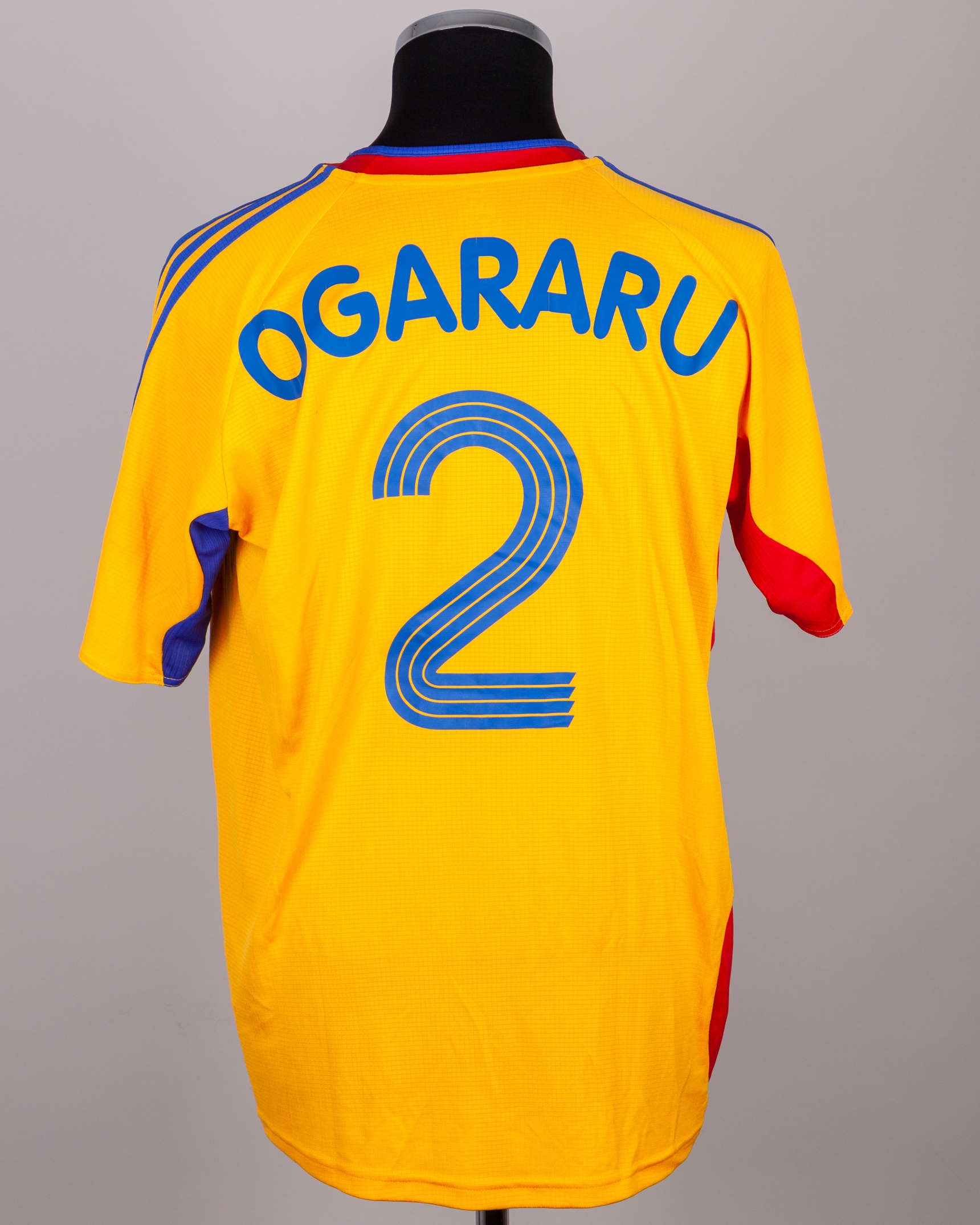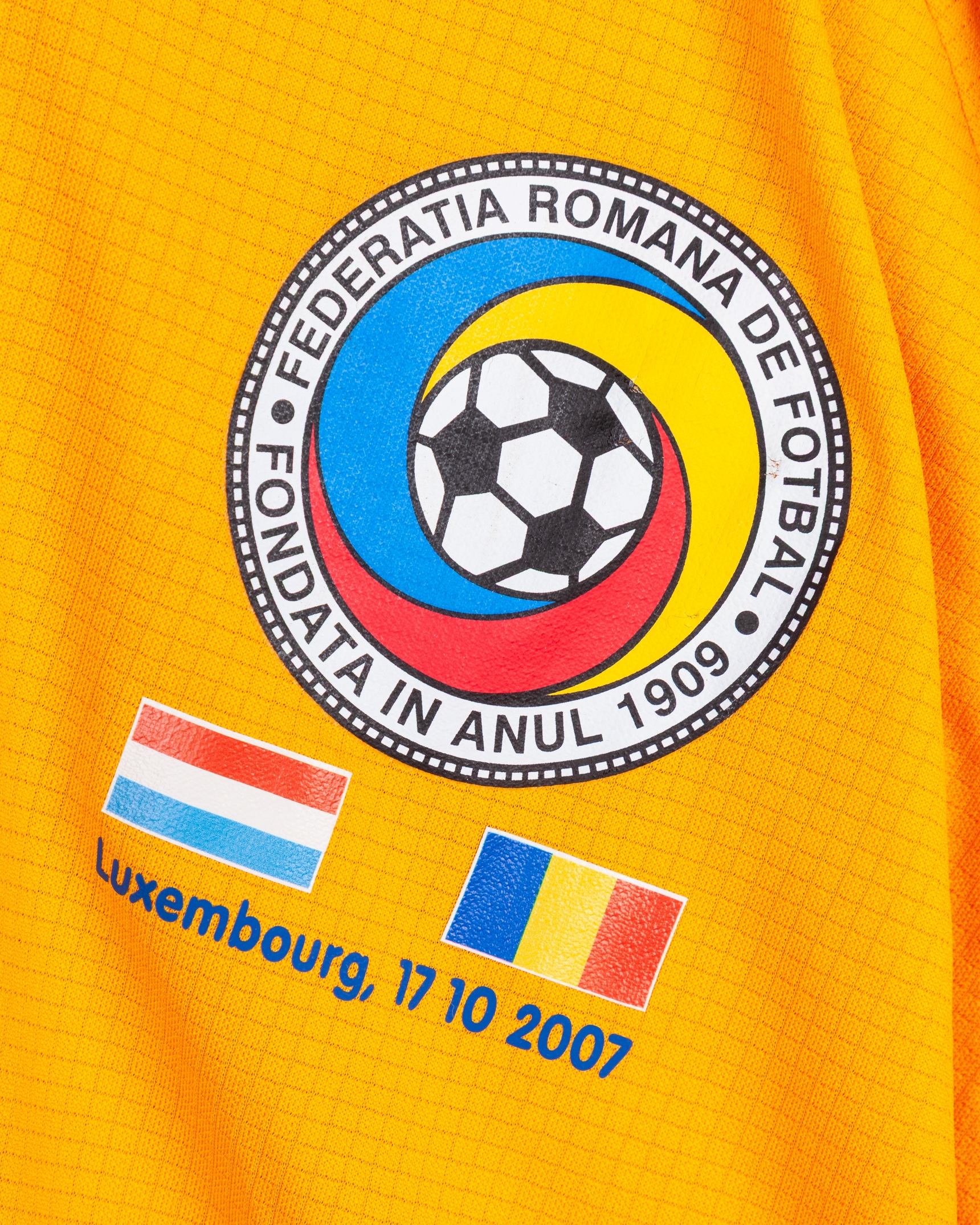 George Ogararu orange and red No.2 Romania v. Luxembourg short-sleeved shirt, 2007