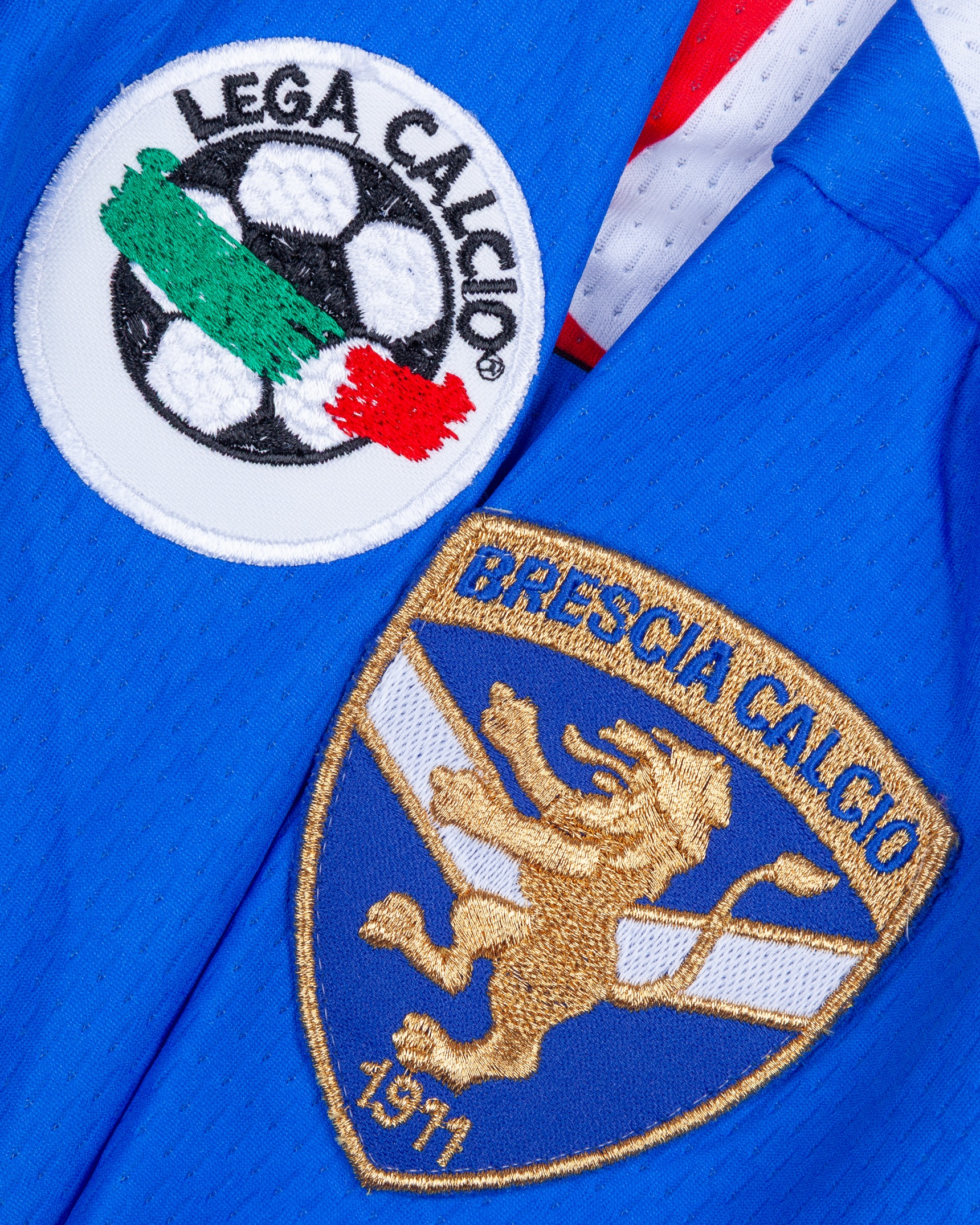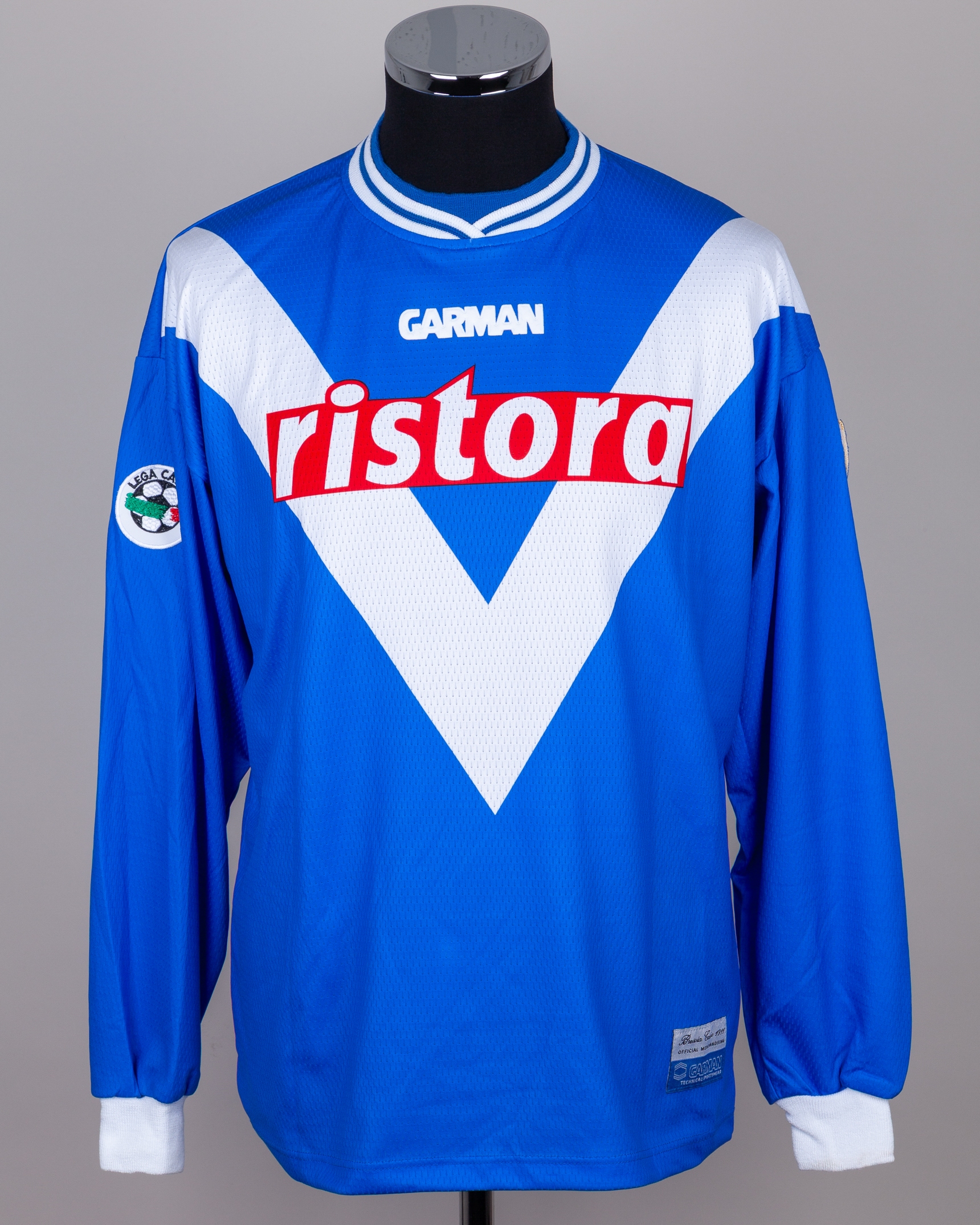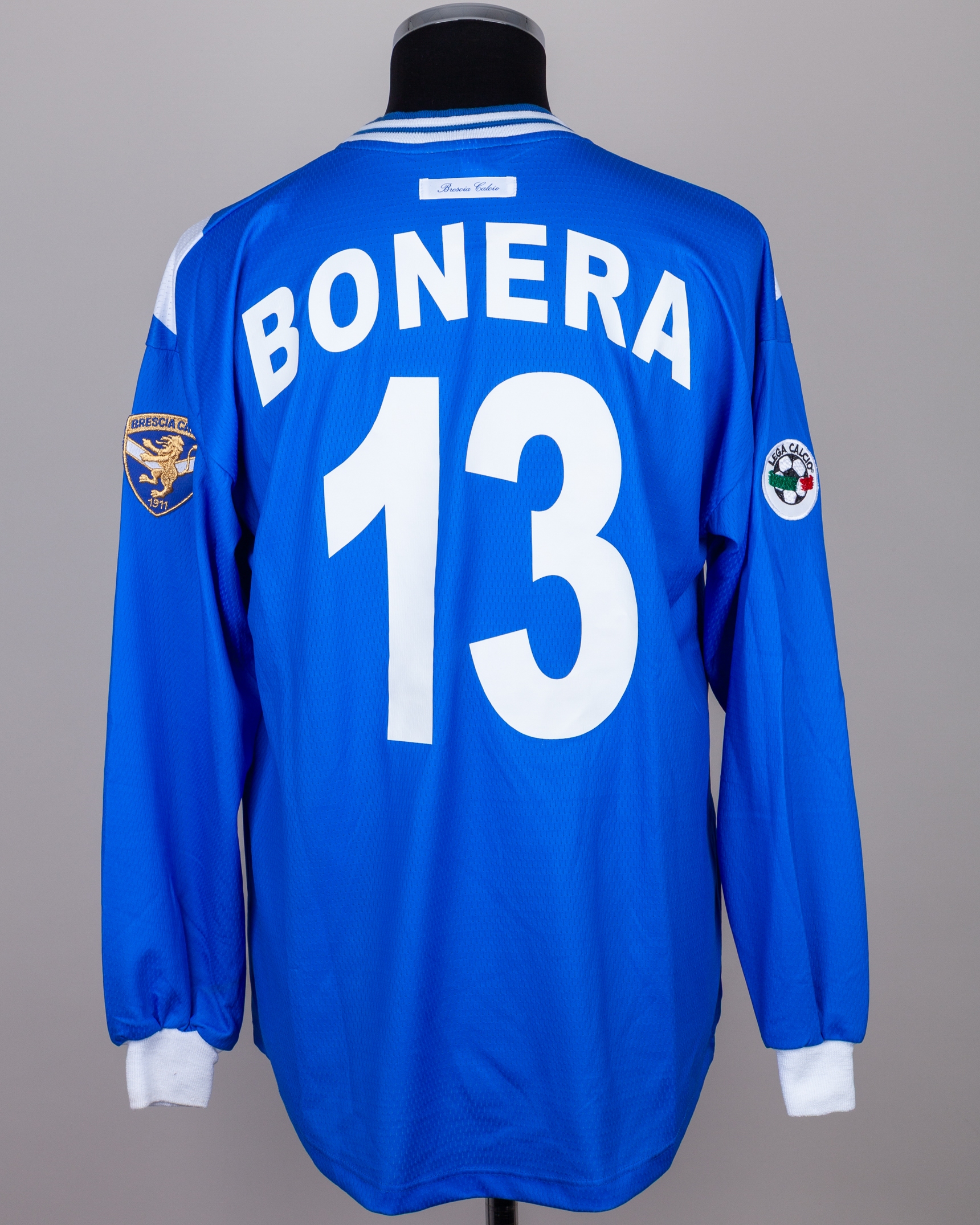 Daniel Bonera blue and white No.13 Bresia long-sleeved shirt, 1999-2000, Garman, XL, with crew-neck collar and embroidered cloth badge on left sleeve, the reverse lettered BONERA, the right sleeve with LEGA CALCIO flash