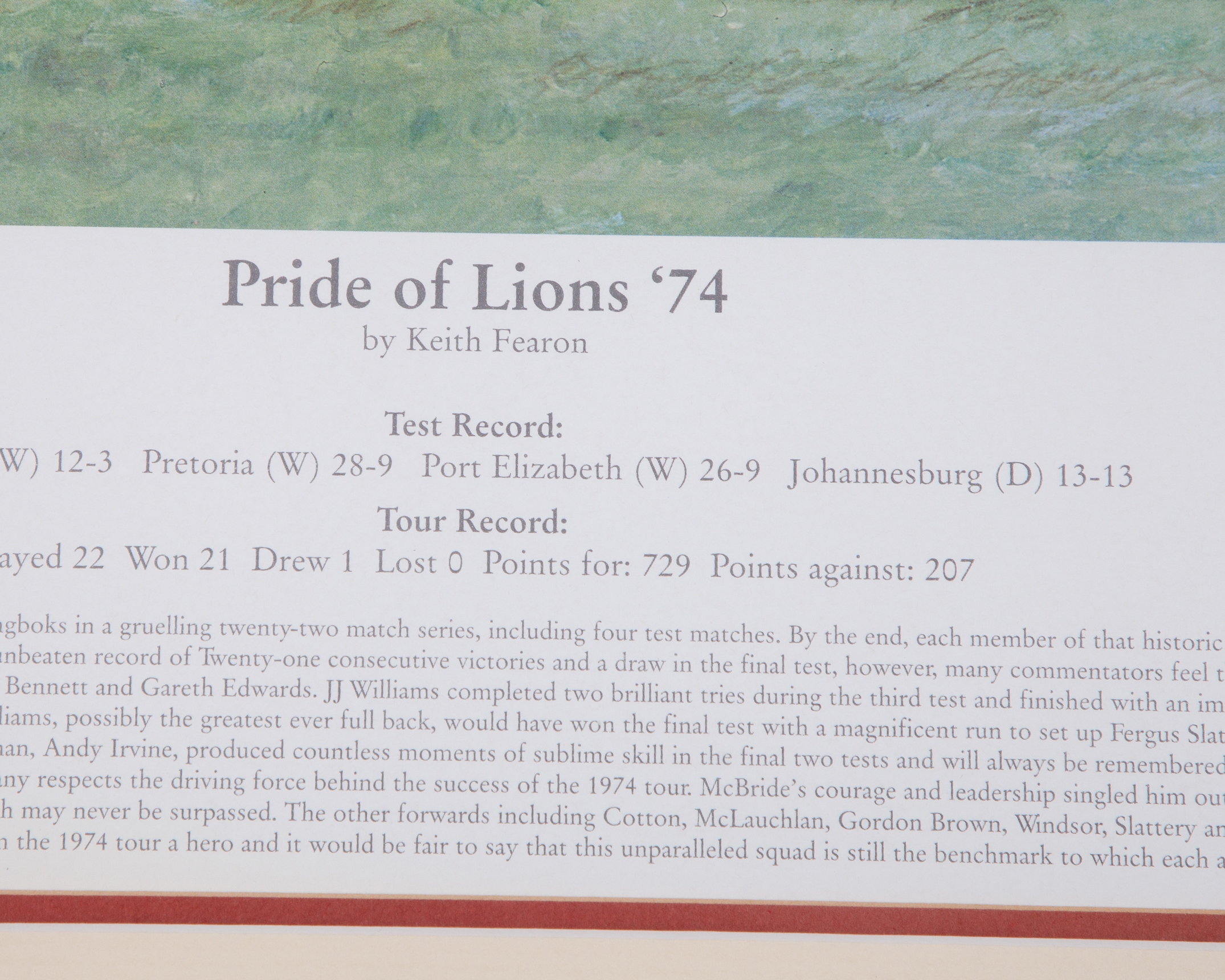 Pride of Lions '74 by Keith Fearon autographed limited edition print