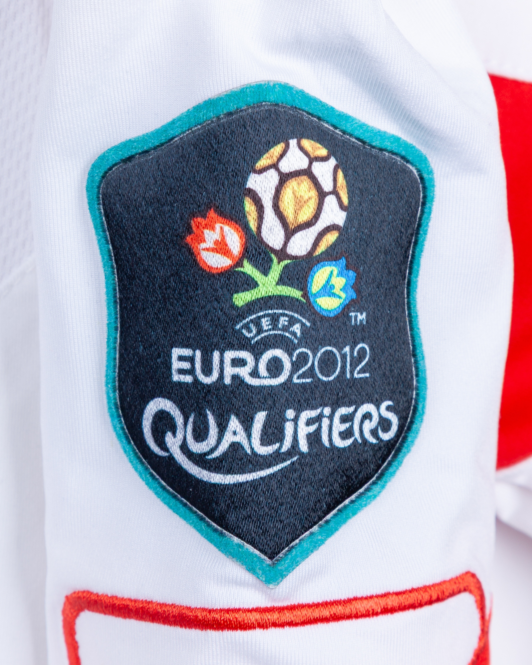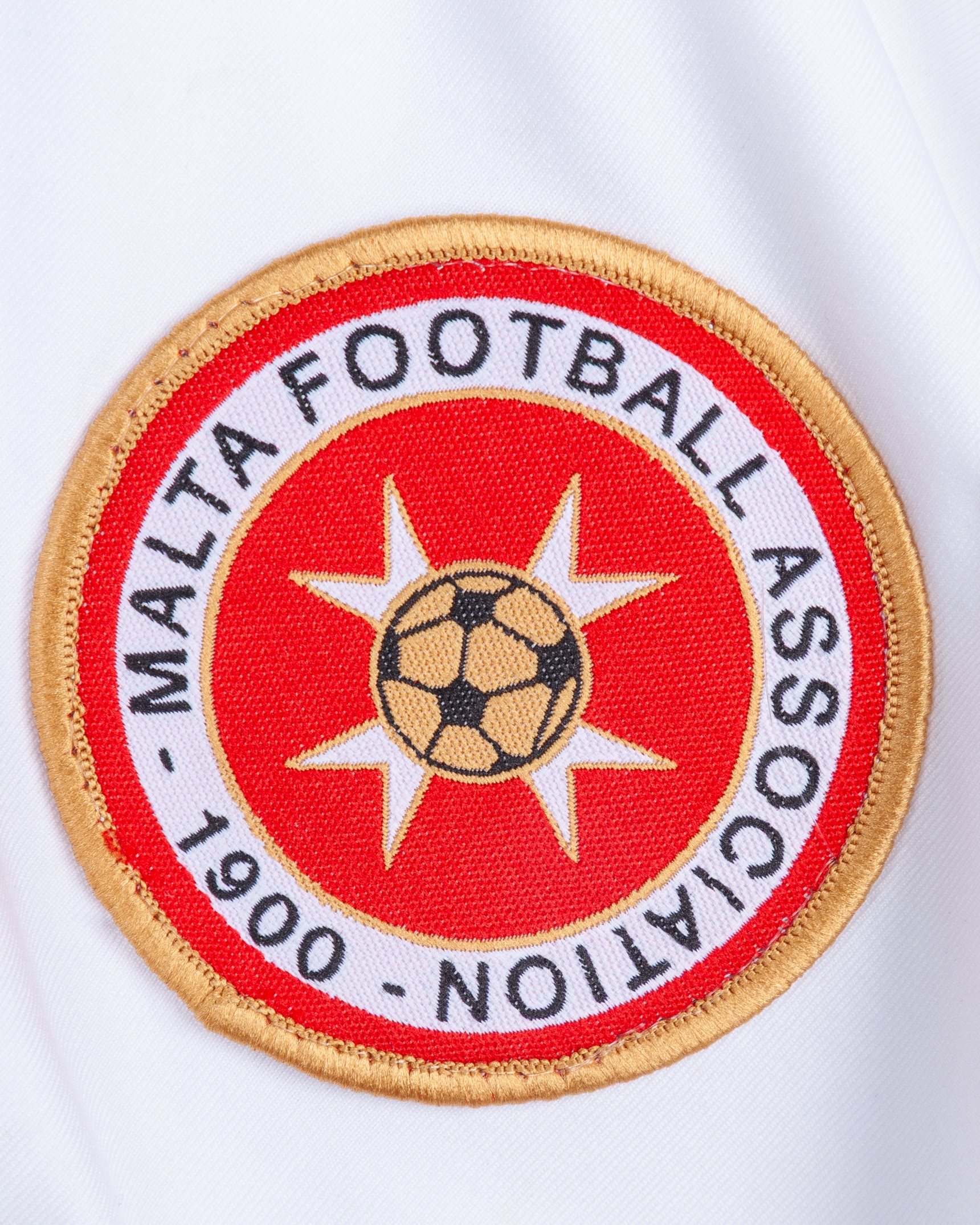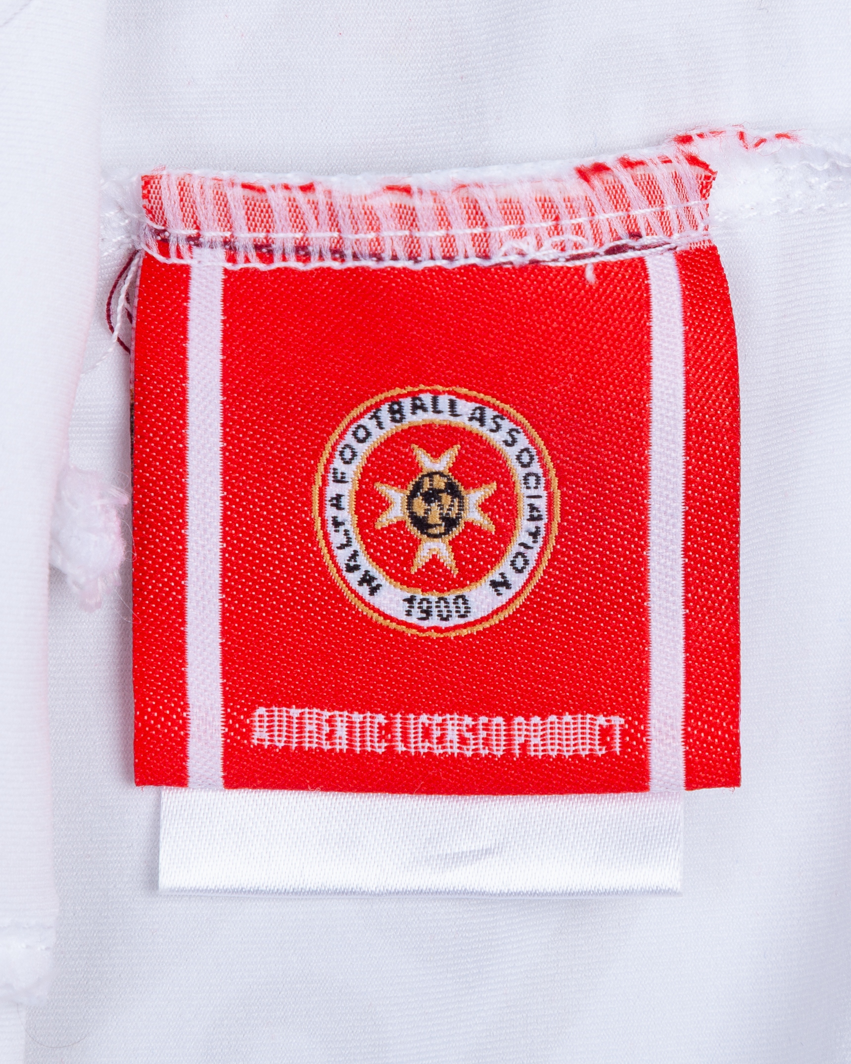 Paul Fenech white and red No.16 Malta v. Croatia short-sleeved shirt, 2010, Givova, L, with crew-neck collar and embroidered cloth badge inscribed MALTA FOOTBALL ASSOCIATION 1900, the right sleeve with UEFA EURO 2012 Qualifiers flash, the other with UEFA Respect flash