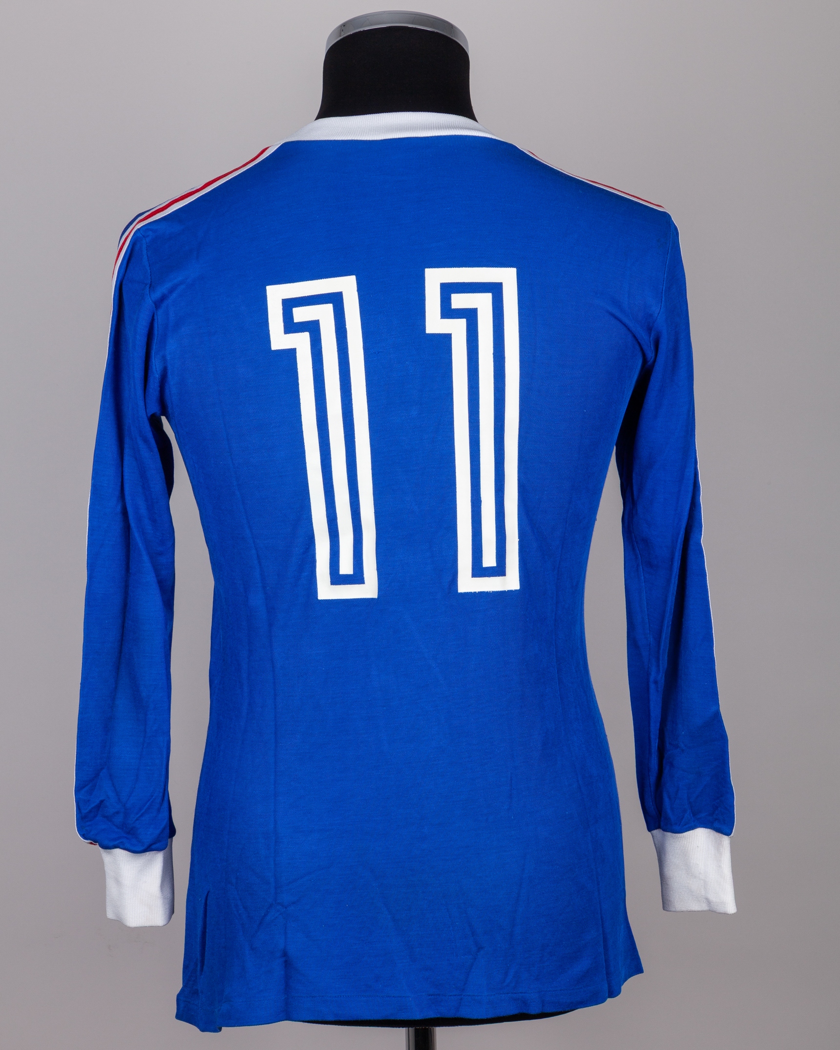 Dragan Dzajic blue and white No.11 Yugoslavia v. Northern Ireland shirt, 1975
