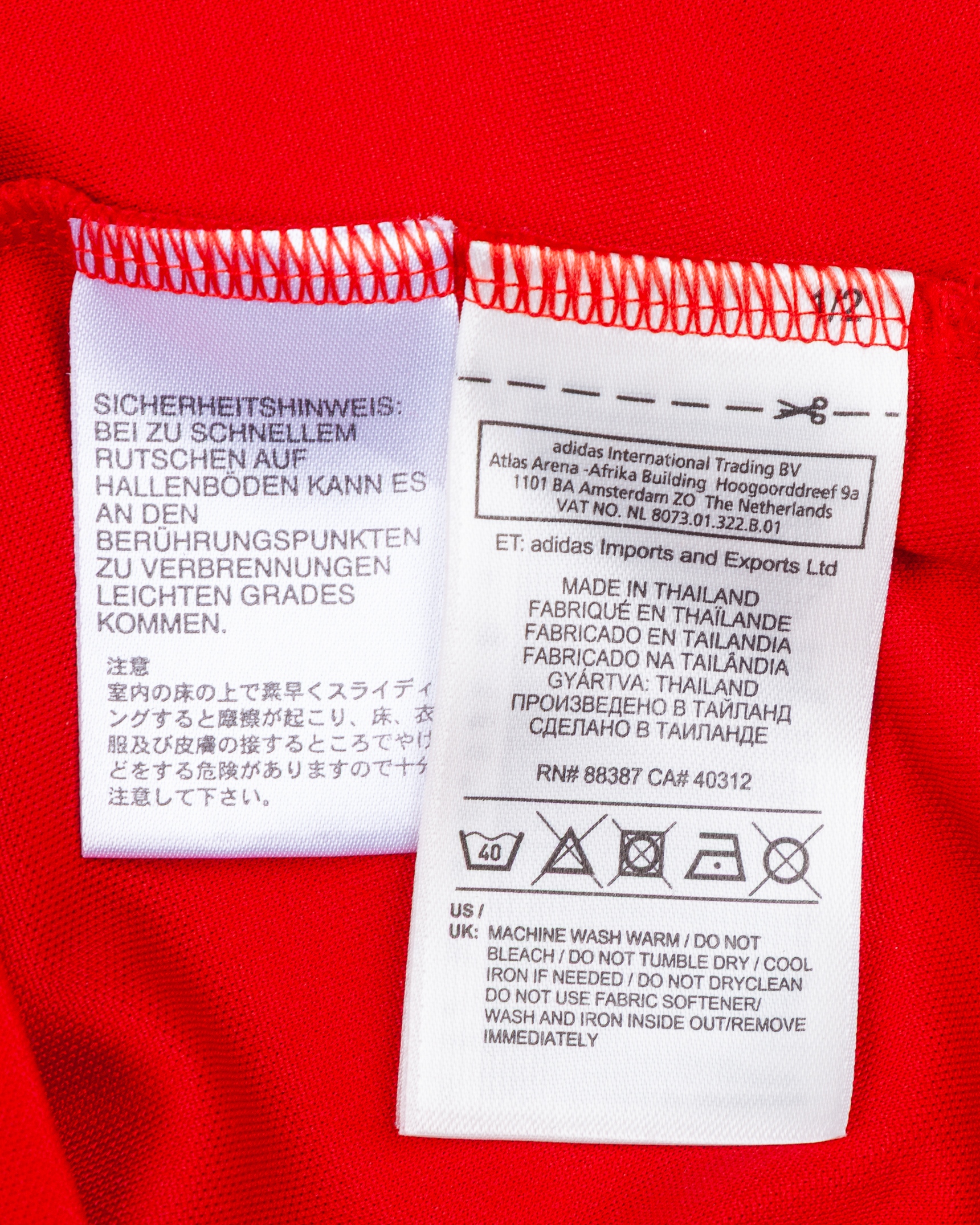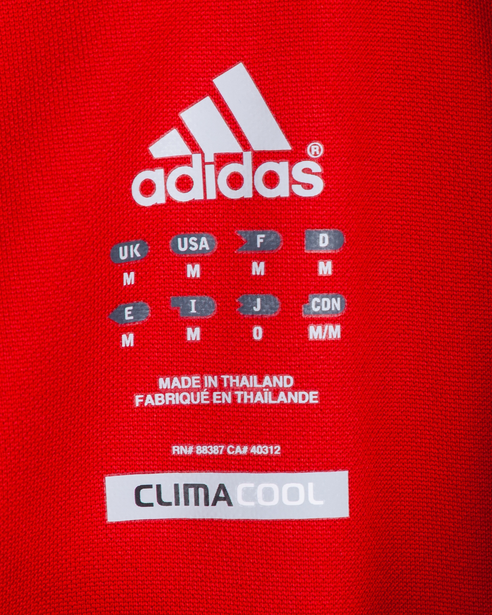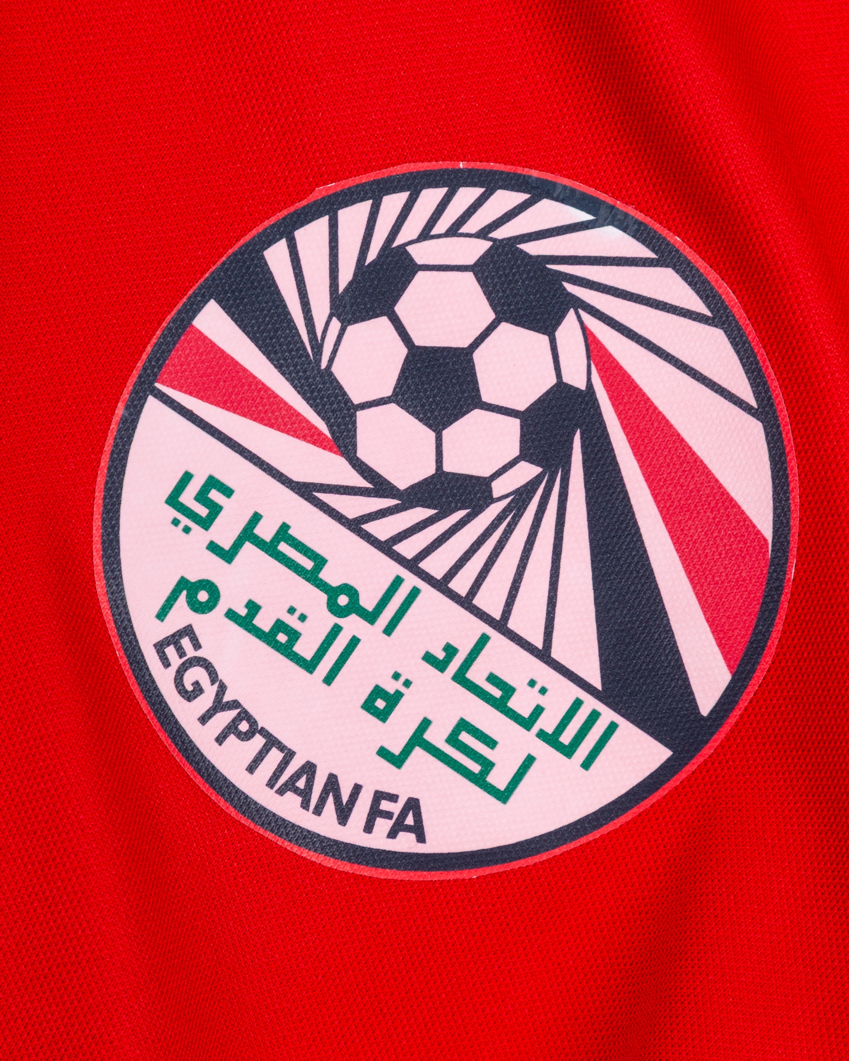 Hossam Ghaly red and white No.14 Egypt v. Bosnia long-sleeved shirt, 2014, Adidas, M, with crew-neck collar and printed badge