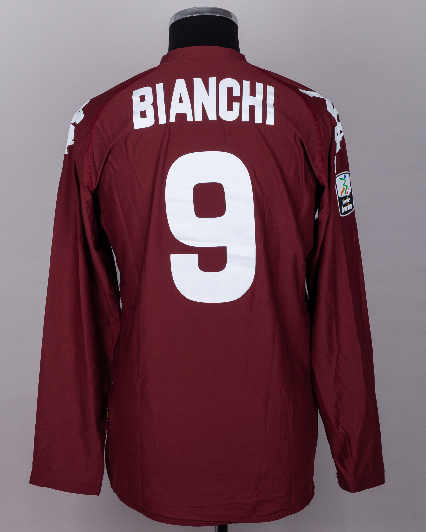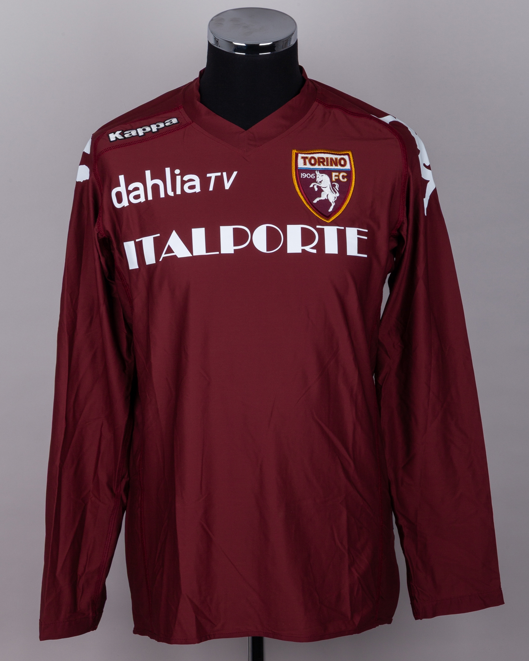 Rolando Bianchi garnet No.9 garnet Torino long-sleeved shirt, 2010-11, Kappa, with v-neck collar and embroidered cloth badge inscribed TORINO 1906 FC, the reverse lettered BIANCHI, the right sleeve with Serie flash
