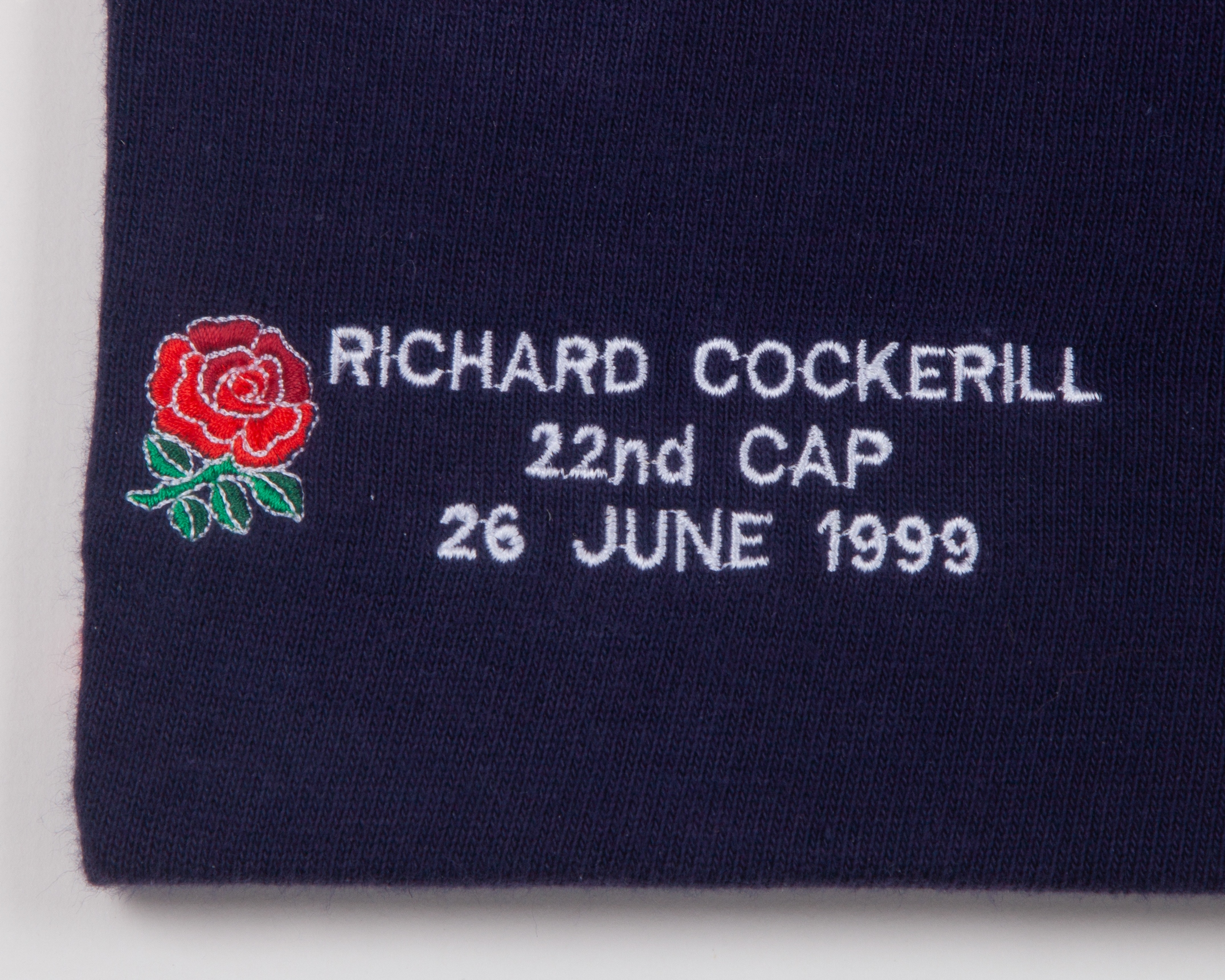 Richard Cockerill blue England v. Australia centenary match worn rugby shirt, 1999