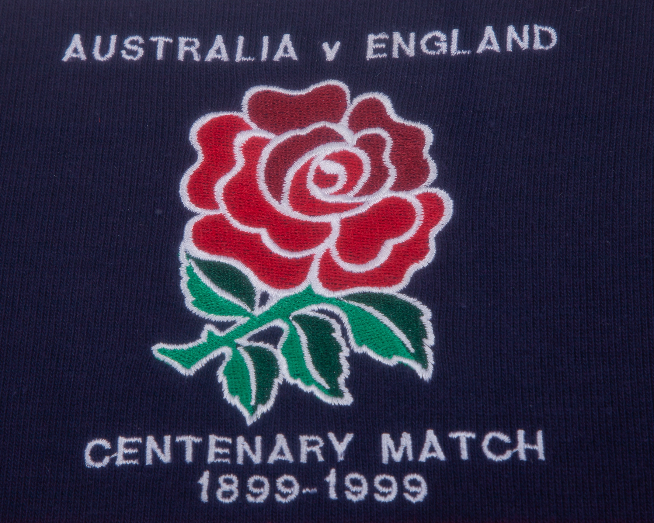 The above shirt was worn in the commemorative centenary rugby test match played on 26th June 1999 hosted in Sydney's Stadium Australia, with the teams wearing versions of blue that reflect those worn in the first encounter, Australia defeated England 22-15