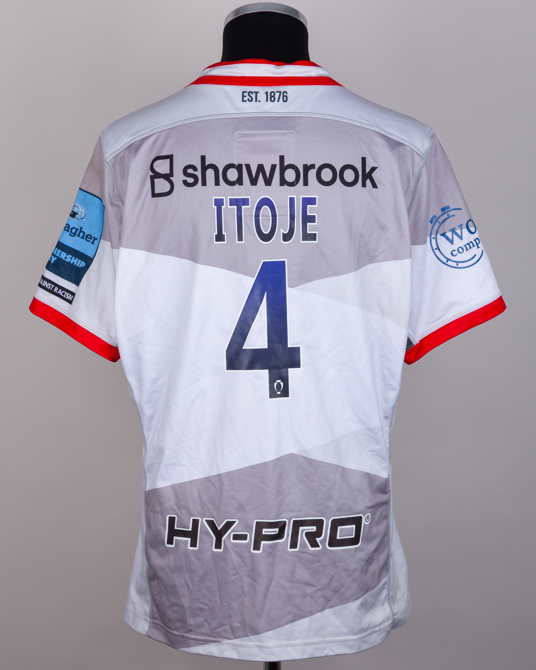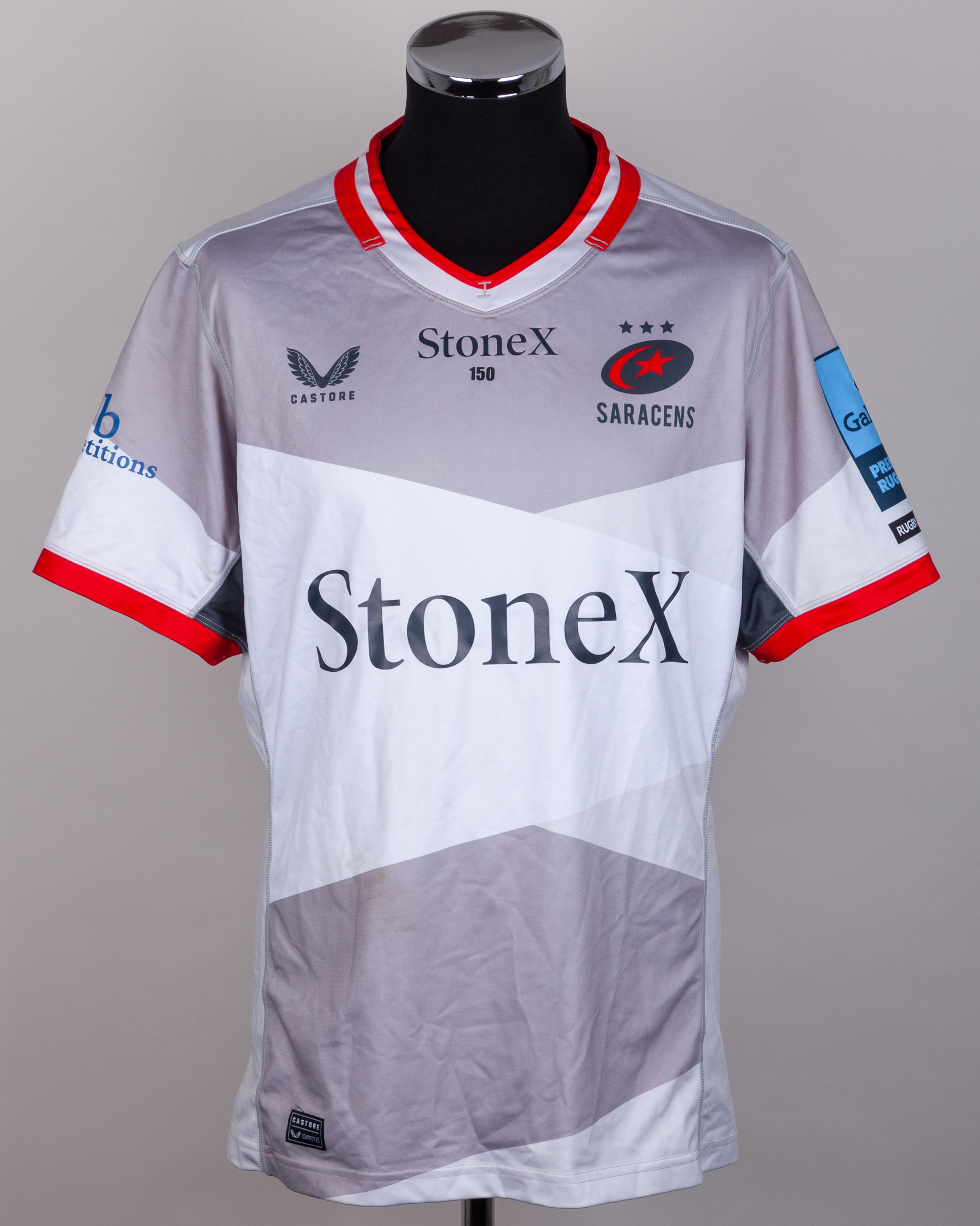 Maro Itoje grey and red No.4 Saracens short-sleeved away shirt, 2024-25