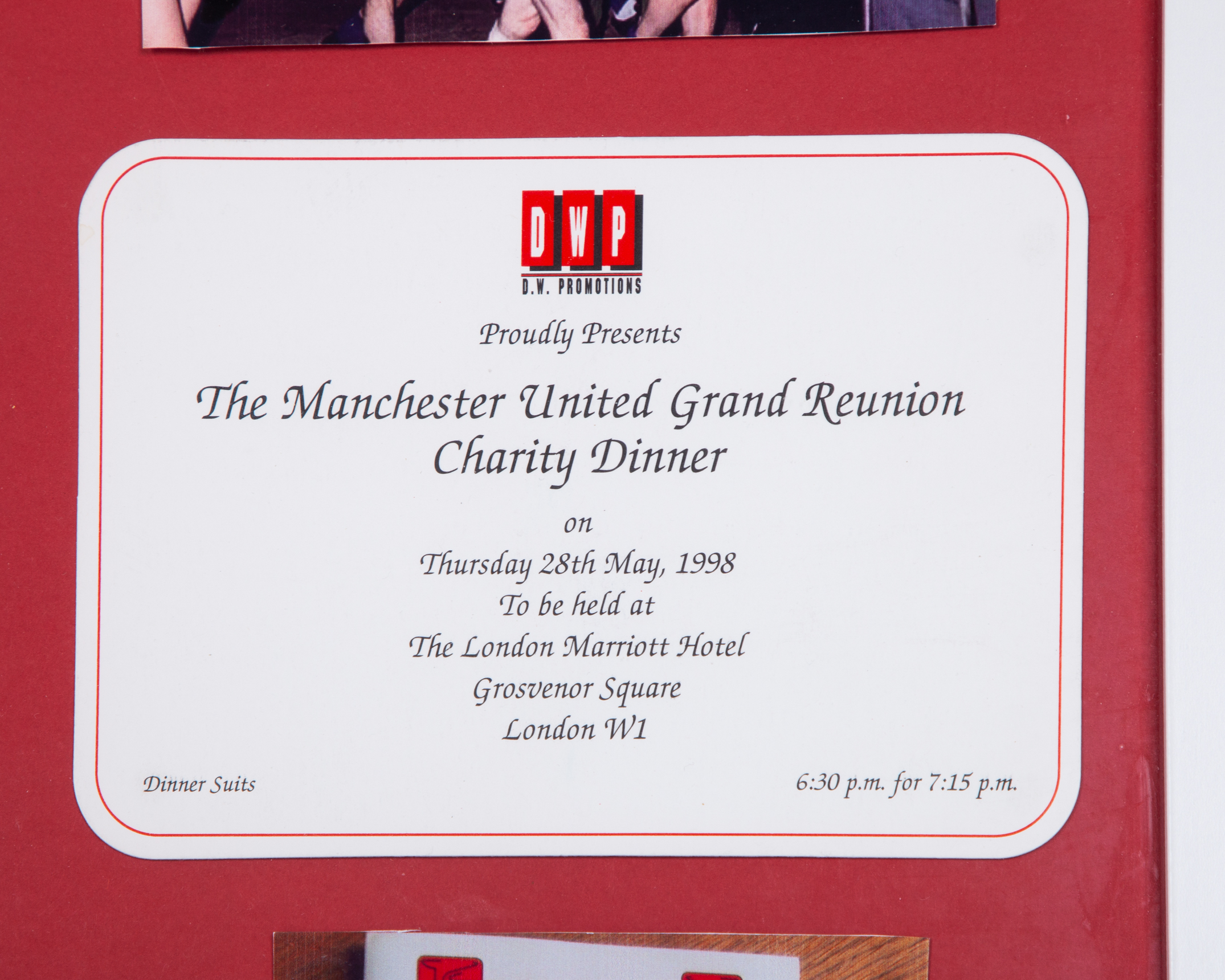 The Manchester United Grand Reunion Charity Dinner invitation and autographed programme
