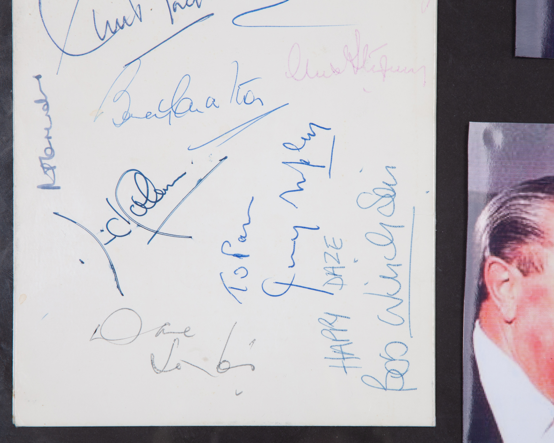 Jimmy Murphy Sportsman's Night Manchester United autographed programme display, with nine autographs including George Best and Matt Busby etc., with three cutout photographs, framed and glazed, 36 x 27cm