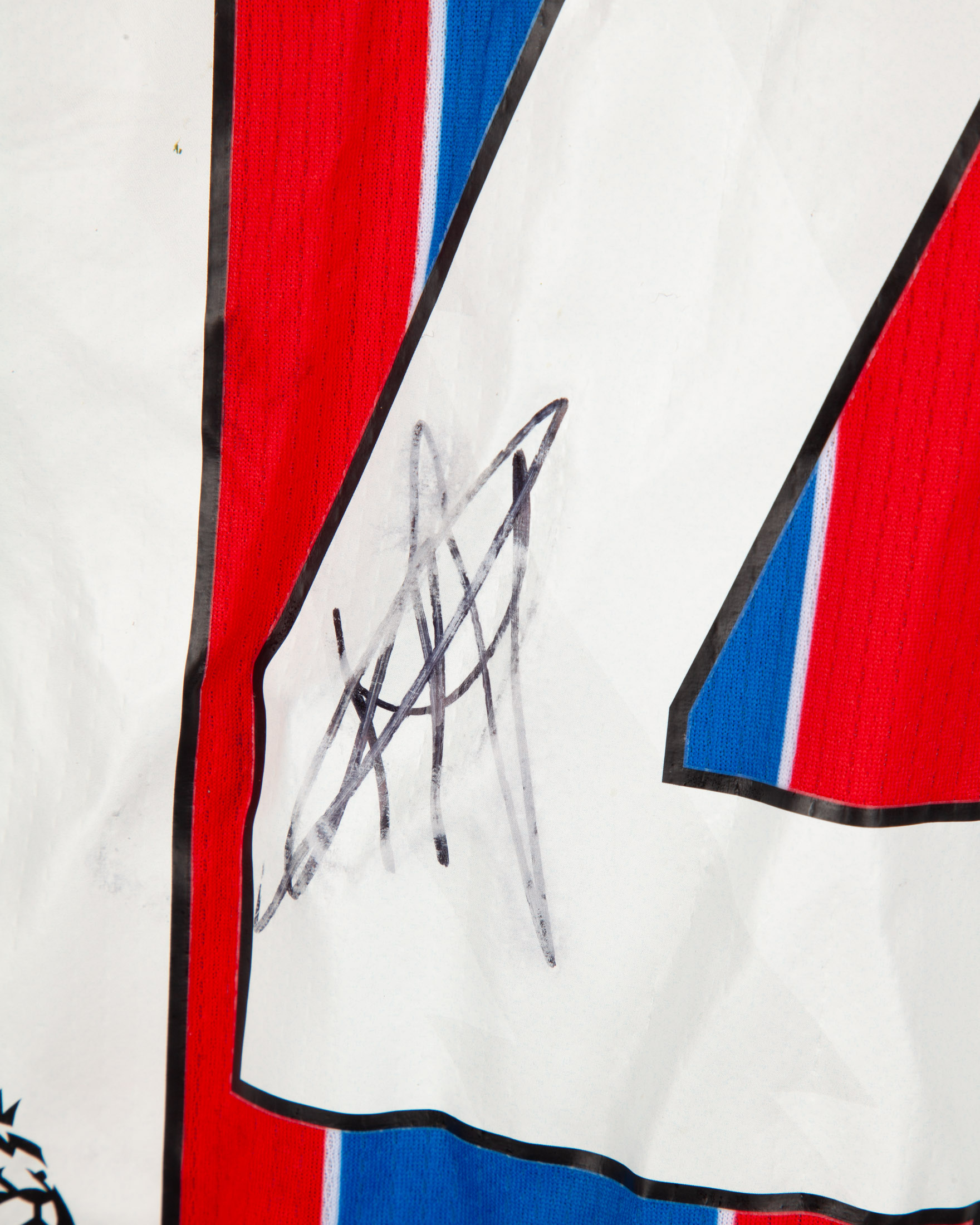 The shirt is match worn and unwashed, with slight smudge to the signature
