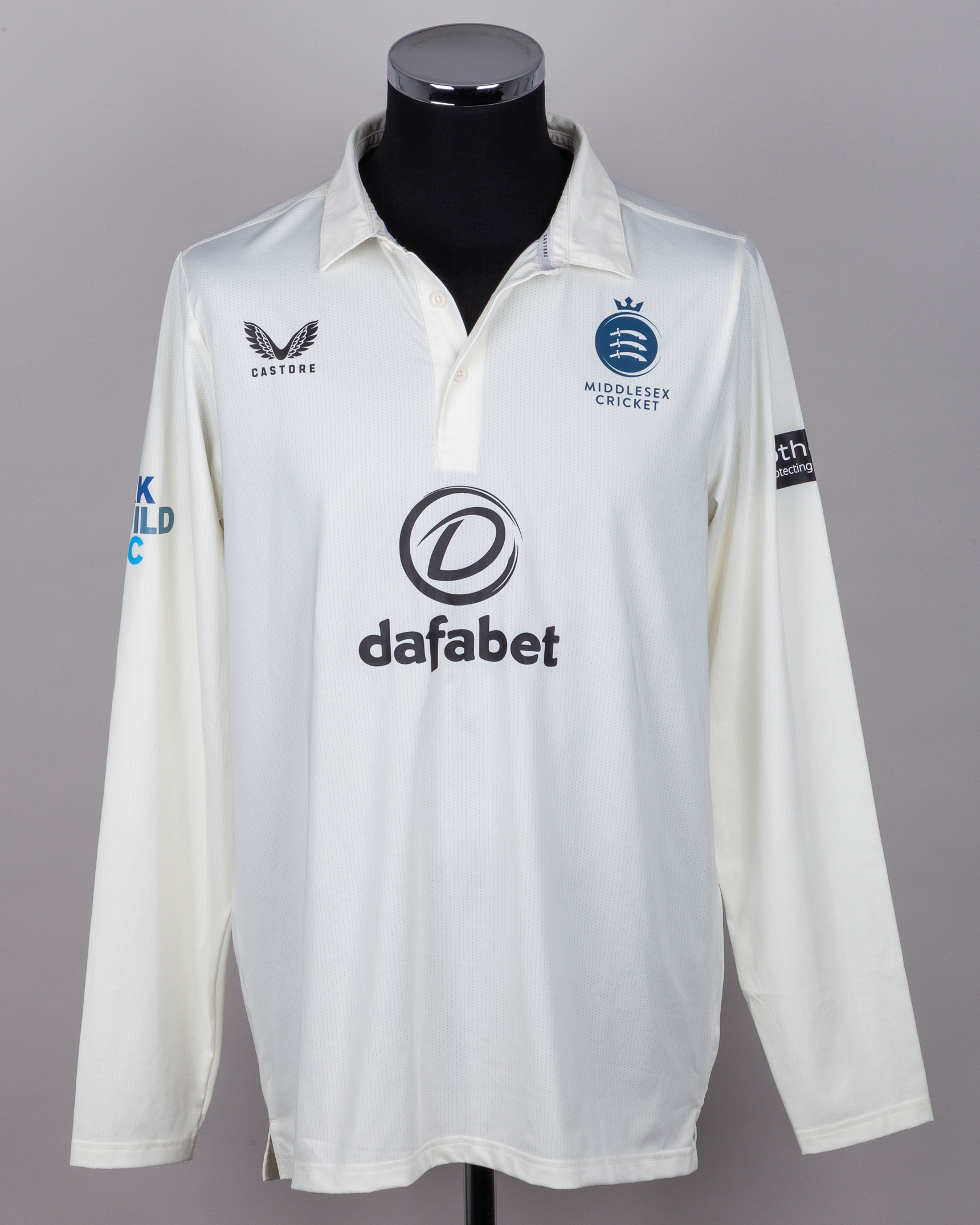 The shirt was worn for the fixture against Gloucestershire CCC at Lord's - The Home of Cricket, 24th September 2025, and was personally signed by the player. With Middlesex winning their final game of the season beating Gloucestershire by an innings and 67 runs