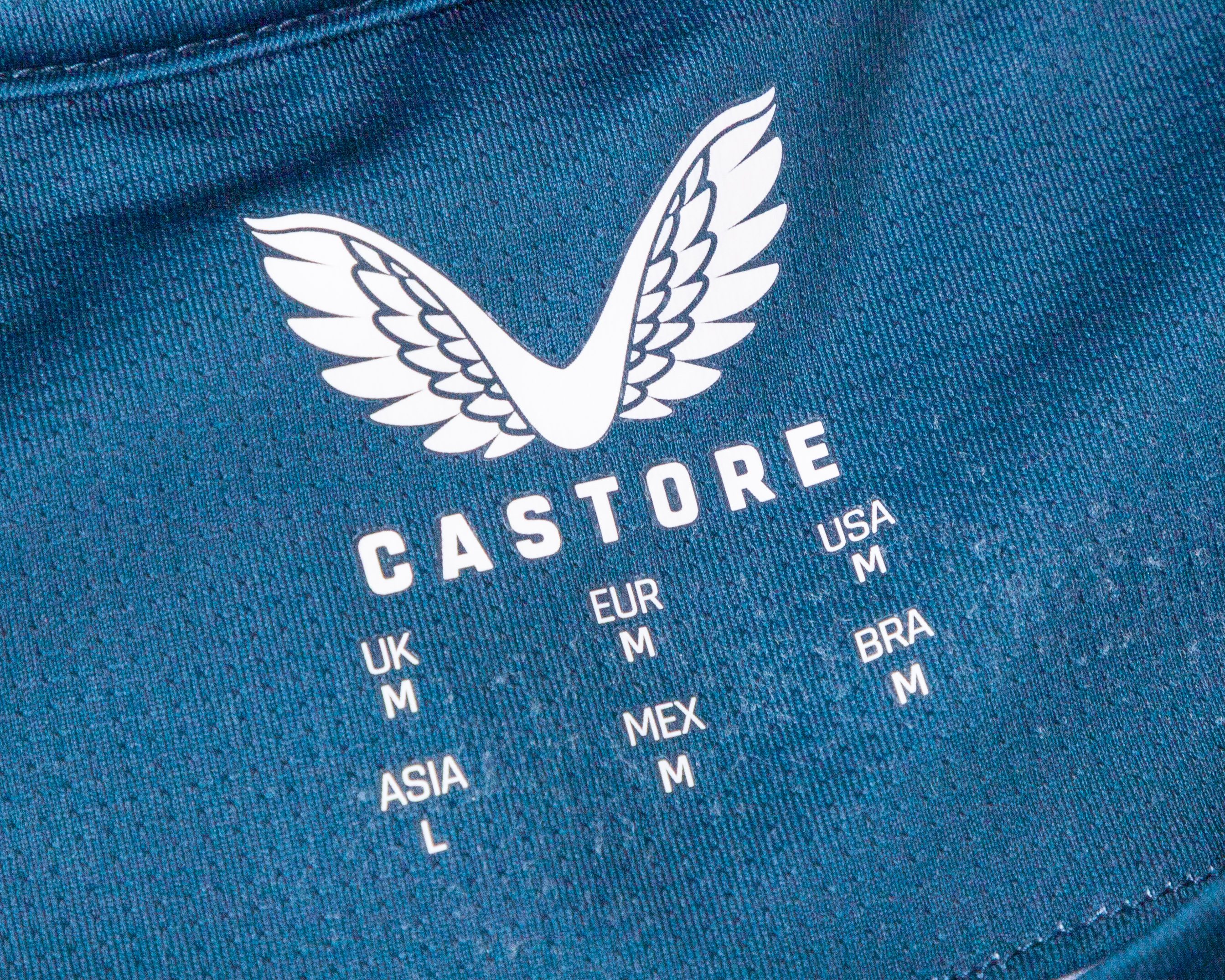 Josh De Caires Middlesex CCC No.25 match worn shirt v. Lancashire, Metro Bank One Day Cup, 26th August 2025, Castore, gibraltar sea and pink trim short sleeved with club crest decal, autographed on number