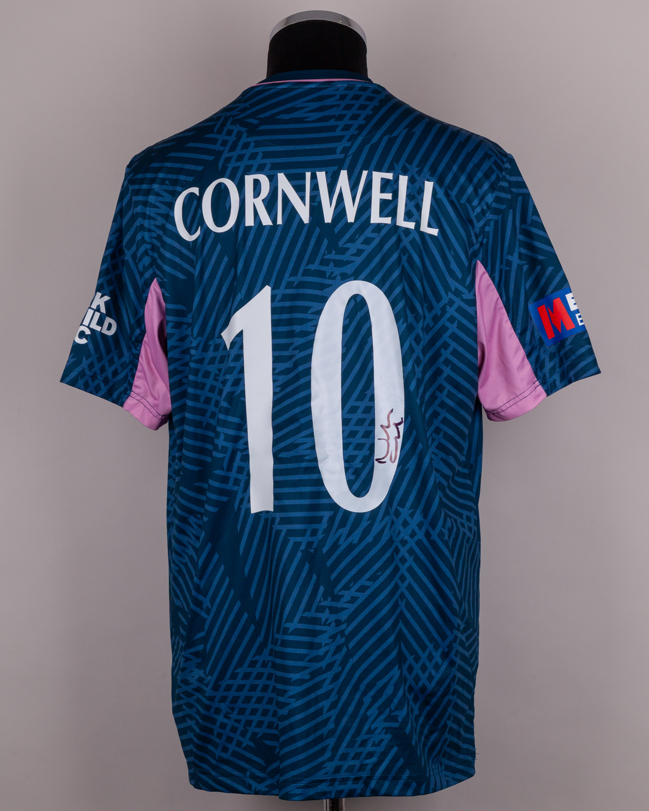 Noah Cornwell Middlesex CCC No.10 match worn shirt v. Lancashire, Metro Bank One Day Cup, 26th August 2025, Castore, gibraltar sea and pink trim long sleeved with club crest decal, autographed on number